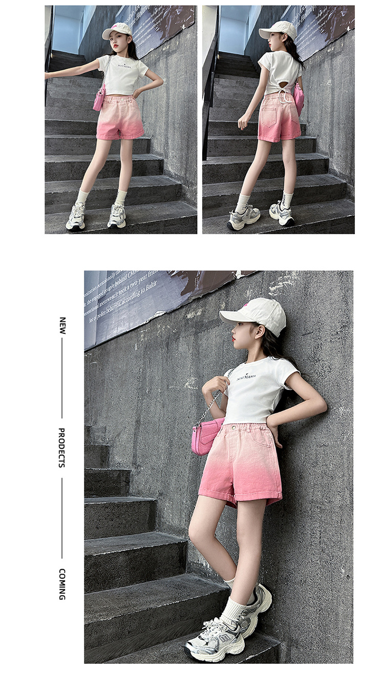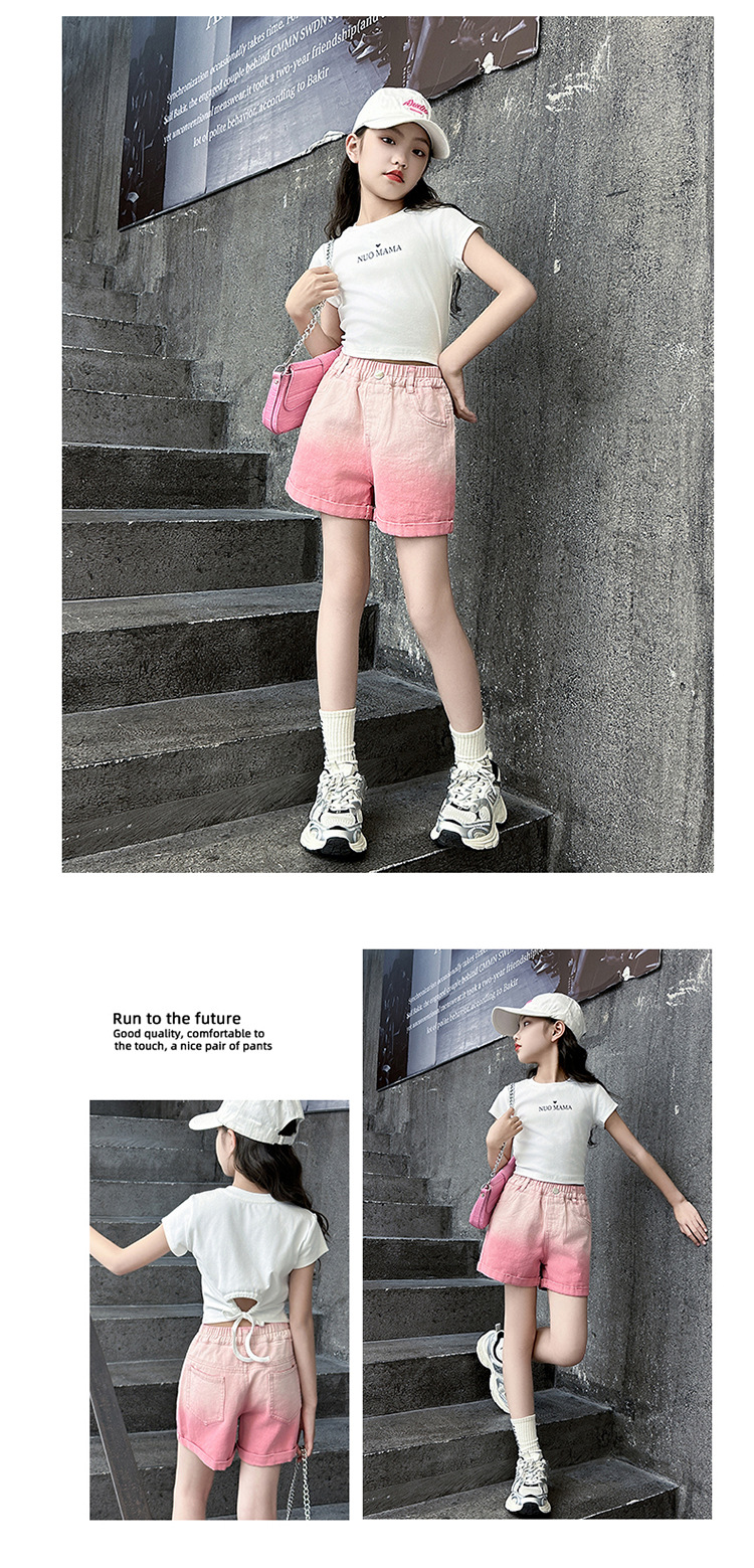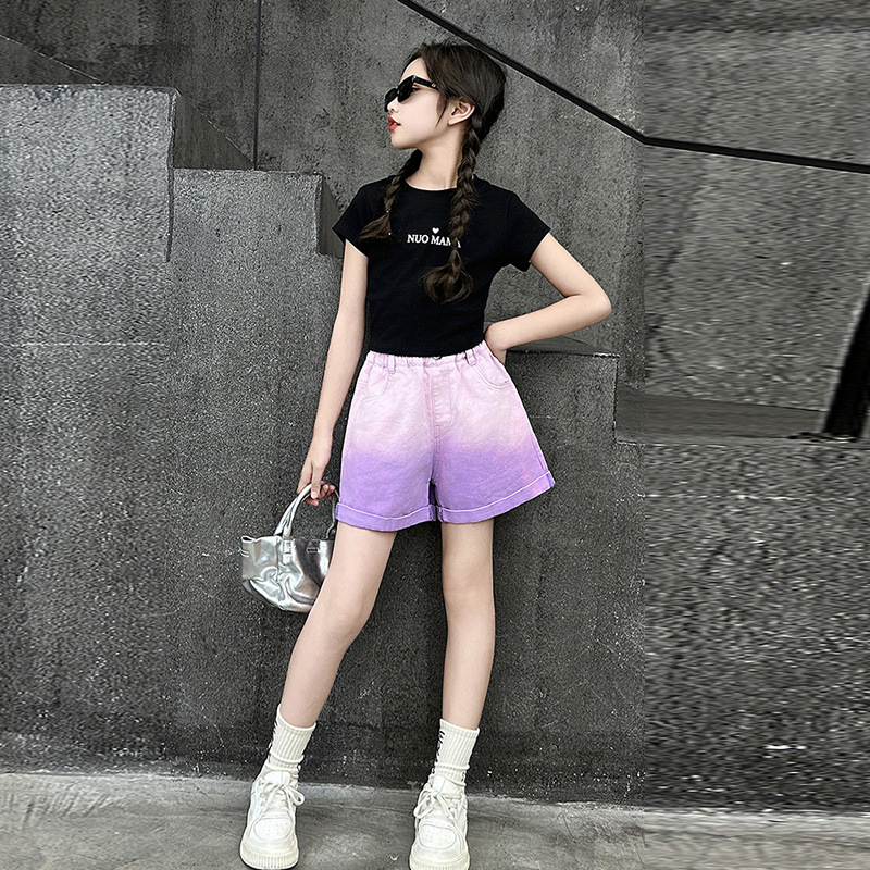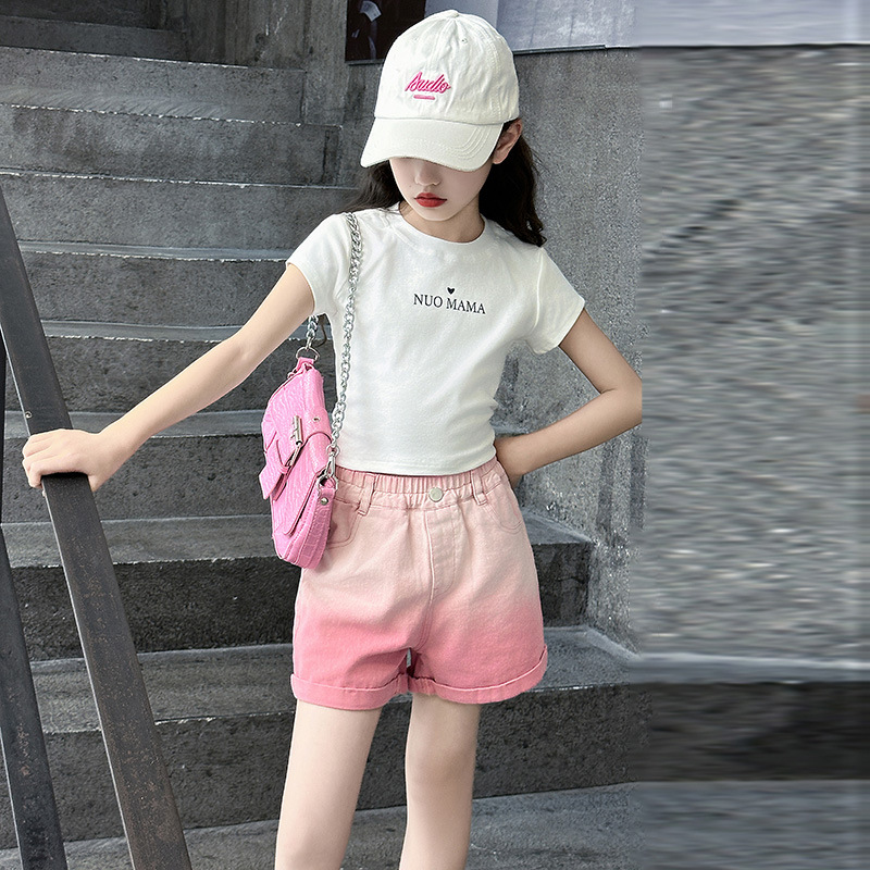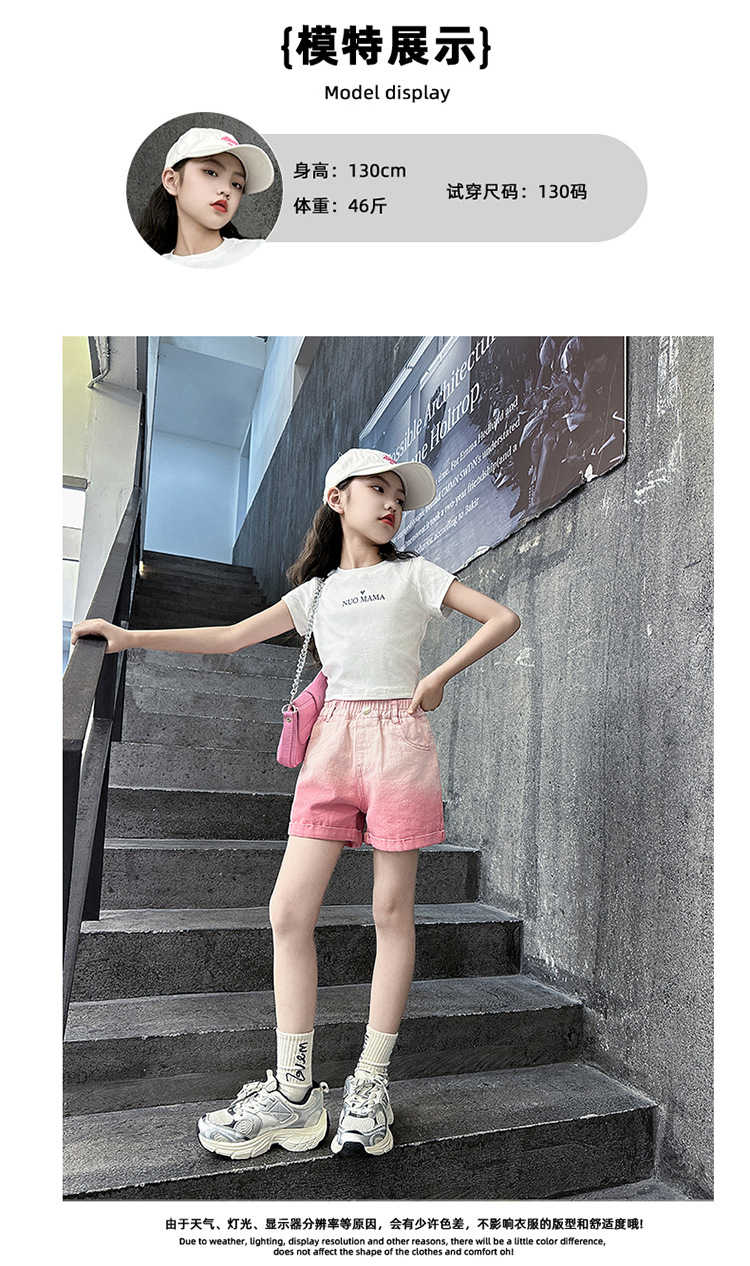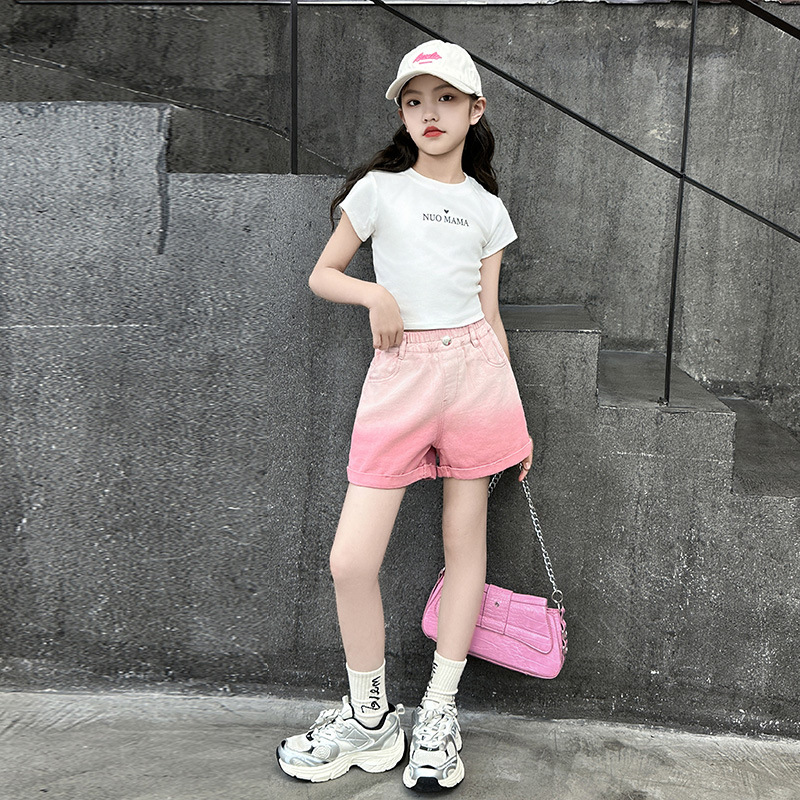 소녀 세트 여름 2024 새로운 어린이 그라디언트 데님 바지 큰 어린이 여름 서양식 캐주얼 반바지 유행스토어 가기