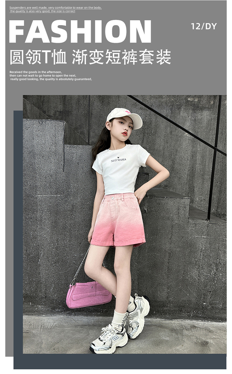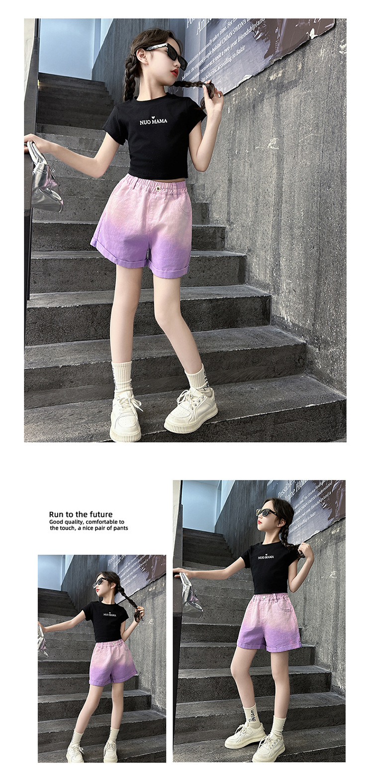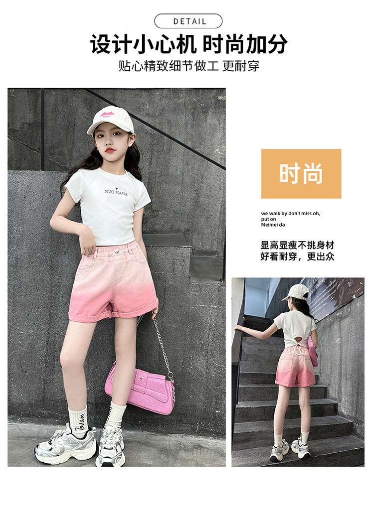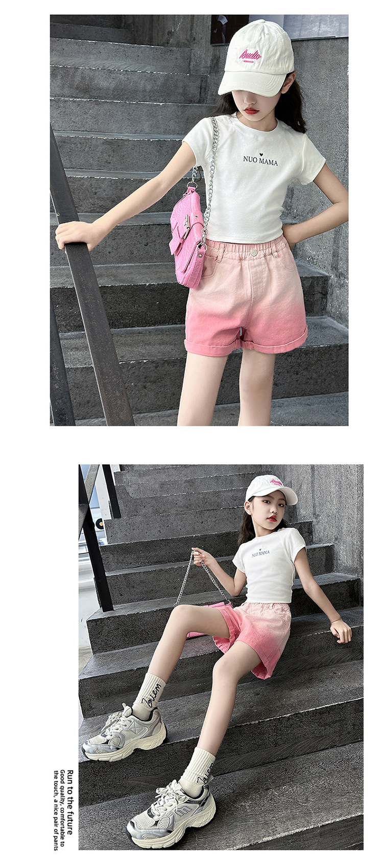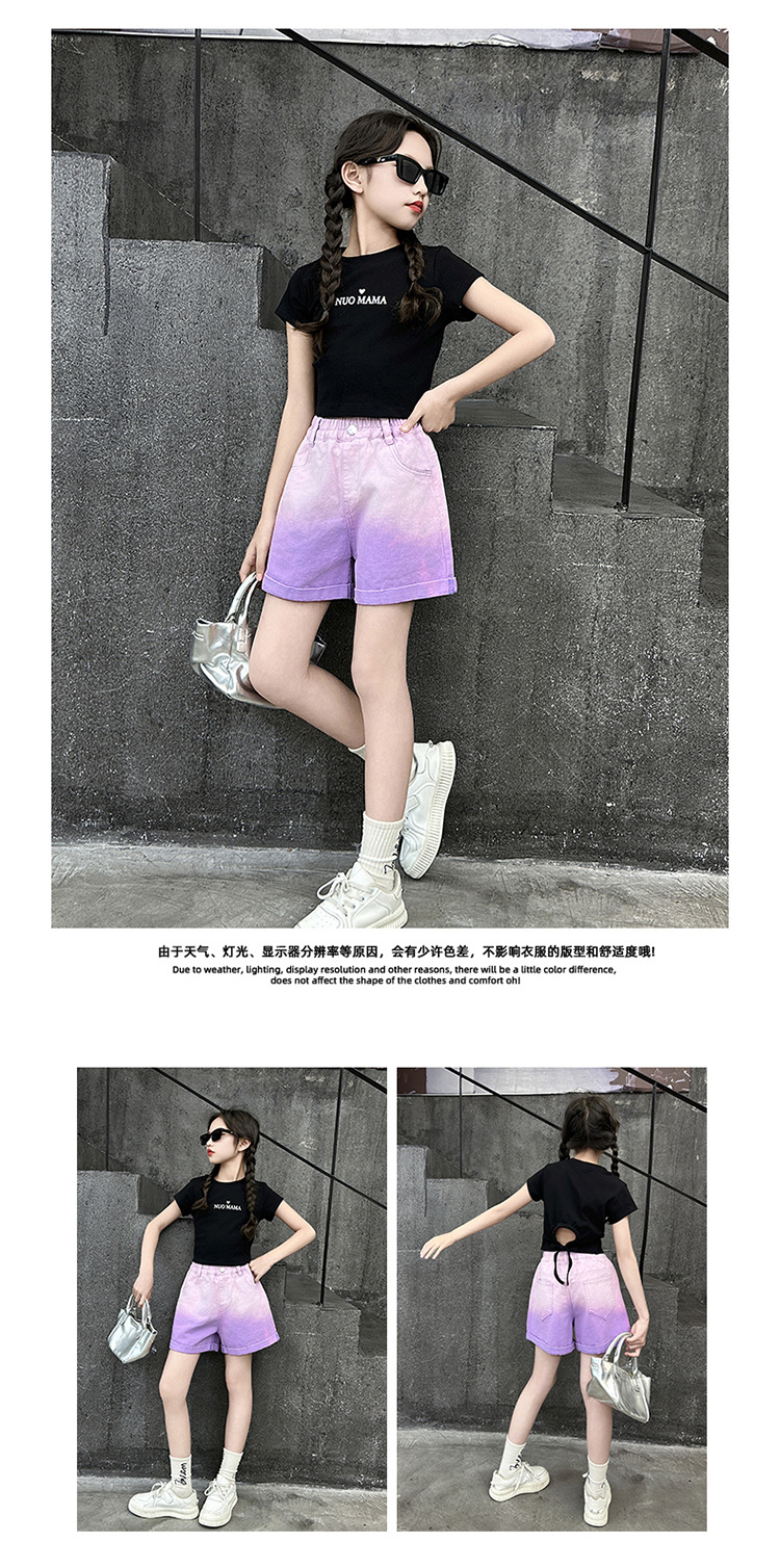 소녀 세트 여름 2024 새로운 어린이 그라디언트 데님 바지 큰 어린이 여름 서양식 캐주얼 반바지 유행스토어 가기