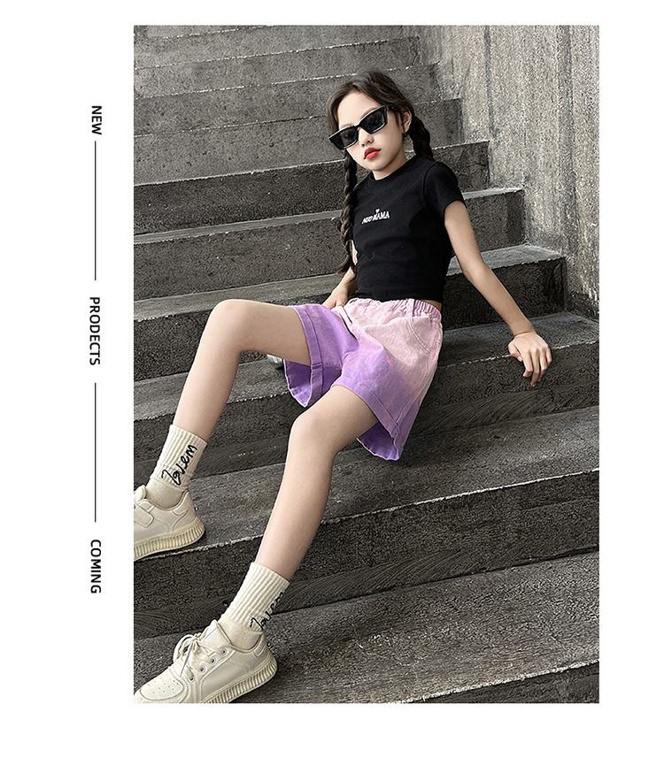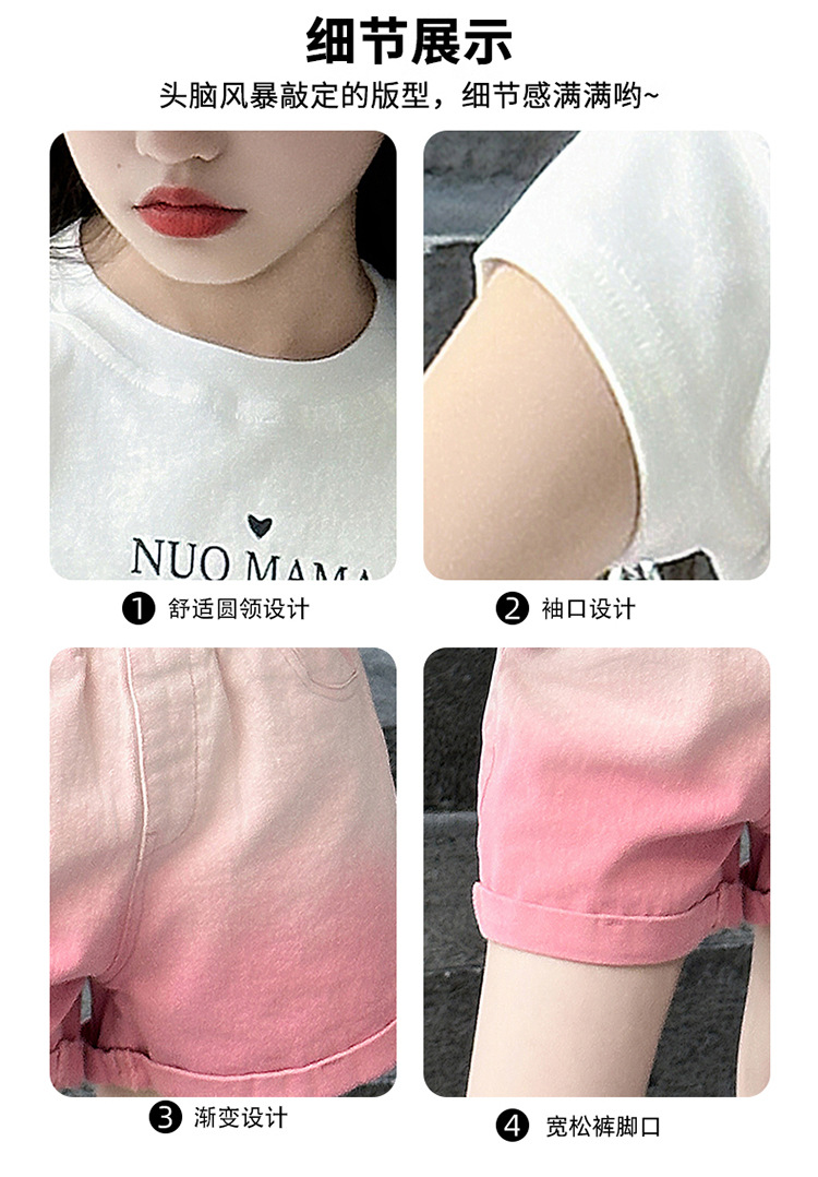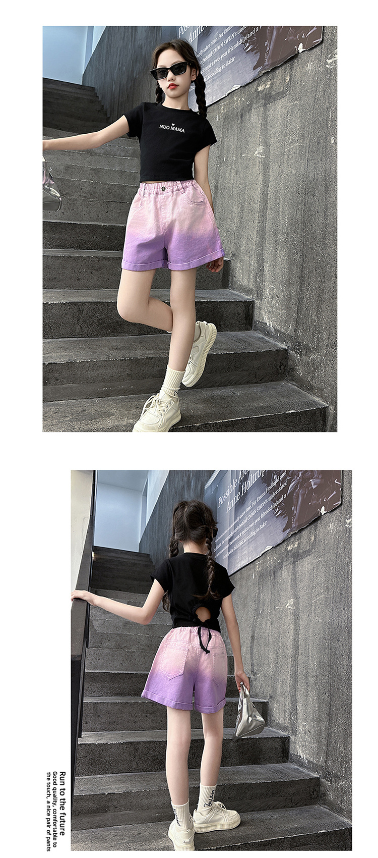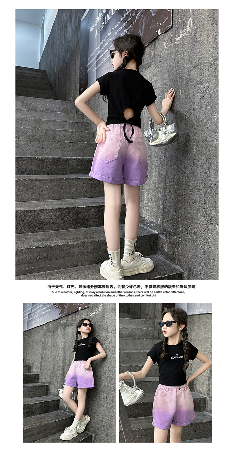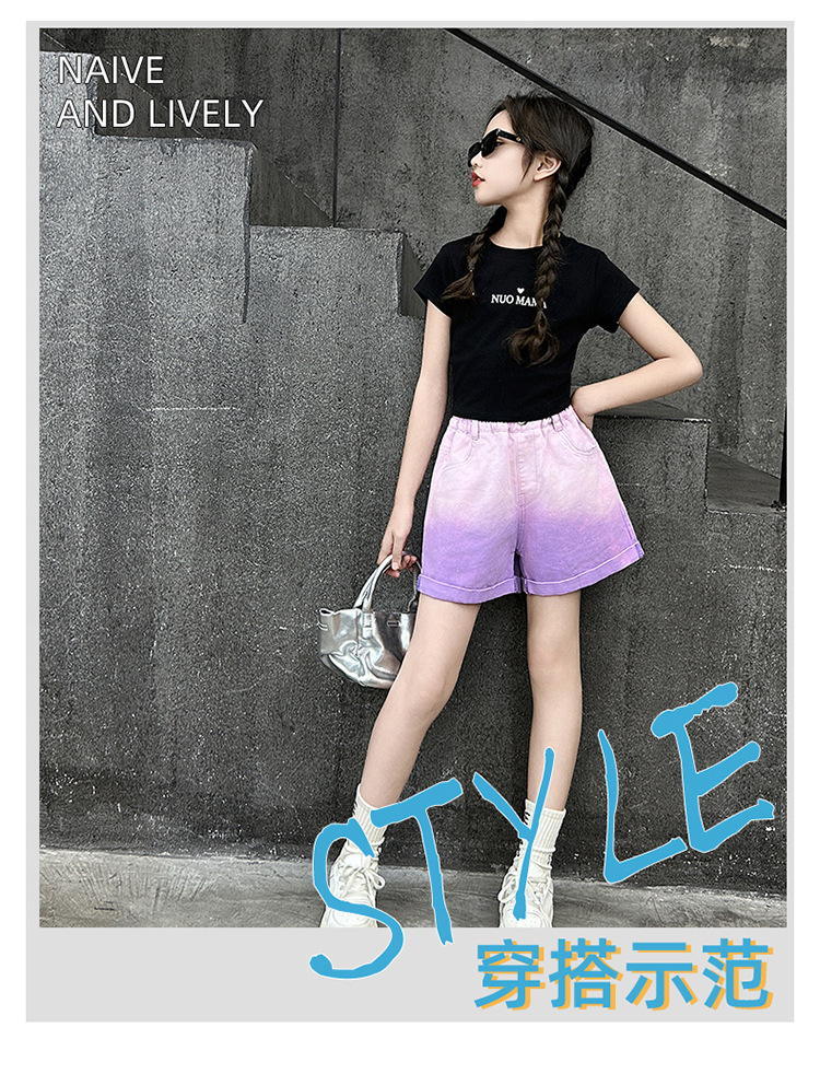 소녀 세트 여름 2024 새로운 어린이 그라디언트 데님 바지 큰 어린이 여름 서양식 캐주얼 반바지 유행스토어 가기