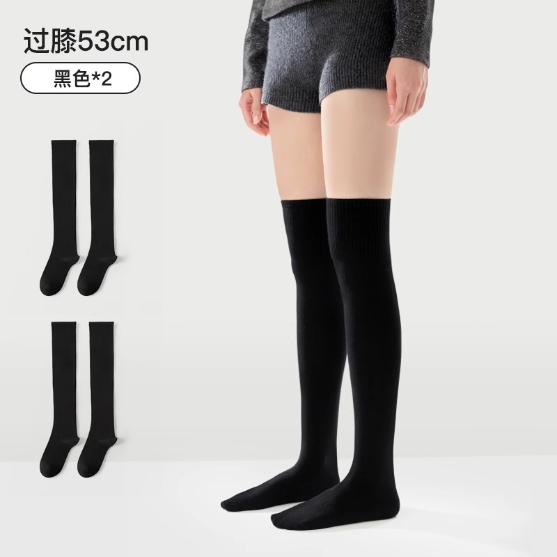 • [무릎 양말 53cm] 검은 색 2 쌍