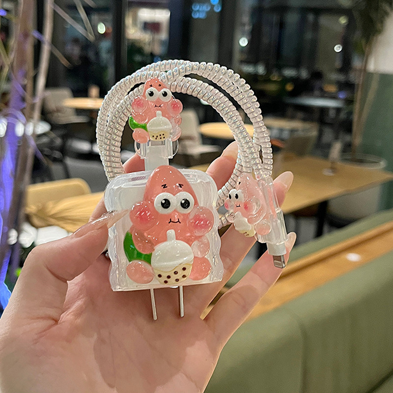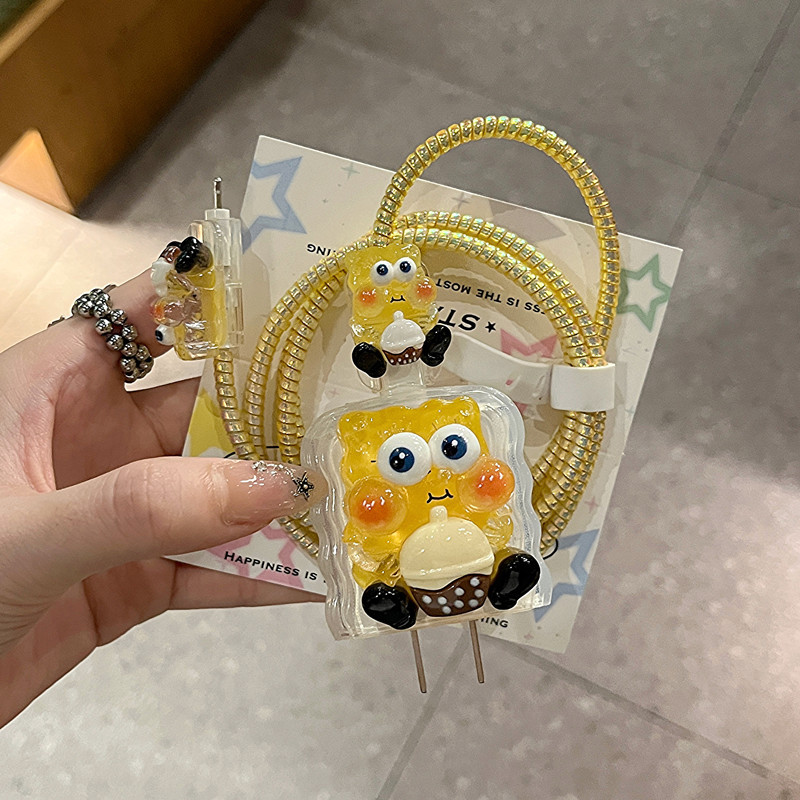 • 밀크 티 스폰지 밥 충전 헤드 보호 슬리브 와이어 와인 더 와이어 물기 장치