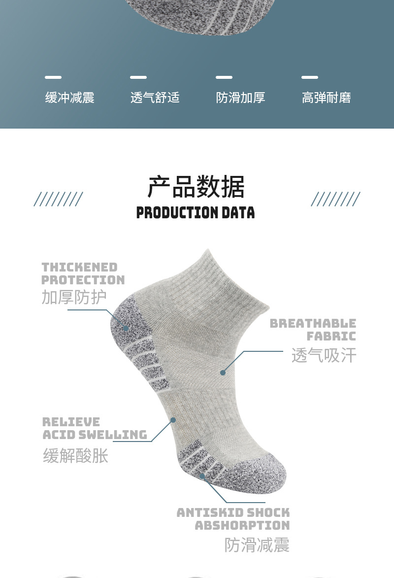 야외 스포츠 통기성 짧은 양말 남성과 여성을위한 두꺼운 수건 바닥 등산 4 시즌 달리기 충격 흡수 스포츠 양말
