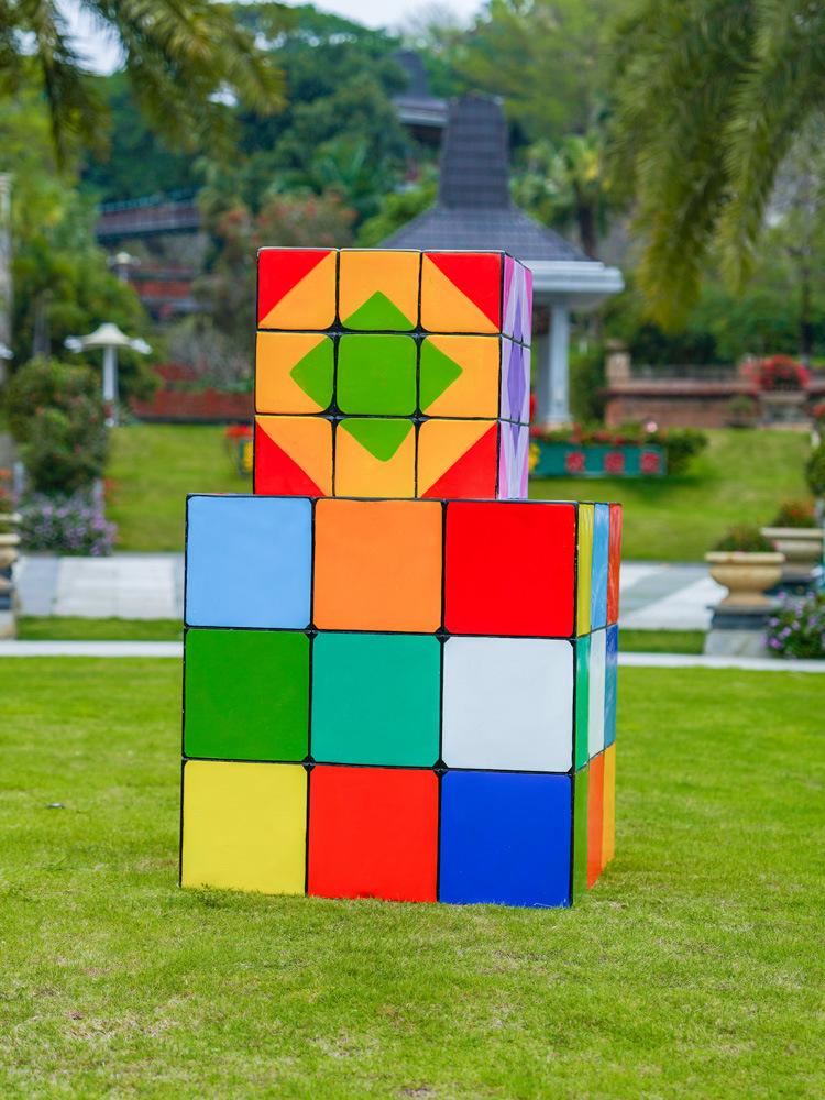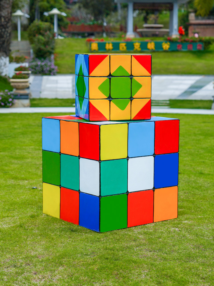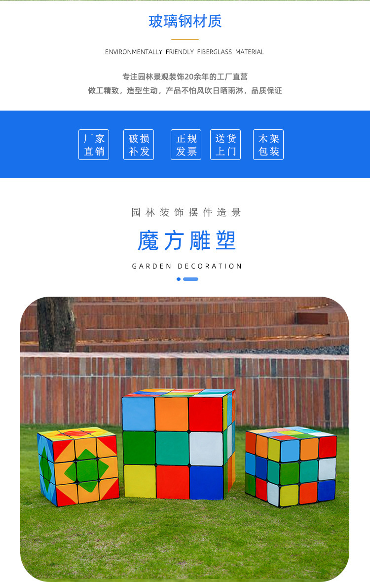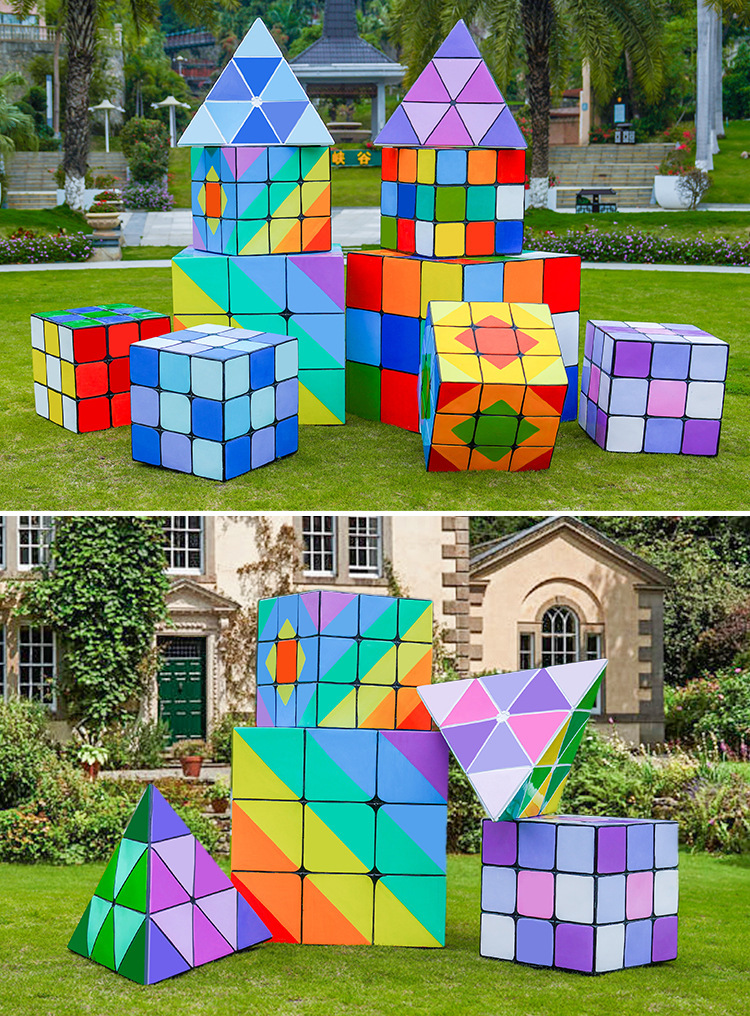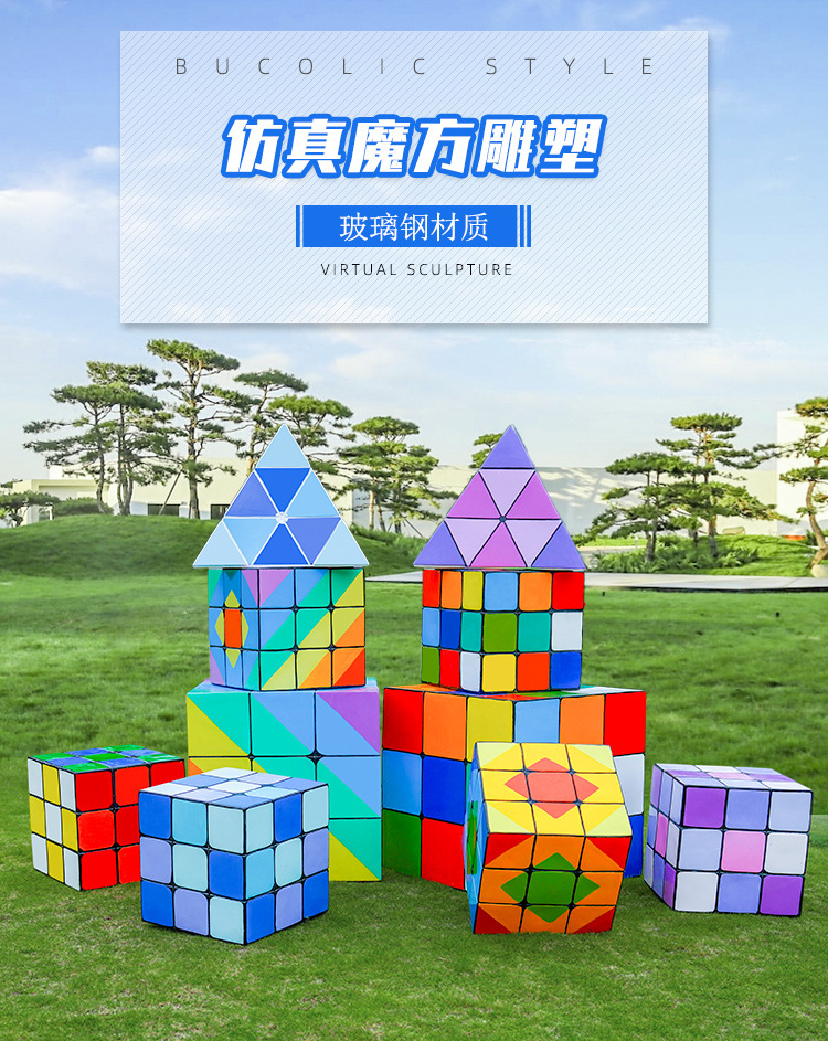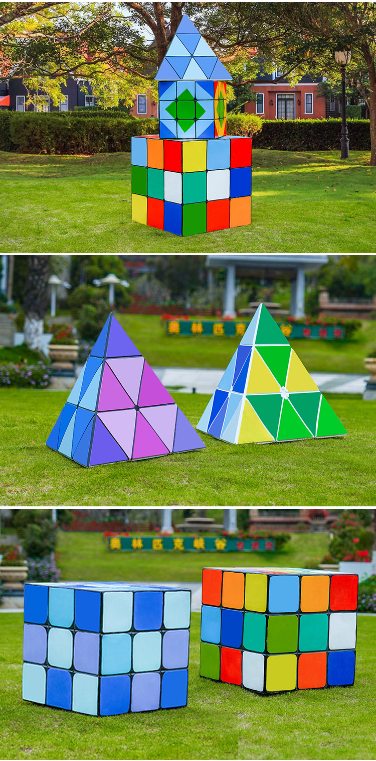 유리 섬유 강화 플라스틱 기하학적 루빅스 큐브 조각 유치원 게임 시티 시네마 전자 스포츠 컬러 삼각형 빌딩 블록 장식