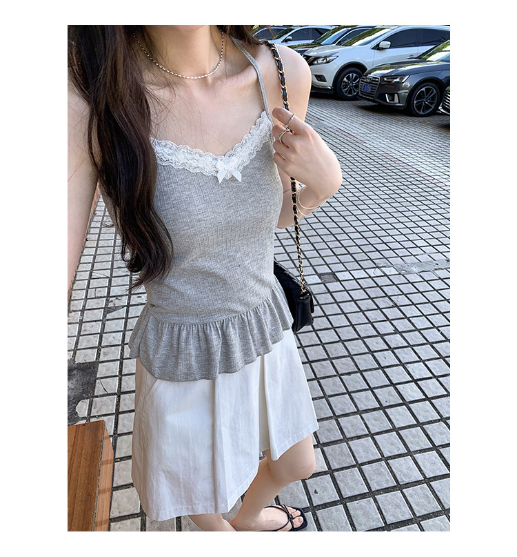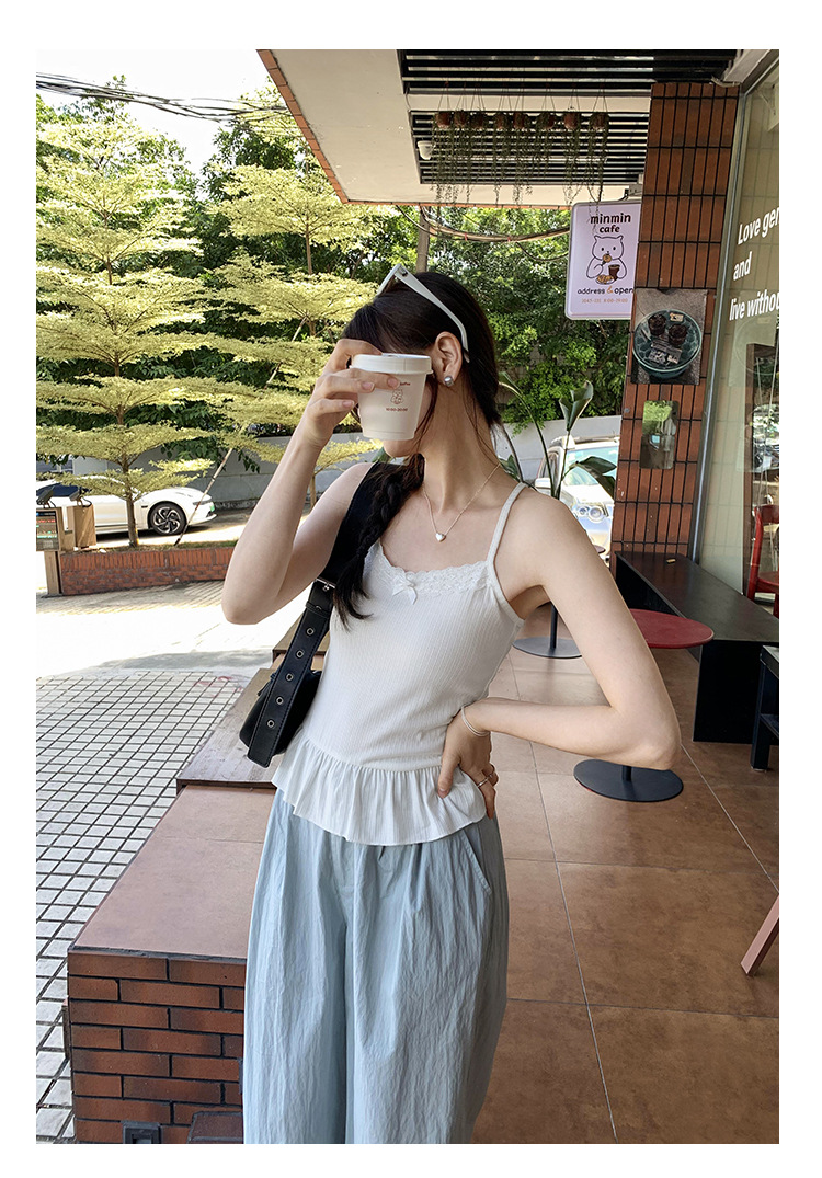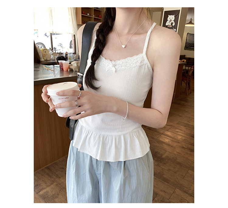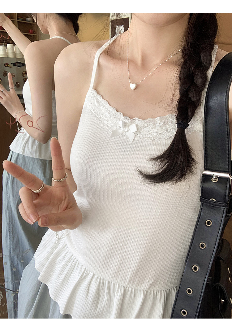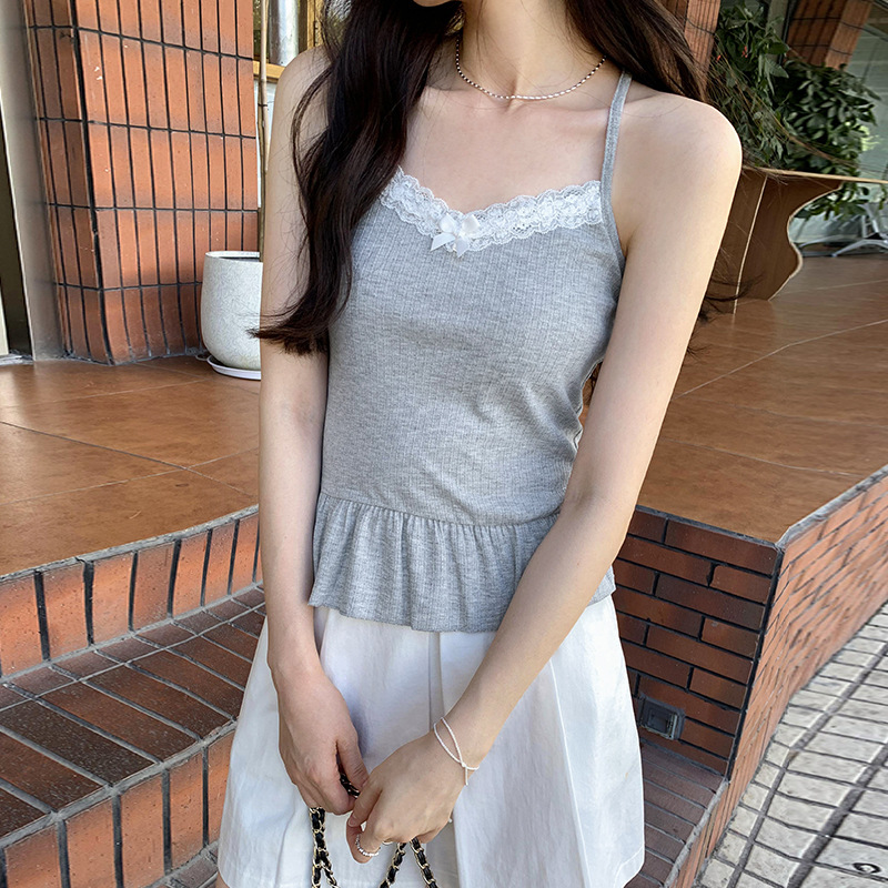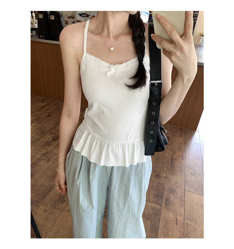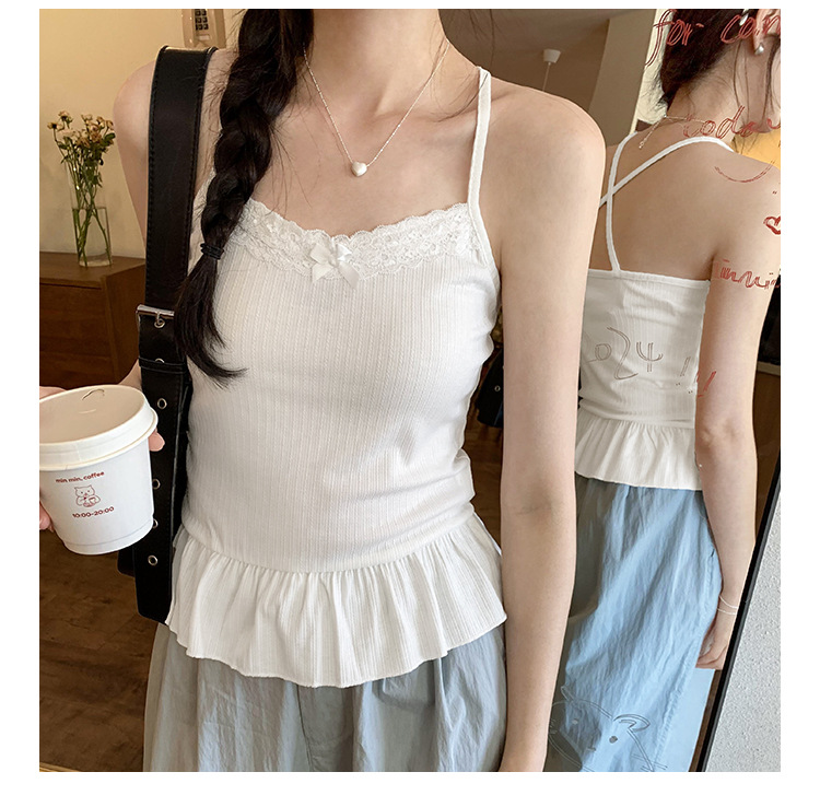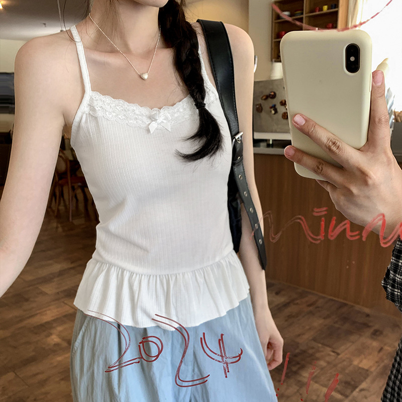 순수한 달콤하고 매운 레이스 바느질 러플 아름다운 카미 솔 여성의 2024 여름 새로운 스타일 아우터 입상 내부 탑스토어 가기