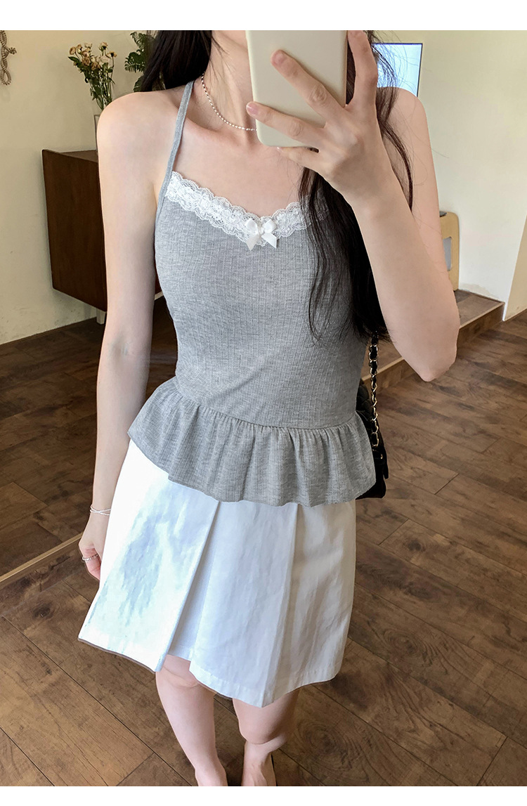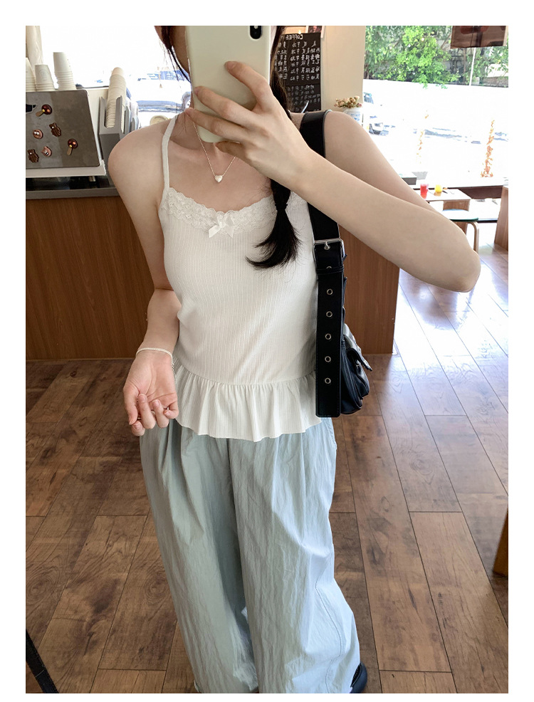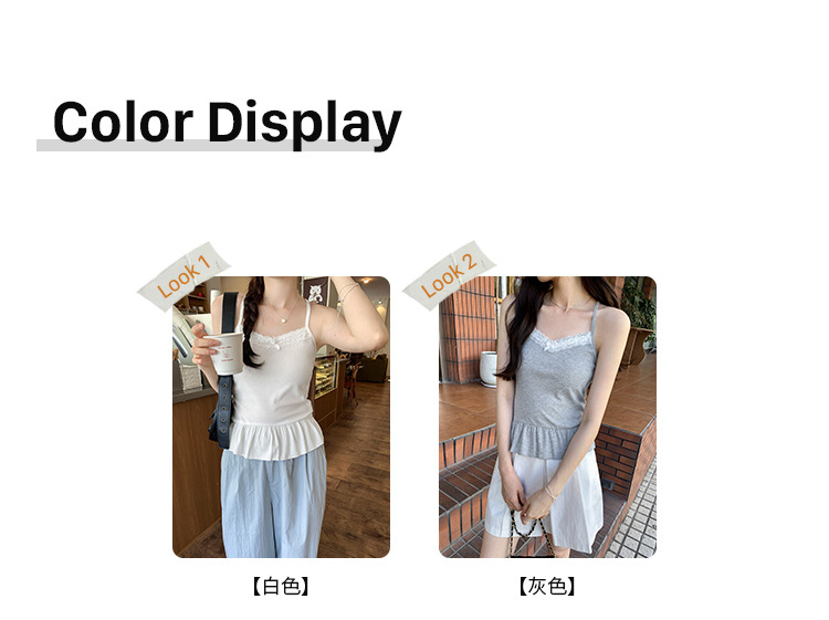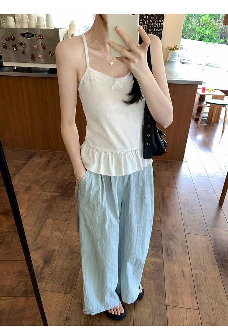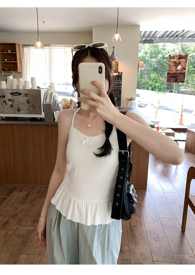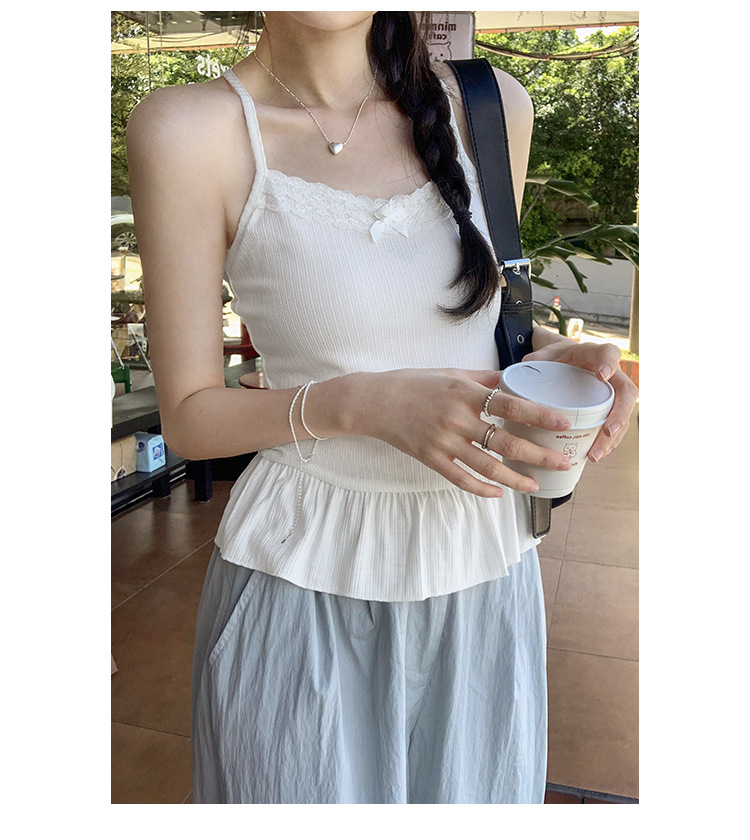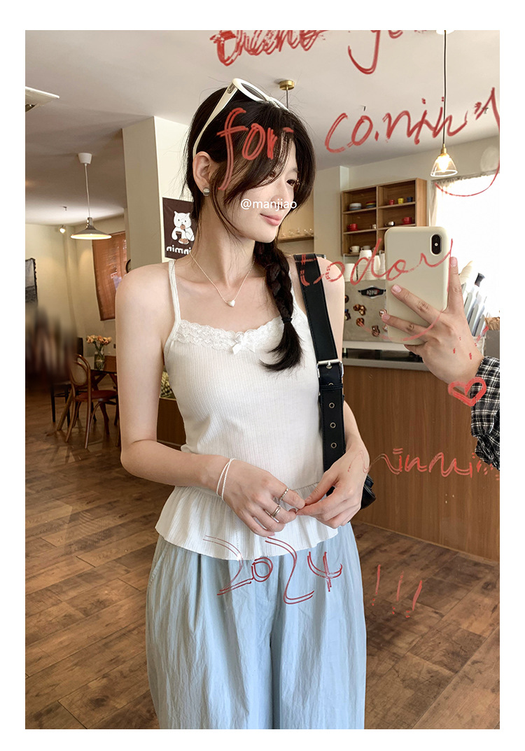순수한 달콤하고 매운 레이스 바느질 러플 아름다운 카미 솔 여성의 2024 여름 새로운 스타일 아우터 입상 내부 탑스토어 가기