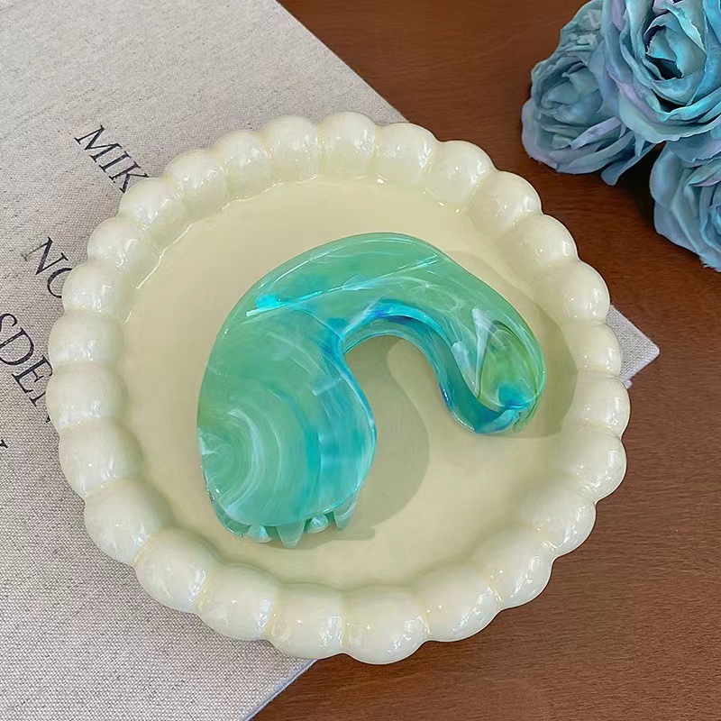 새로운 봄과 여름 잉크 그림 잡아 클립 대리석 패턴 디스크 머리 머리 색깔 어머니 상어 클립 높은 포니 꼬리 머리 머리 액세서리스토어 가기