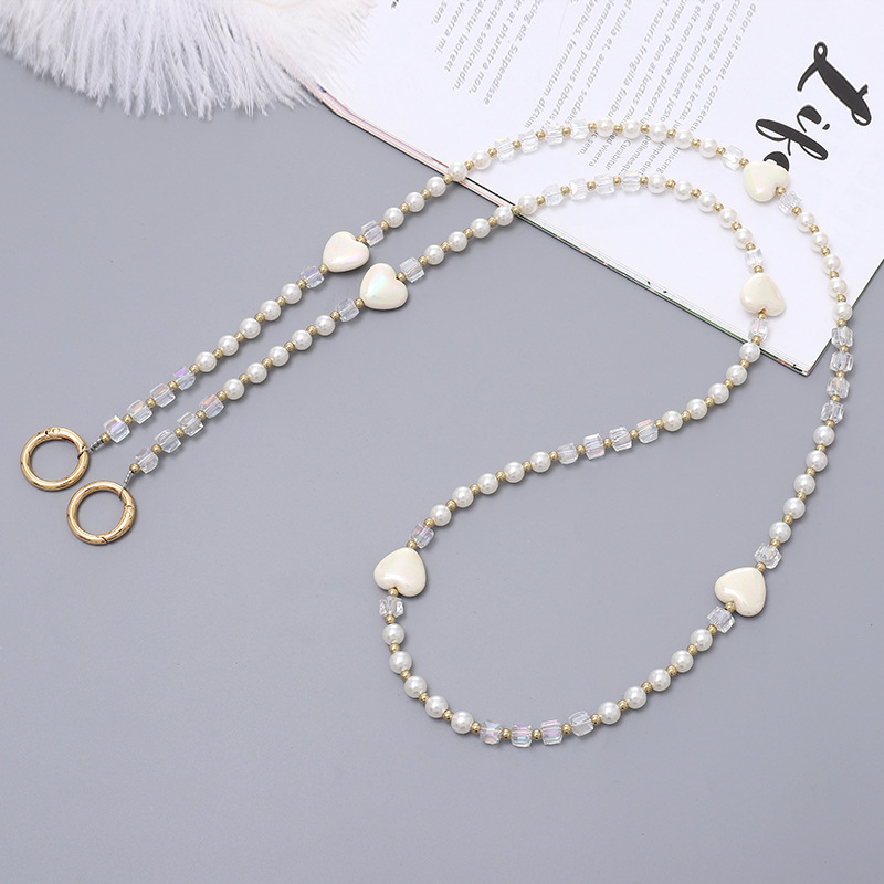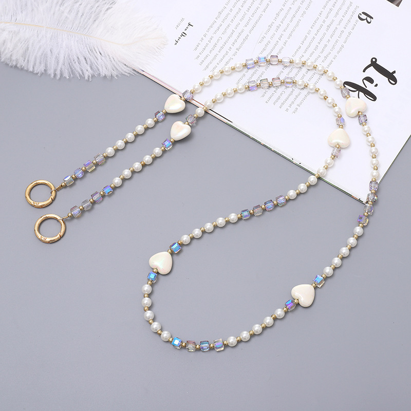 창조적 인 새로운 진주 사랑 크로스 바디 체인 가방 키 체인 펜던트 크리스탈 구슬 펜던트 휴대 전화 끈 보석스토어 가기