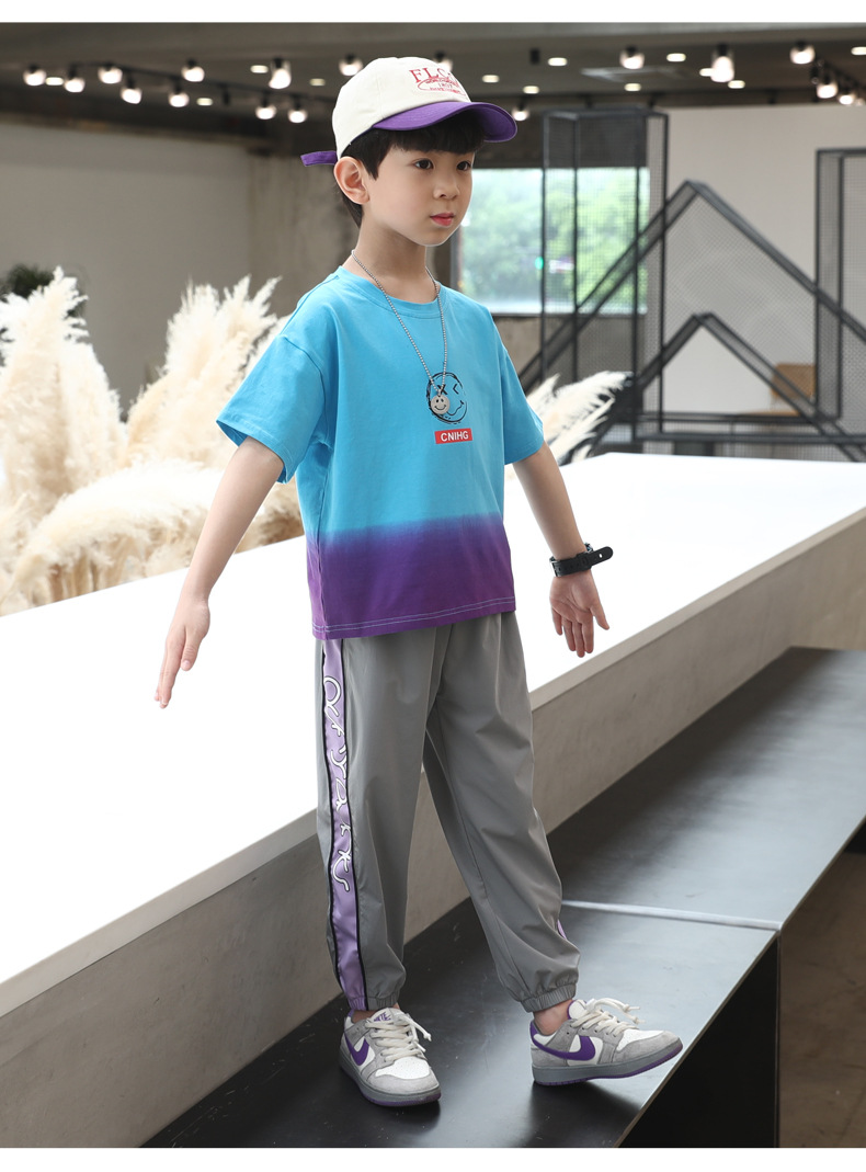 새로운 여름 소년 반팔 세트 어린이 캐주얼 2024 대외 무역 어린이 폴로 셔츠 투피스 세트스토어 가기