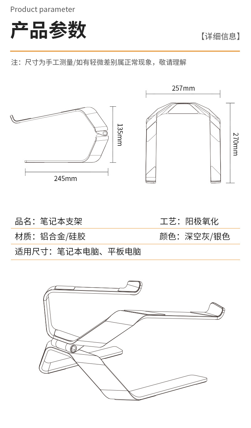 국경 간 창조적 인 노트북 브래킷 양극성 조정 데스크탑 높은 열 분산 알루미늄 합금 노트북 브래킷