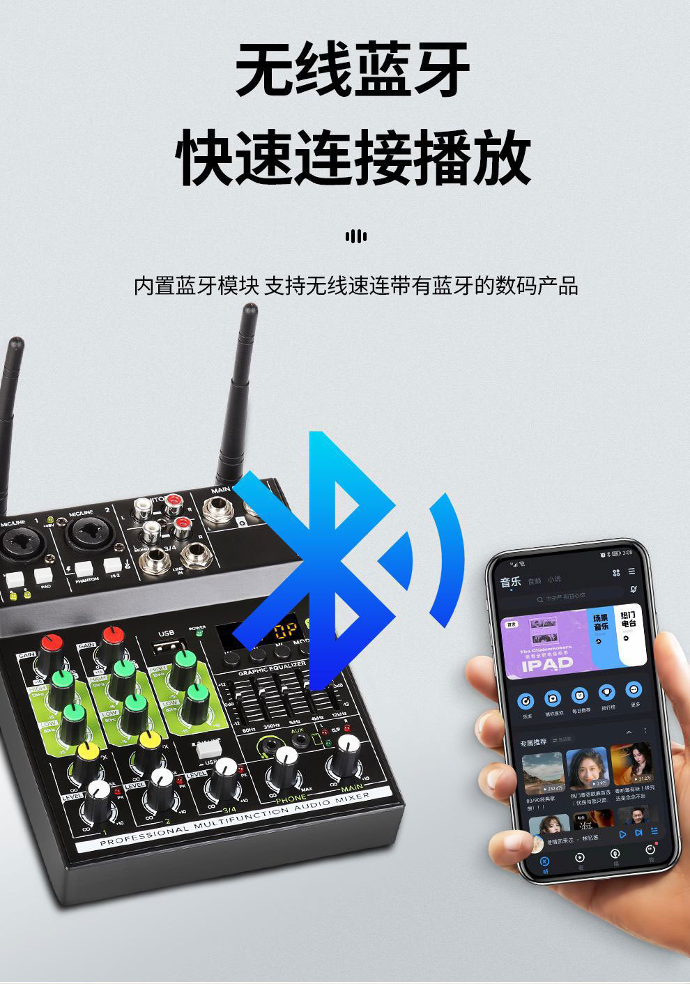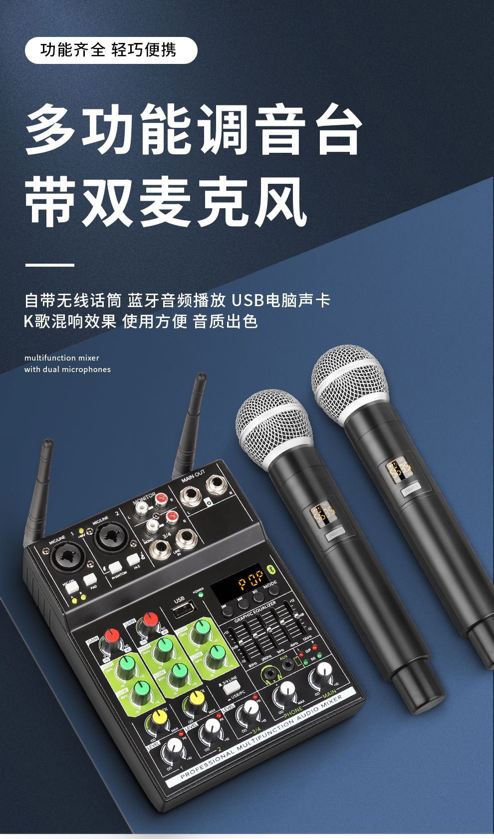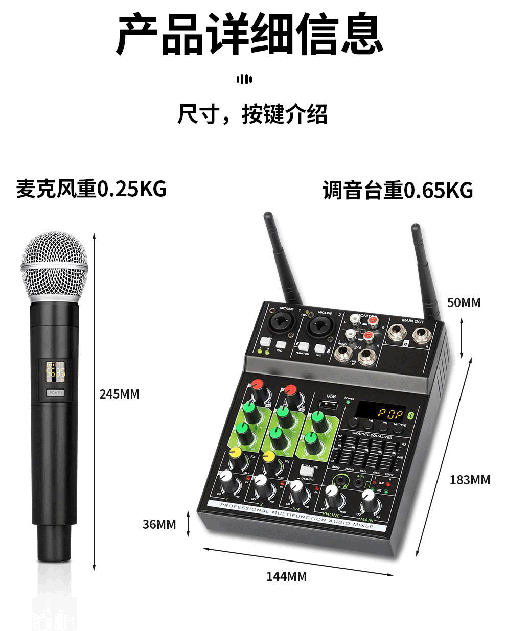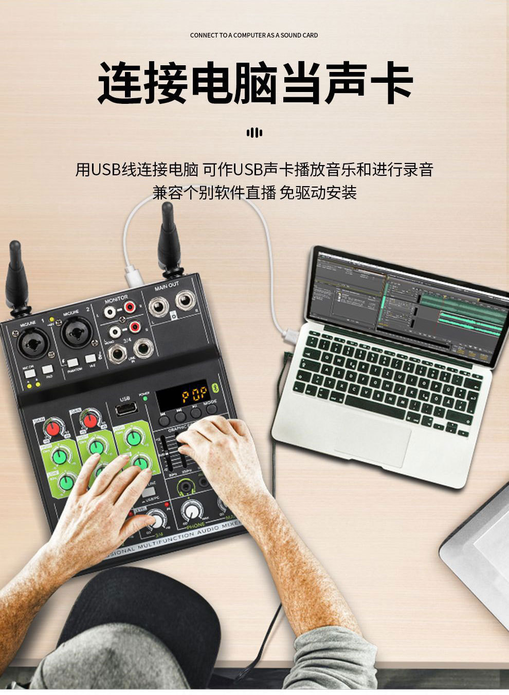 4路 带麦克风 带均衡 可连接耳机使用可连接电脑录音 适用于各种场合 可搭配声卡使用