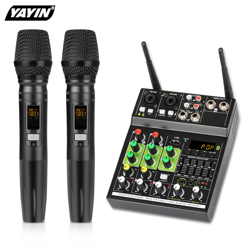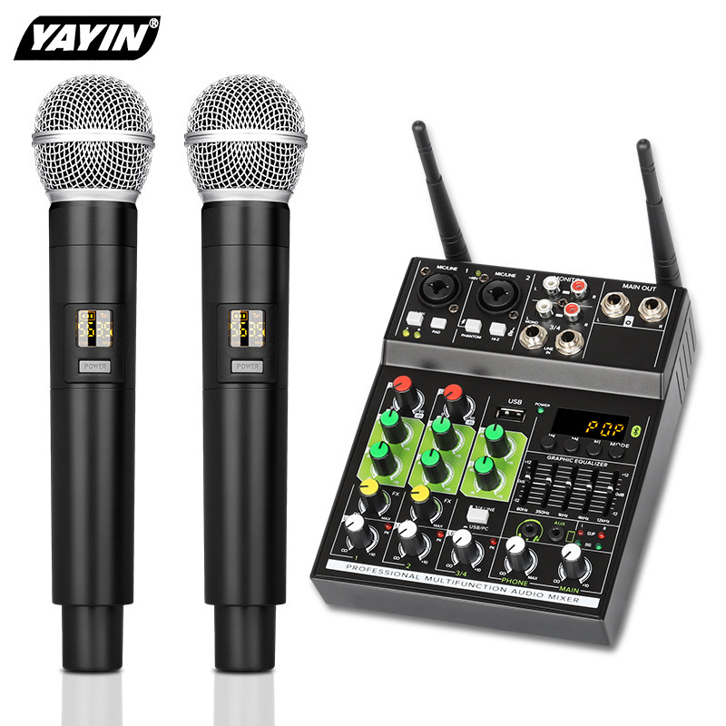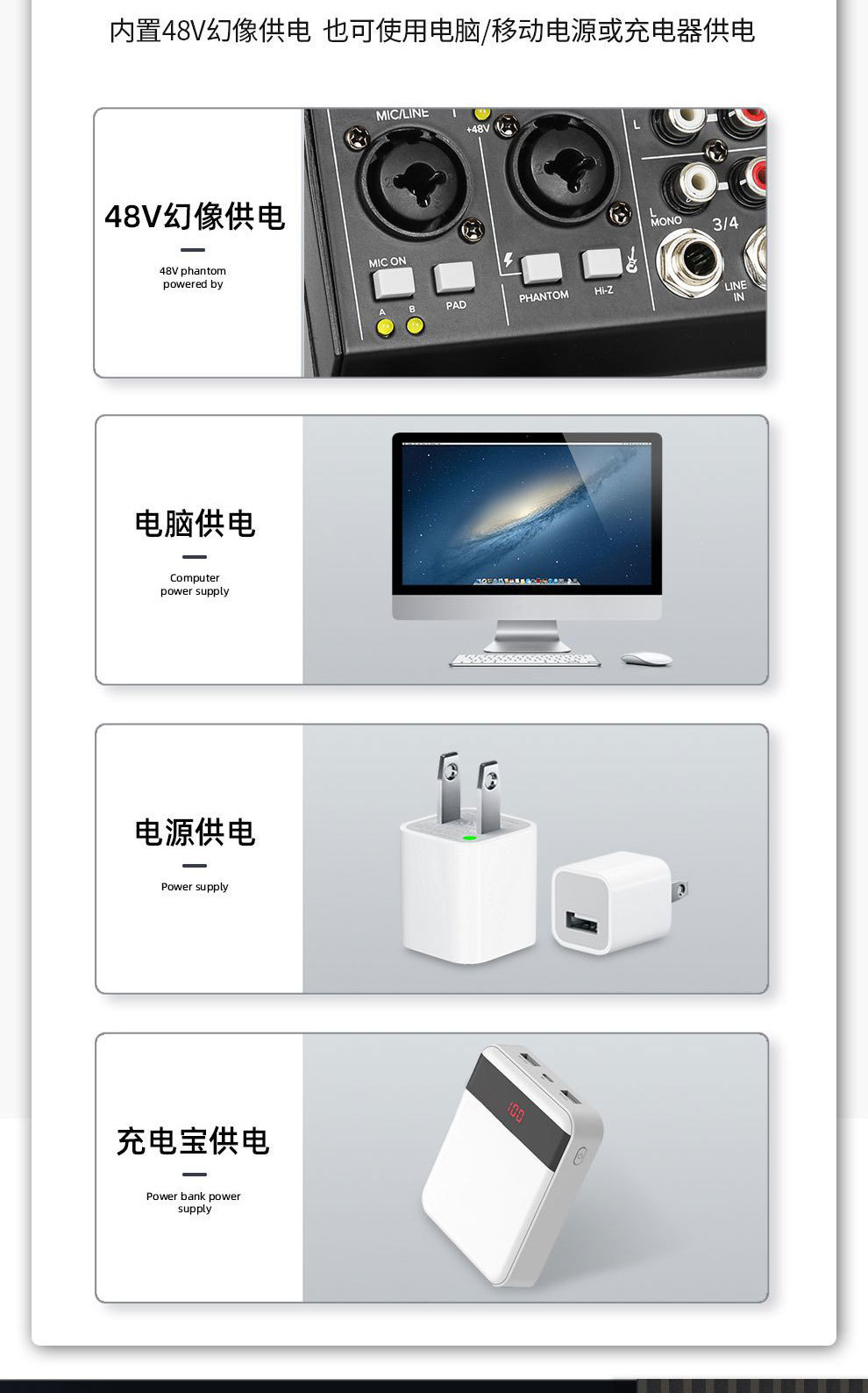 마이크가 내장된 4채널 믹서, 48V 블루투스 USB 믹서, 컴퓨터 녹음 사운드 카드, 마이크 라이브 방송