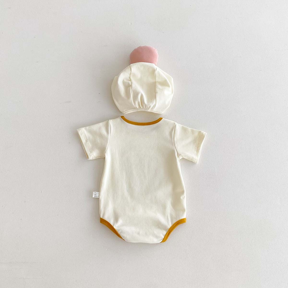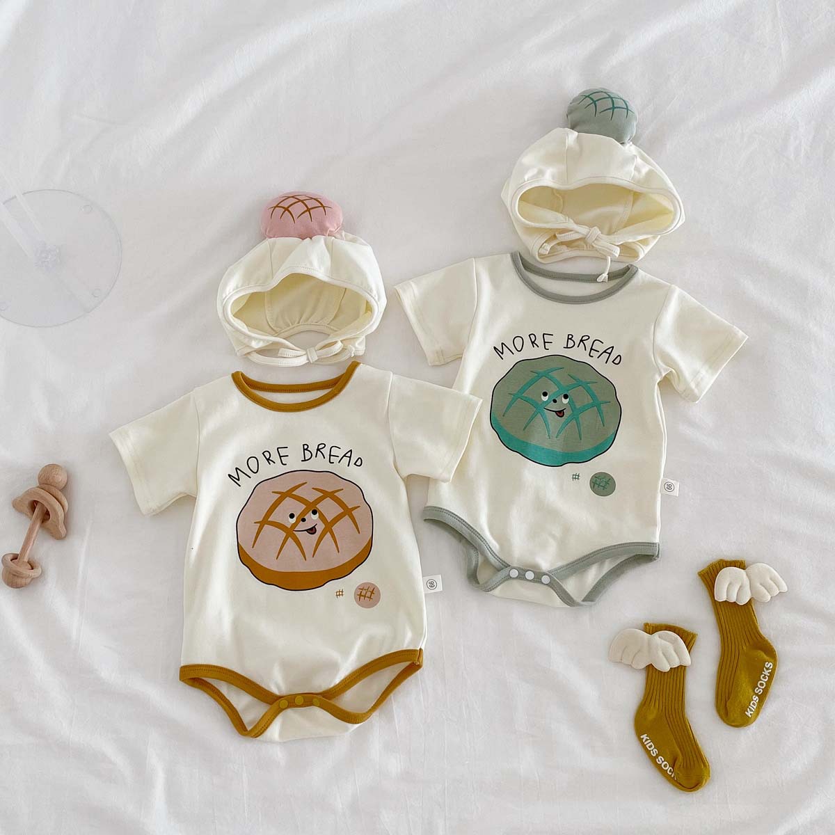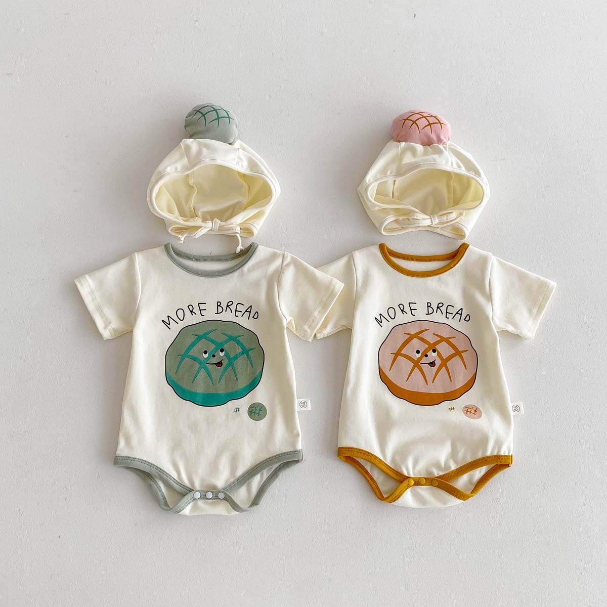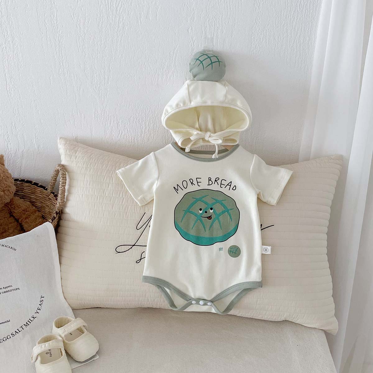2024 여름 새로운 파인애플 가방 인쇄 된 모양의 옷 Instagram 스타일 한국 스타일 아기 가방 뚱뚱한 옷 아기 점프 수트