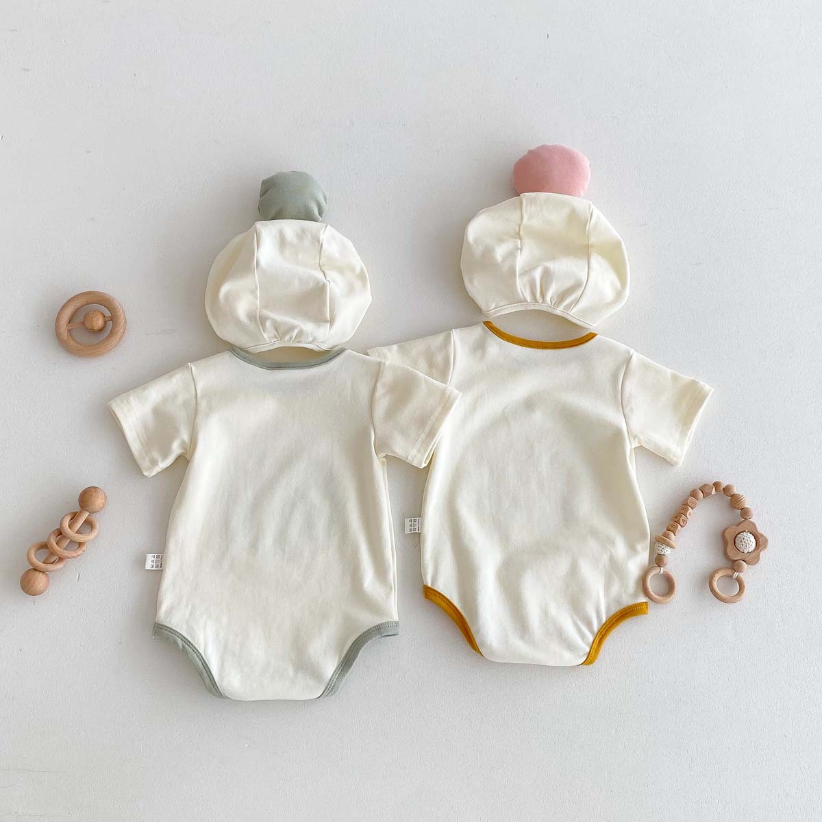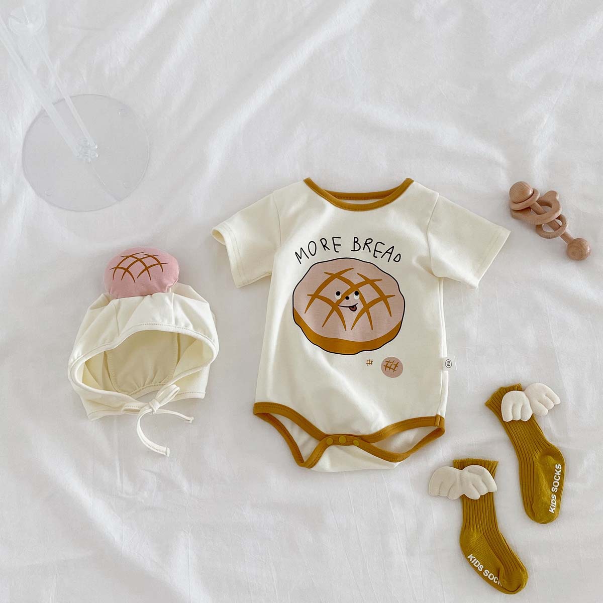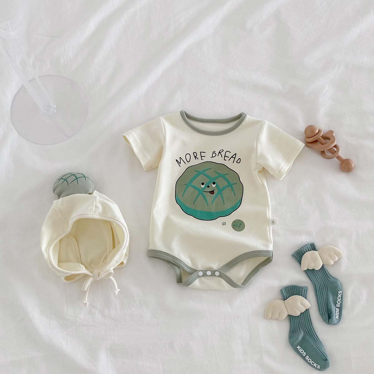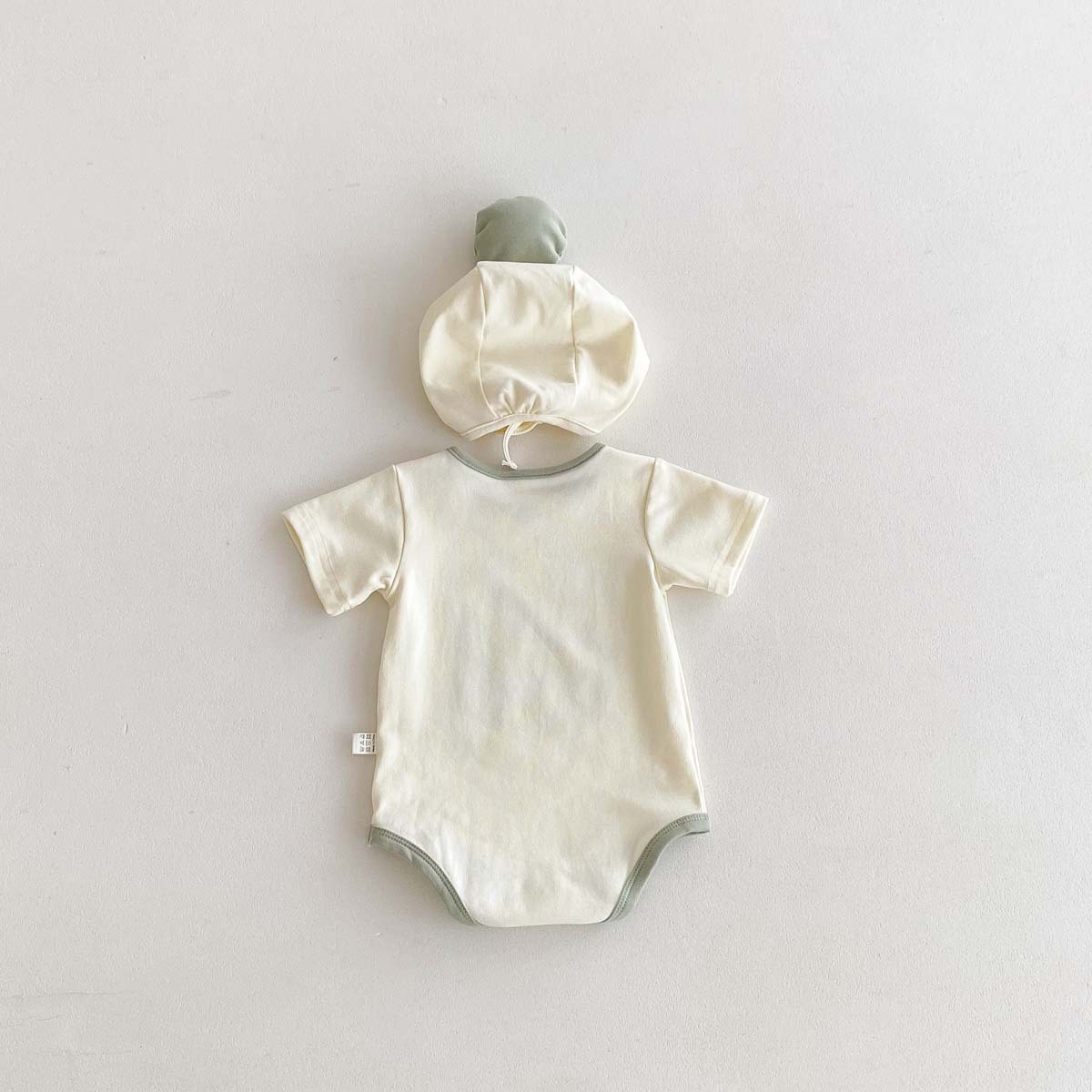2024 여름 새로운 파인애플 가방 인쇄 된 모양의 옷 Instagram 스타일 한국 스타일 아기 가방 뚱뚱한 옷 아기 점프 수트
