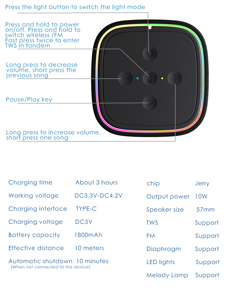 국경 새로운 패브릭 블루투스 오디오 하이 퀄리티 자동차 서브 우퍼 스피커 휴대용 야외 스포츠