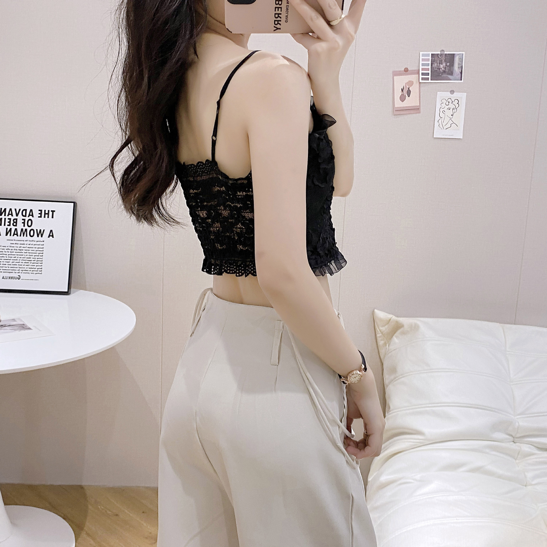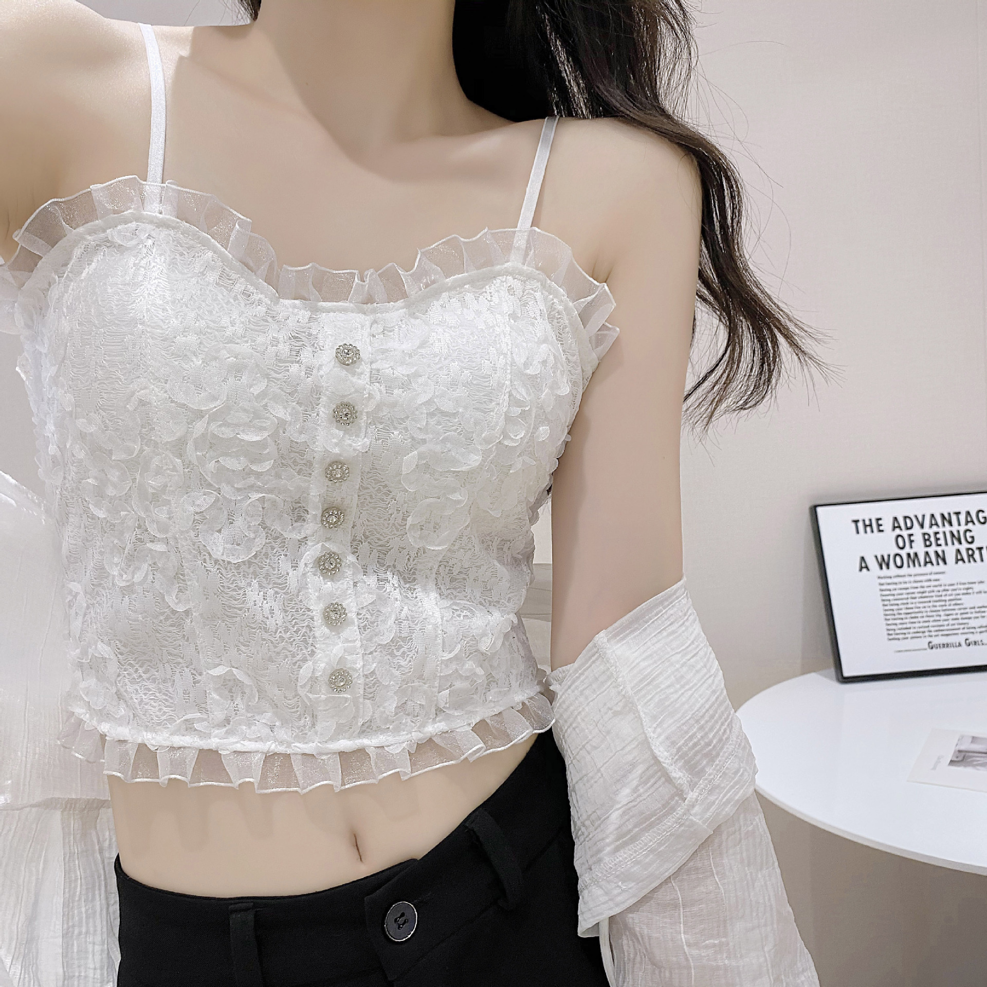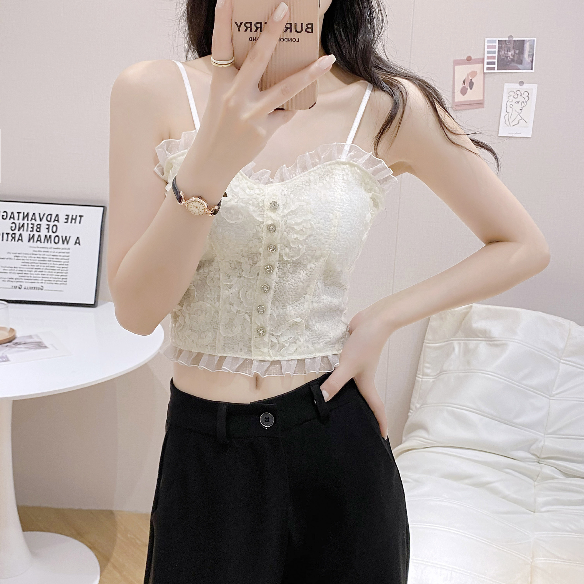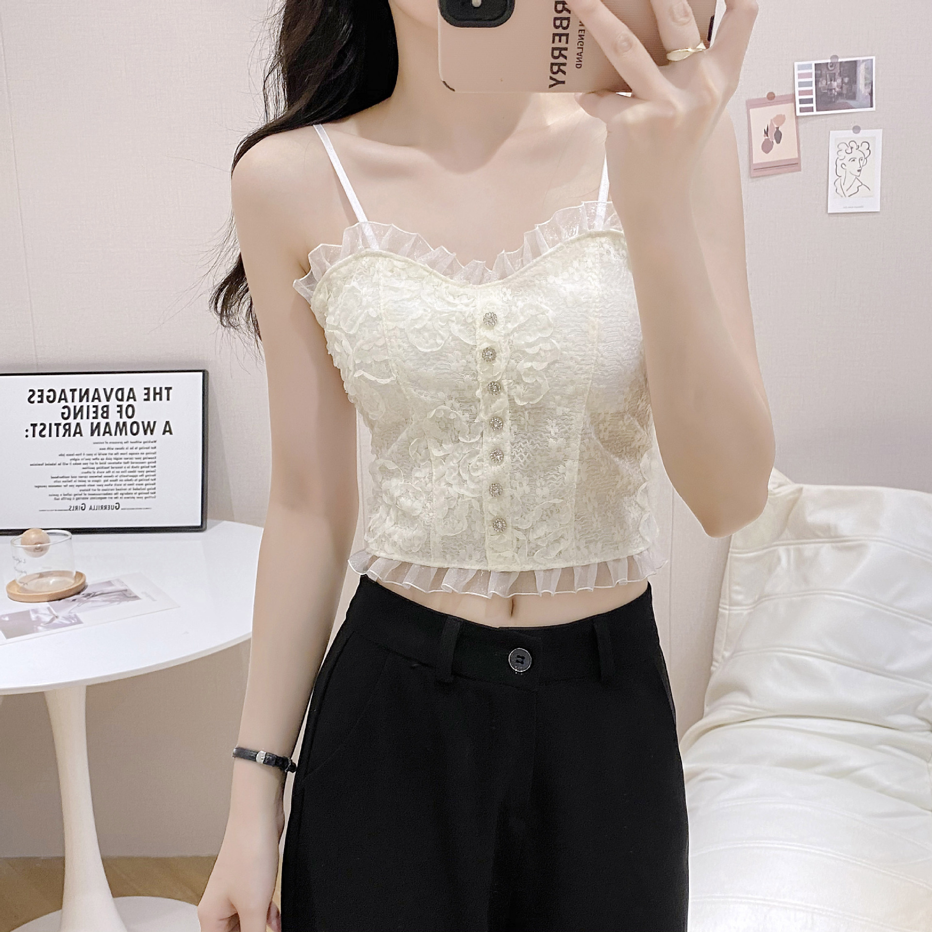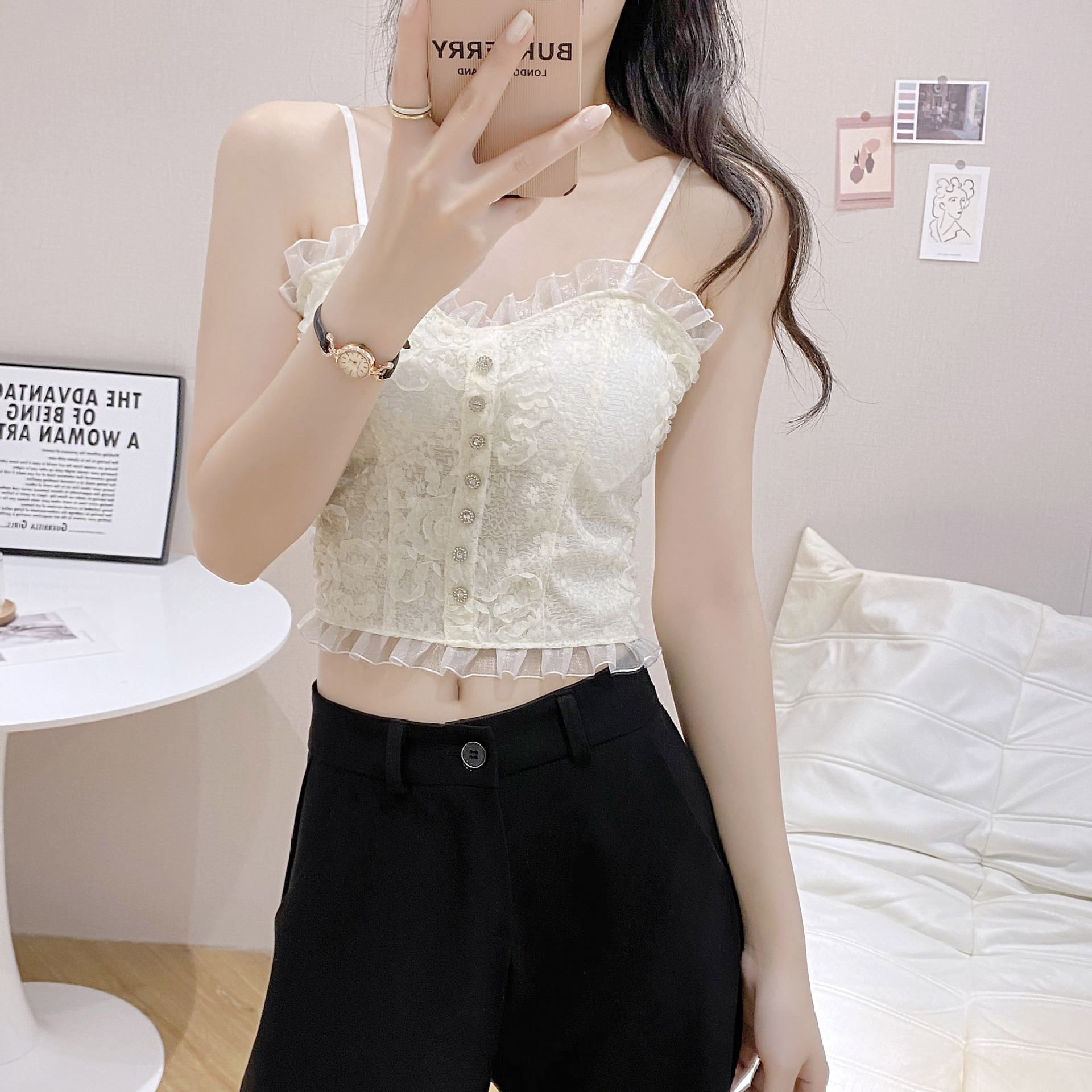 순수한 욕망 레이스 스타일 귀여운 카미솔 여성의 여름 외부 착용 내부 스파이스 소녀 레이스 짧은 화이트 올 매치 탑스토어 가기