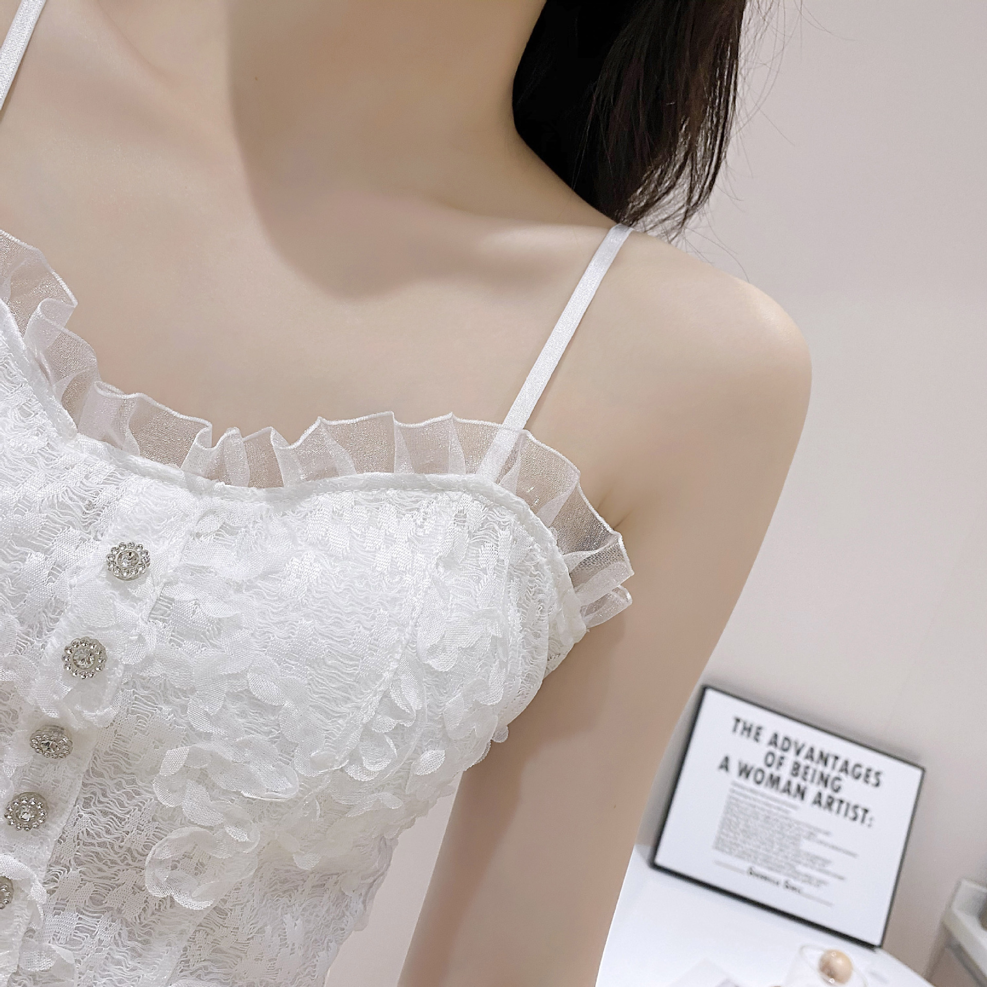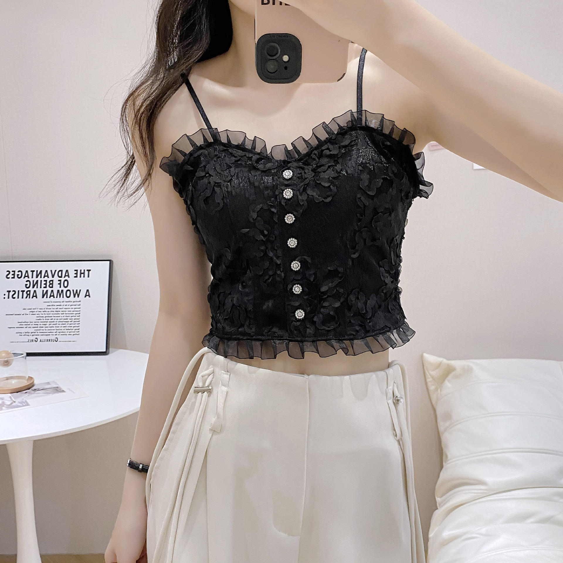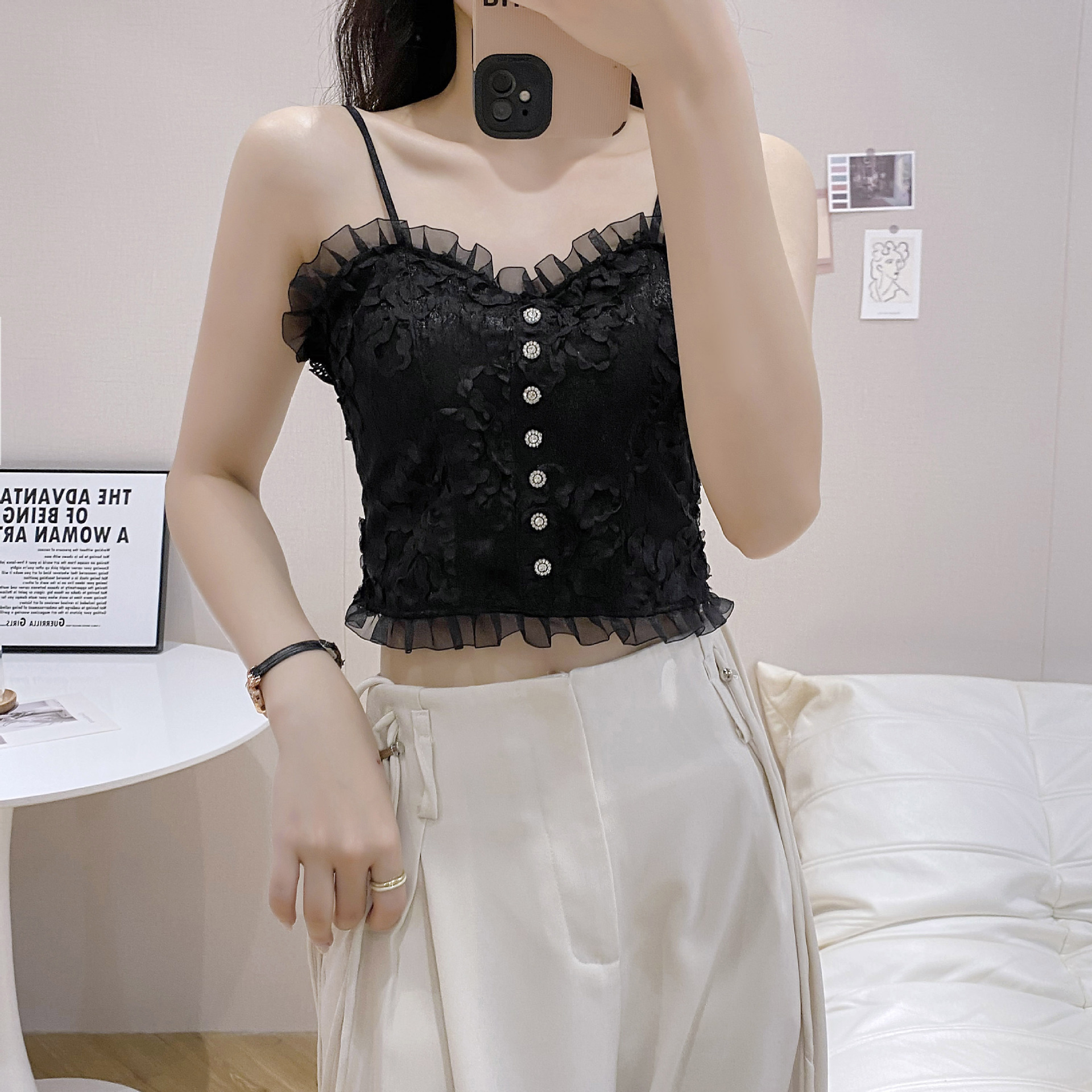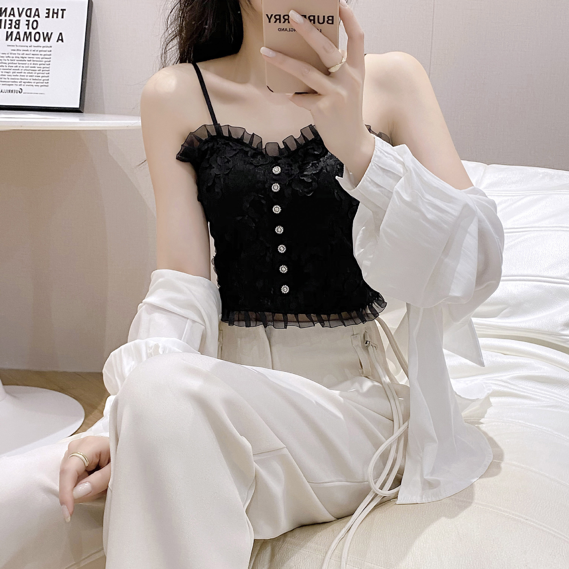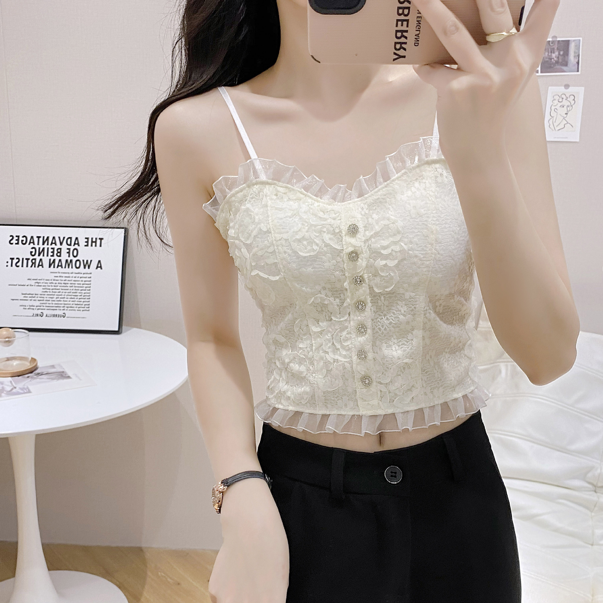 순수한 욕망 레이스 스타일 귀여운 카미솔 여성의 여름 외부 착용 내부 스파이스 소녀 레이스 짧은 화이트 올 매치 탑스토어 가기