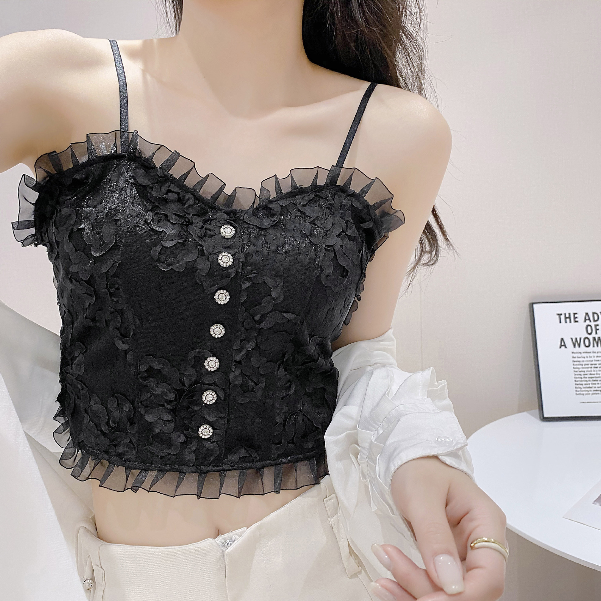 순수한 욕망 레이스 스타일 귀여운 카미솔 여성의 여름 외부 착용 내부 스파이스 소녀 레이스 짧은 화이트 올 매치 탑