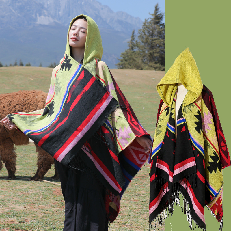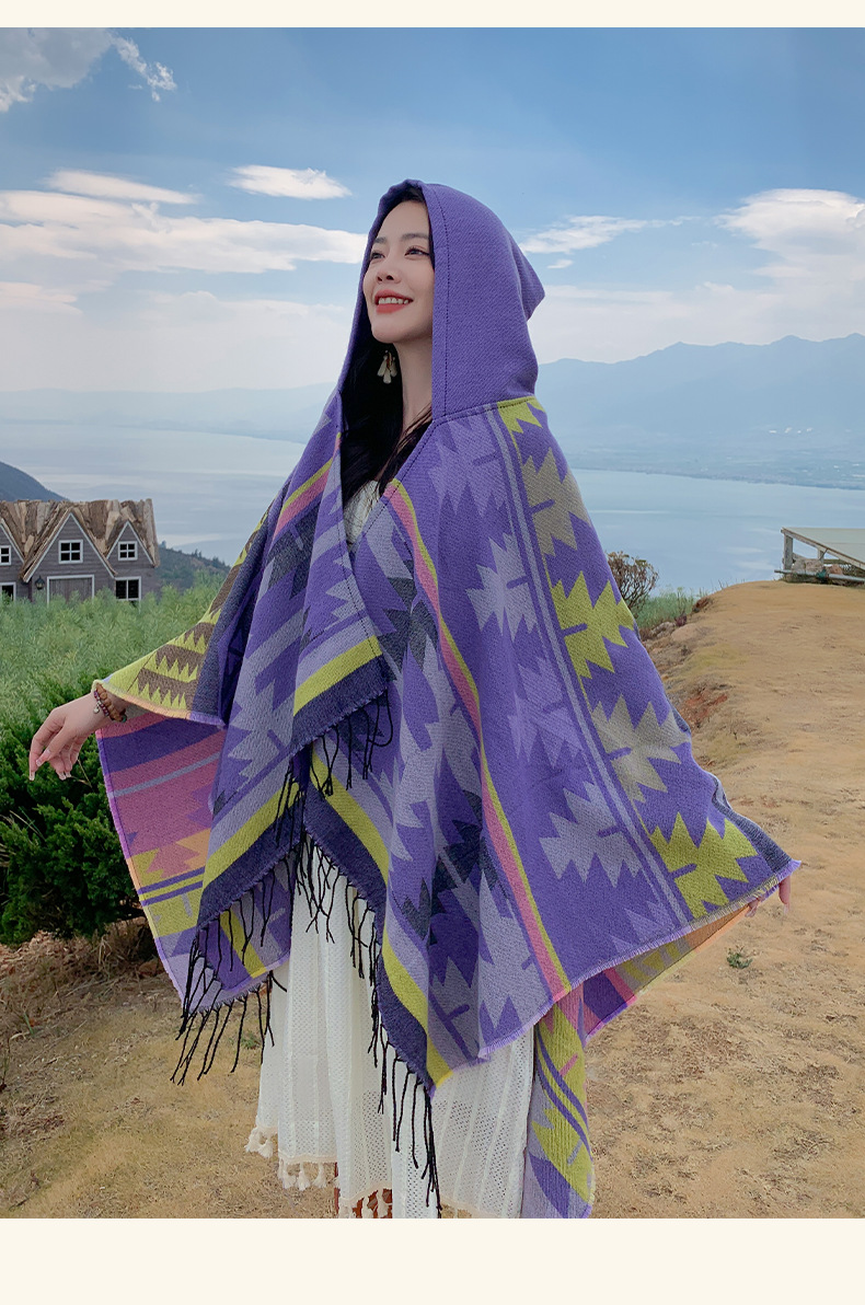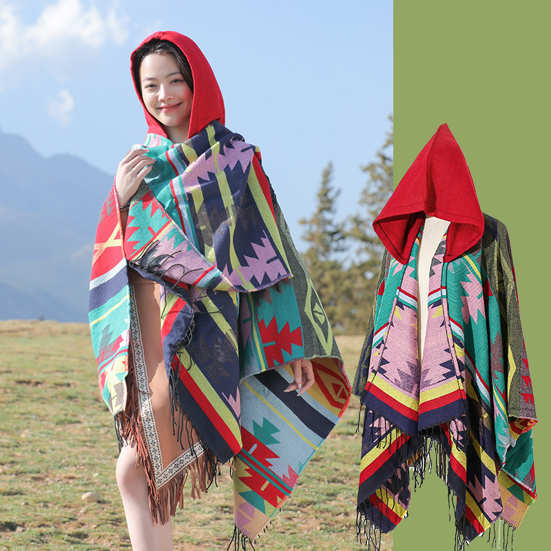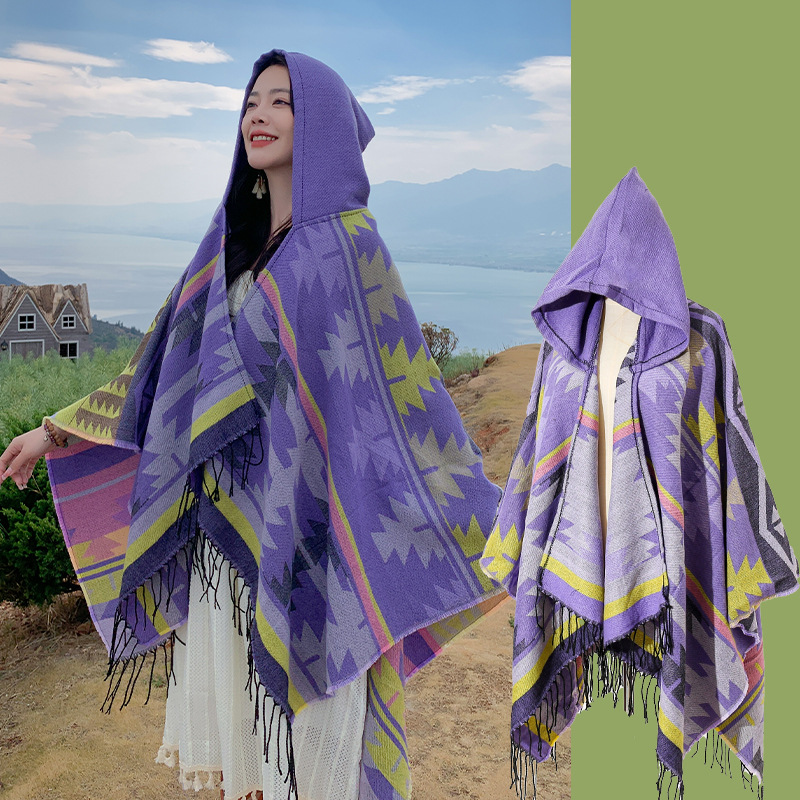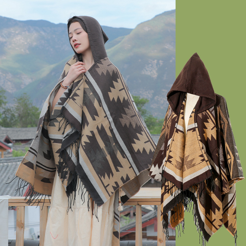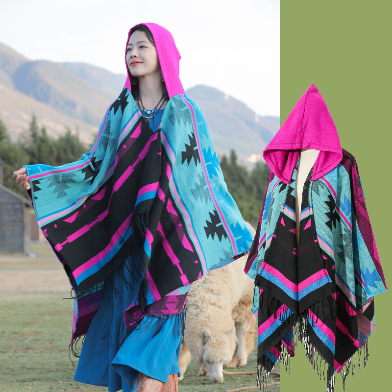 티베트 윈난 서부 사천 민족 스타일 여행복 목도리 여성 두꺼운 외부 착용 따뜻한 사진 망토 후드 망토스토어 가기