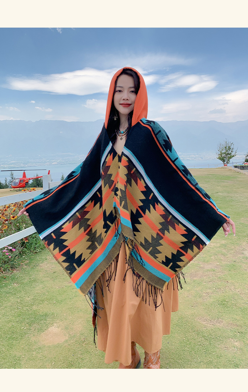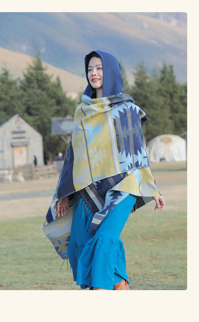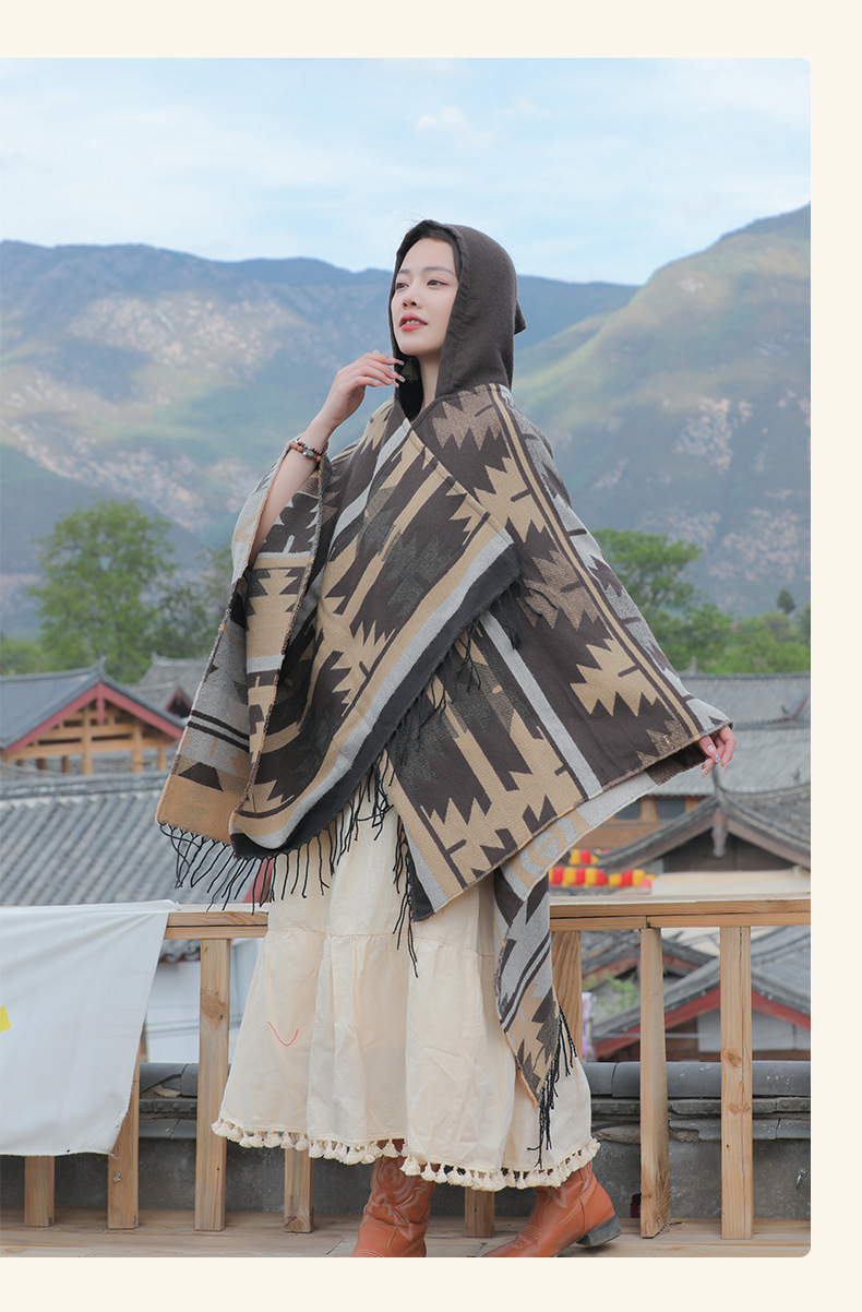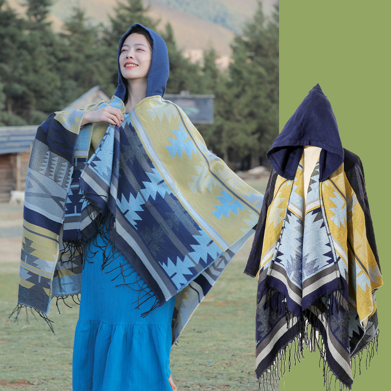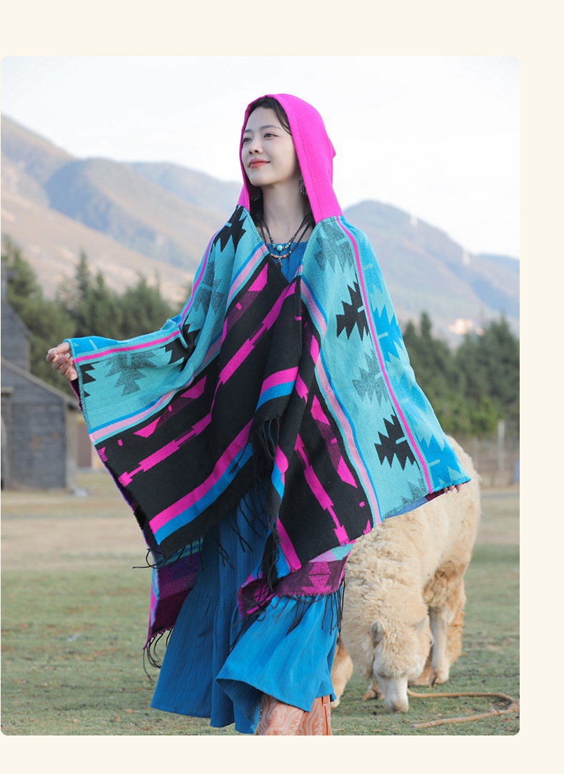 티베트 윈난 서부 사천 민족 스타일 여행복 목도리 여성 두꺼운 외부 착용 따뜻한 사진 망토 후드 망토스토어 가기