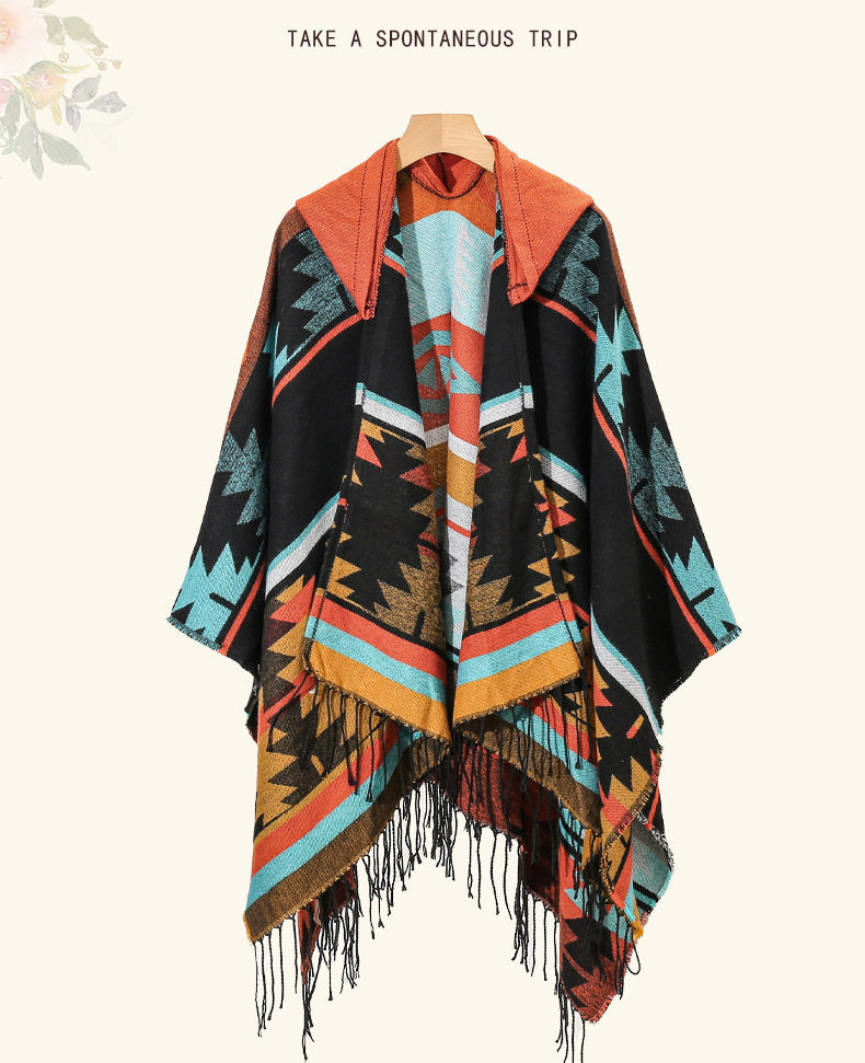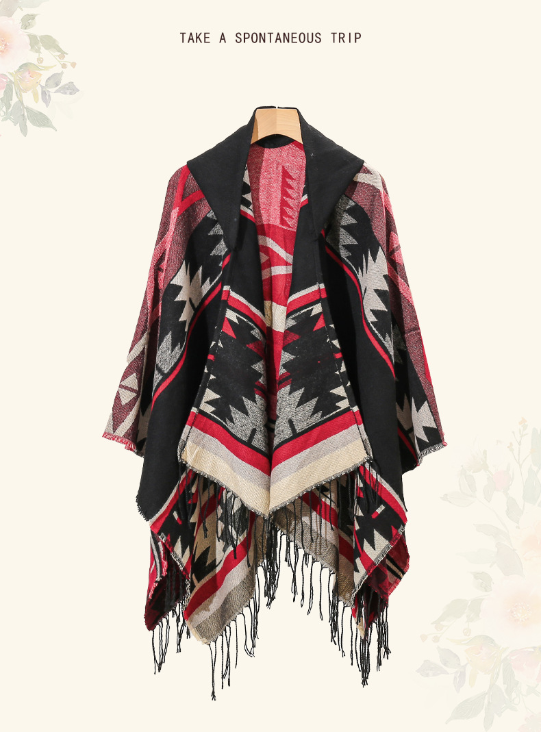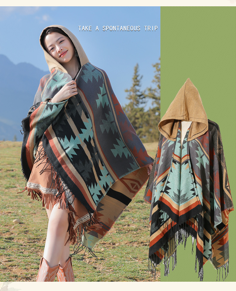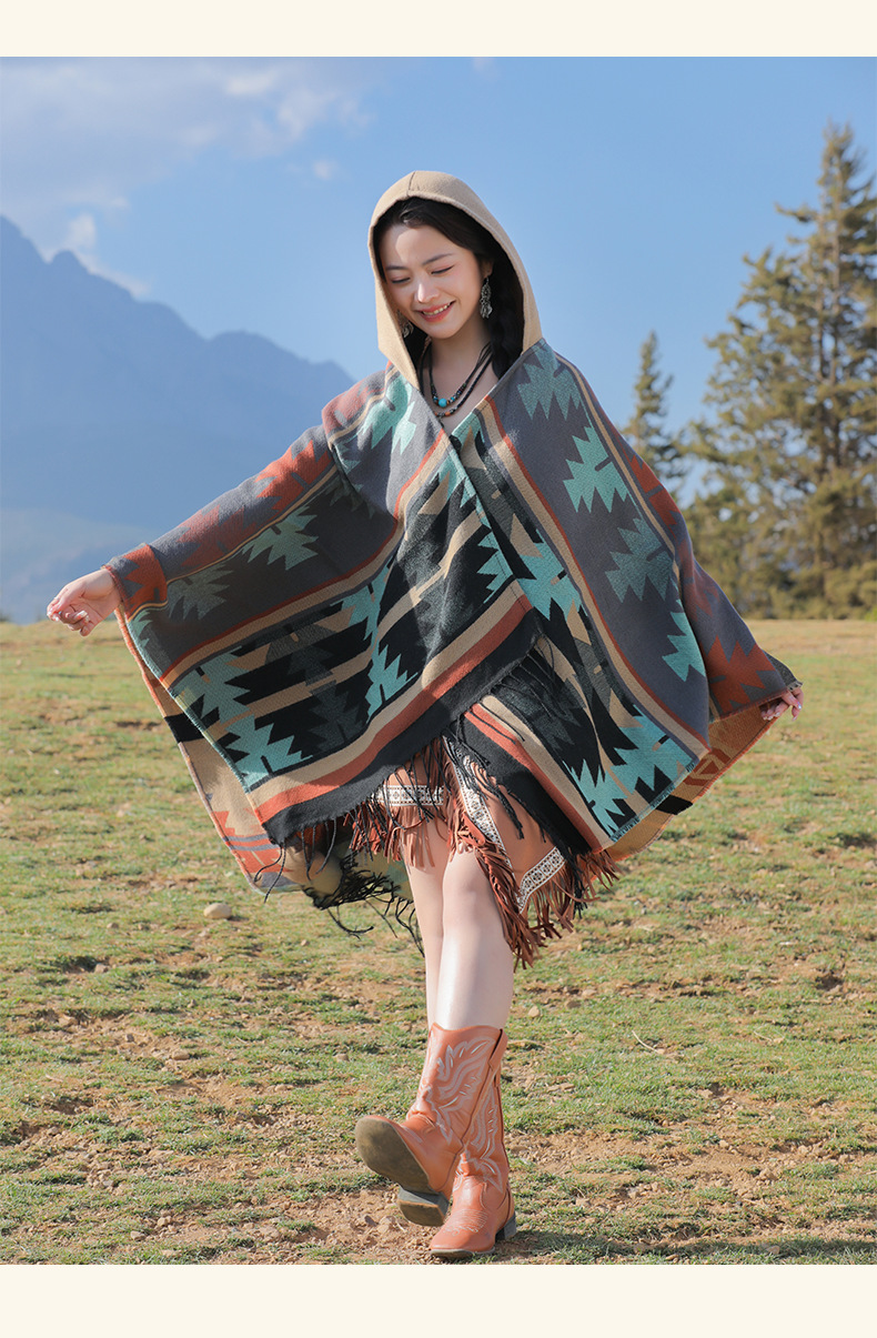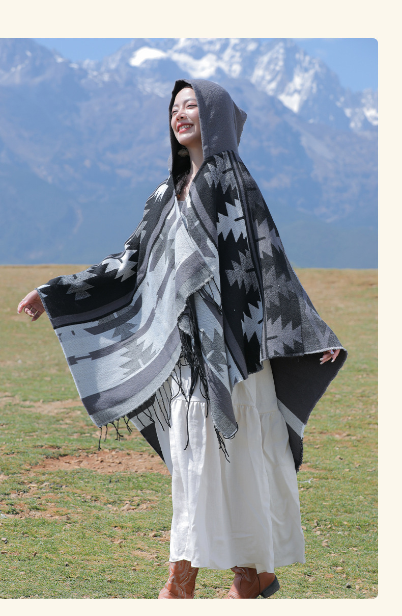 티베트 윈난 서부 사천 민족 스타일 여행복 목도리 여성 두꺼운 외부 착용 따뜻한 사진 망토 후드 망토스토어 가기
