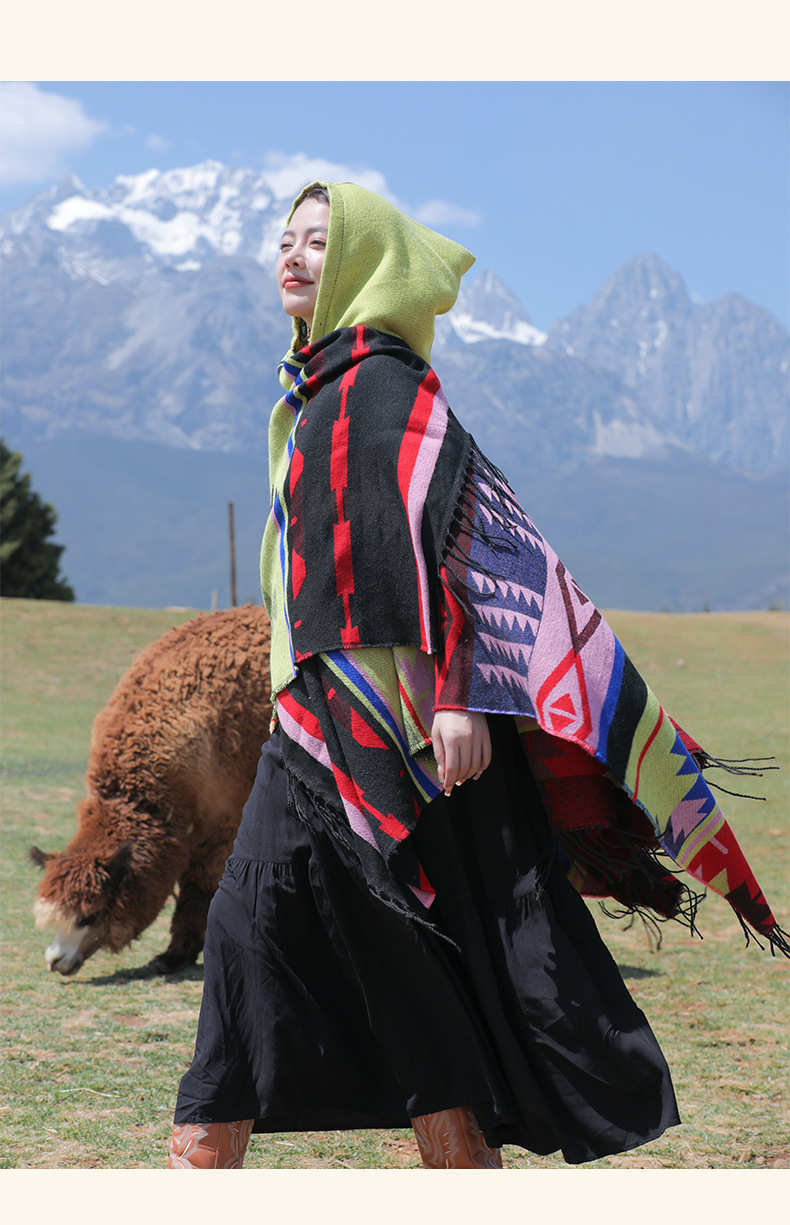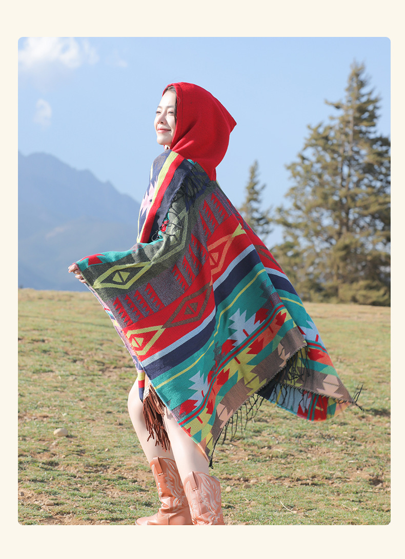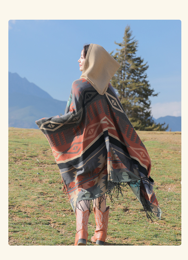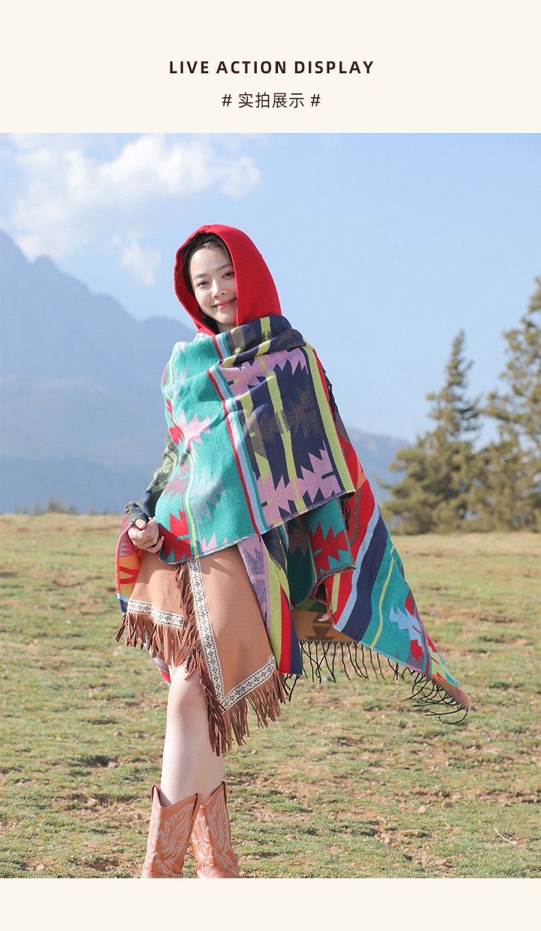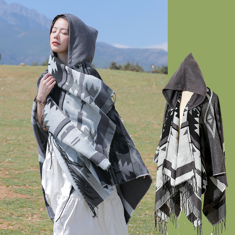 티베트 윈난 서부 사천 민족 스타일 여행복 목도리 여성 두꺼운 외부 착용 따뜻한 사진 망토 후드 망토