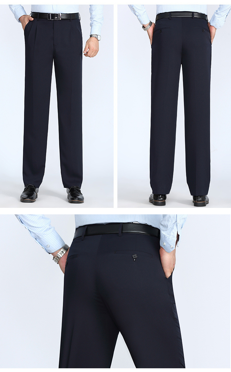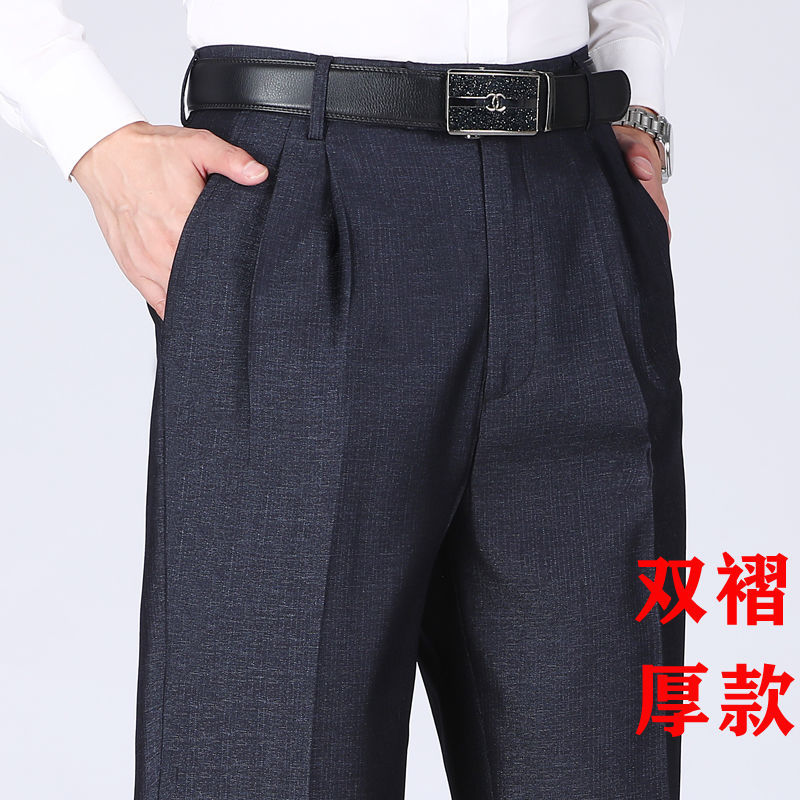 더블 플리츠 남성용 바지 얇은 바지 중년 및 노인 남성 바지 높은 허리 딥 크로 치 비 다림질 느슨한 아빠스토어 가기