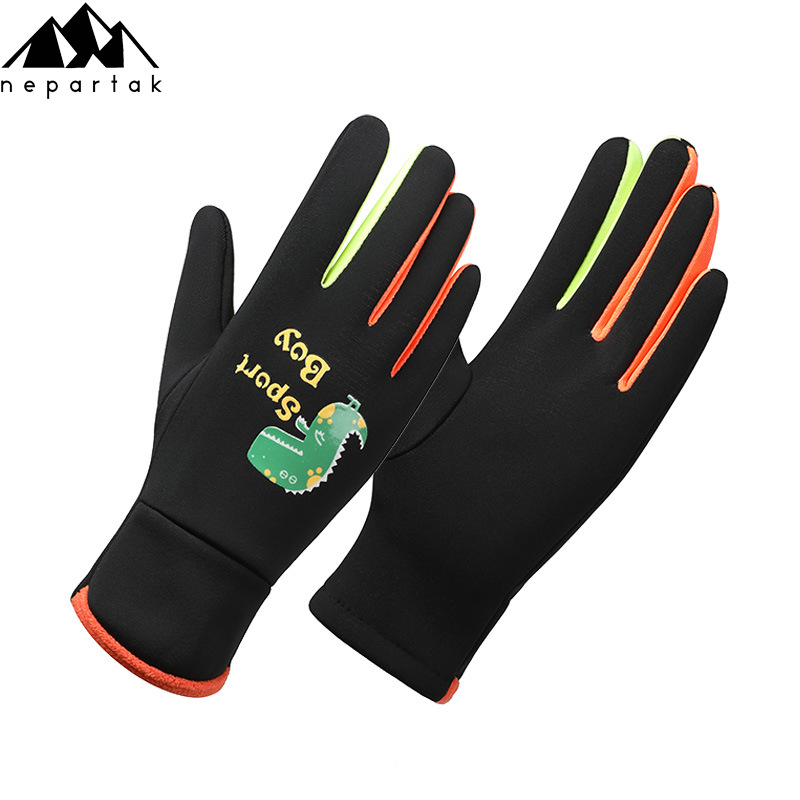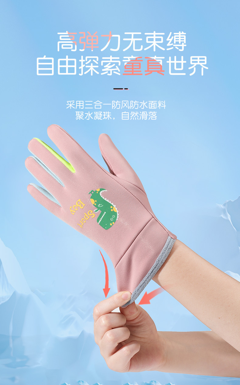 어린이 장갑 가을과 겨울 빛나는 승마 야외 스포츠 방풍 기모 아기 만화 장갑 소년과 소녀