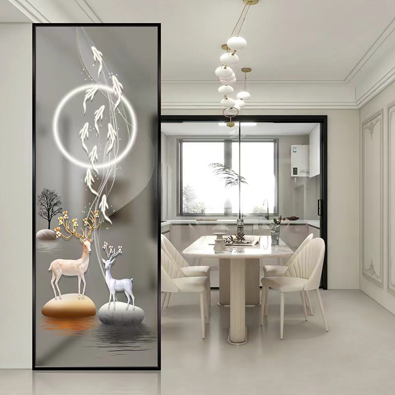 현대 심플 아트 창홍 유리 입구 스크린 파티션 거실 철 스테인레스 스틸 화장실 쉼터