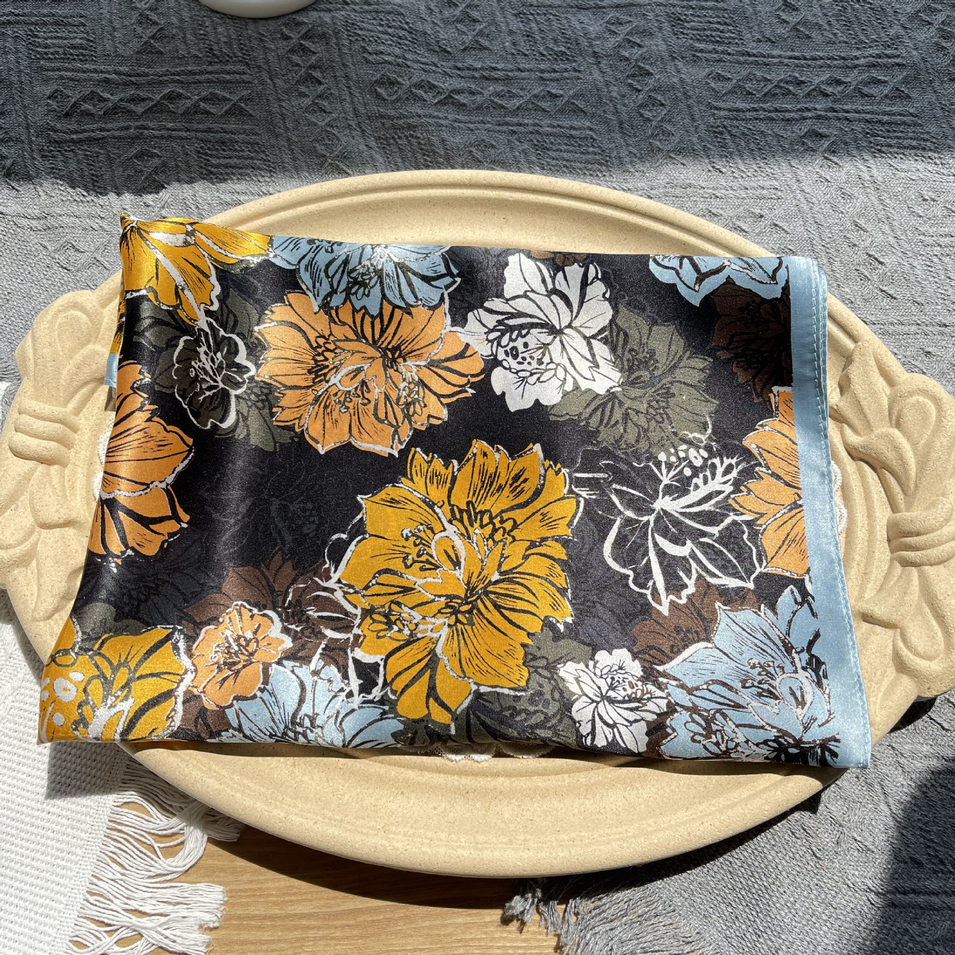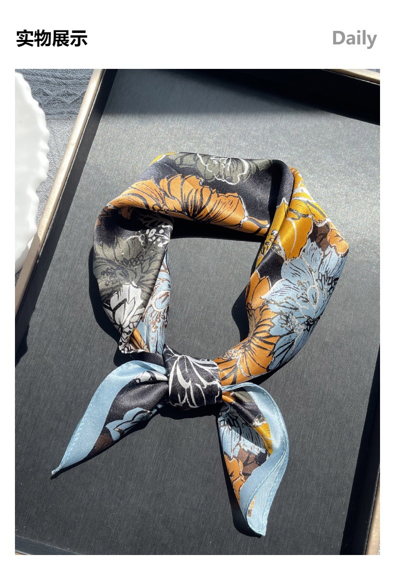 고급 꽃 블룸 인쇄 실크 스카프 여성의 고급 감각 53 작은 광장 스카프 여름 선스크린 스카프 패션 헤드 스카프스토어 가기