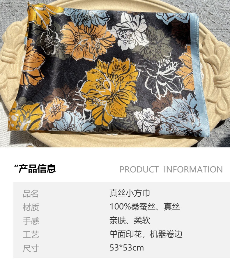 고급 꽃 블룸 인쇄 실크 스카프 여성의 고급 감각 53 작은 광장 스카프 여름 선스크린 스카프 패션 헤드 스카프