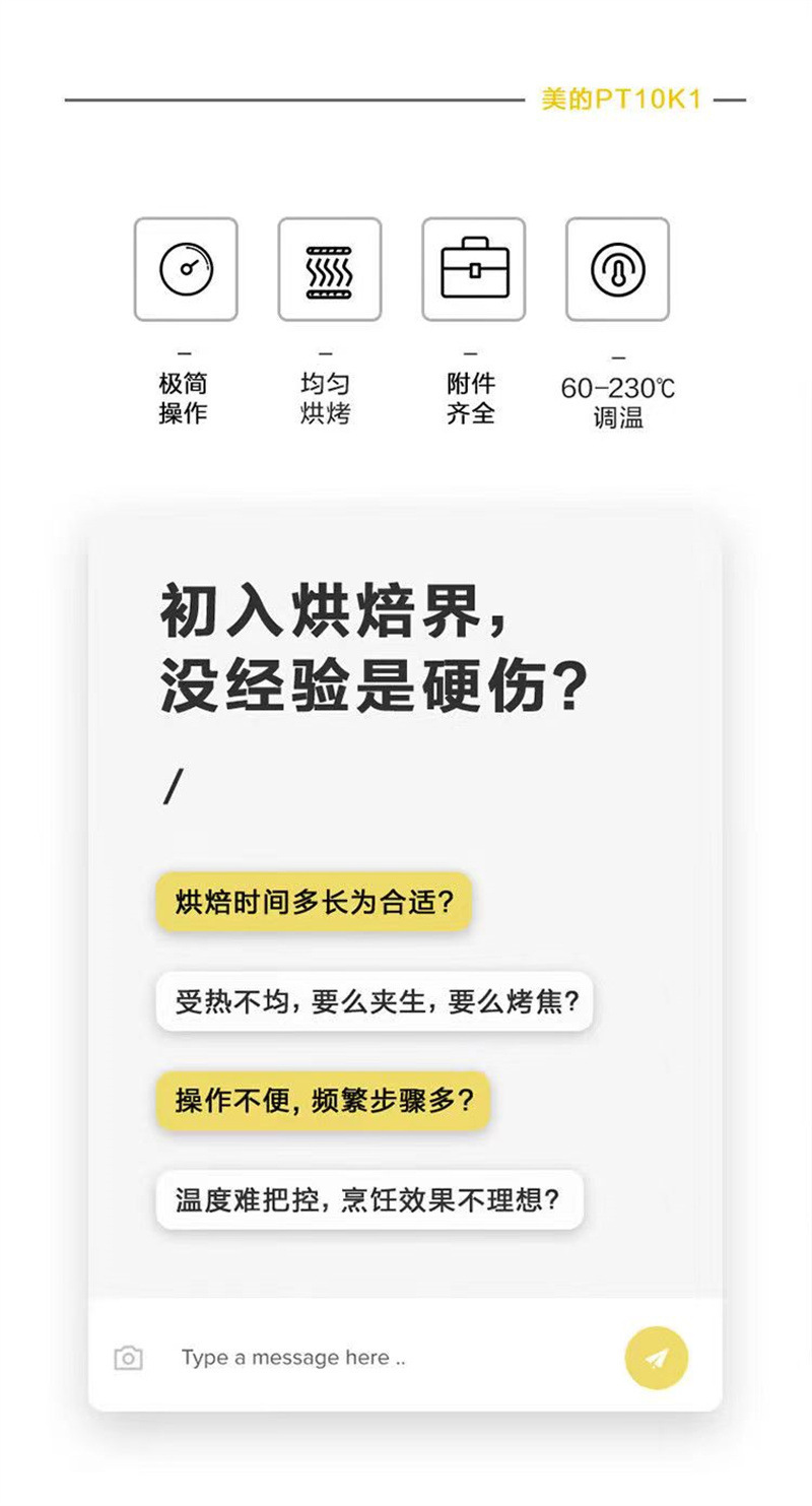 Midea PT10K1 전기 오븐 가정용 10L 용량 다기능 베이킹 케이크 자동 온도 제어 타이밍스토어 가기