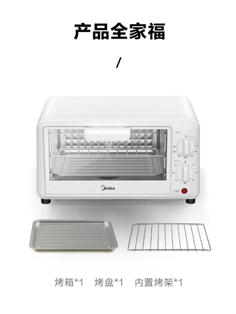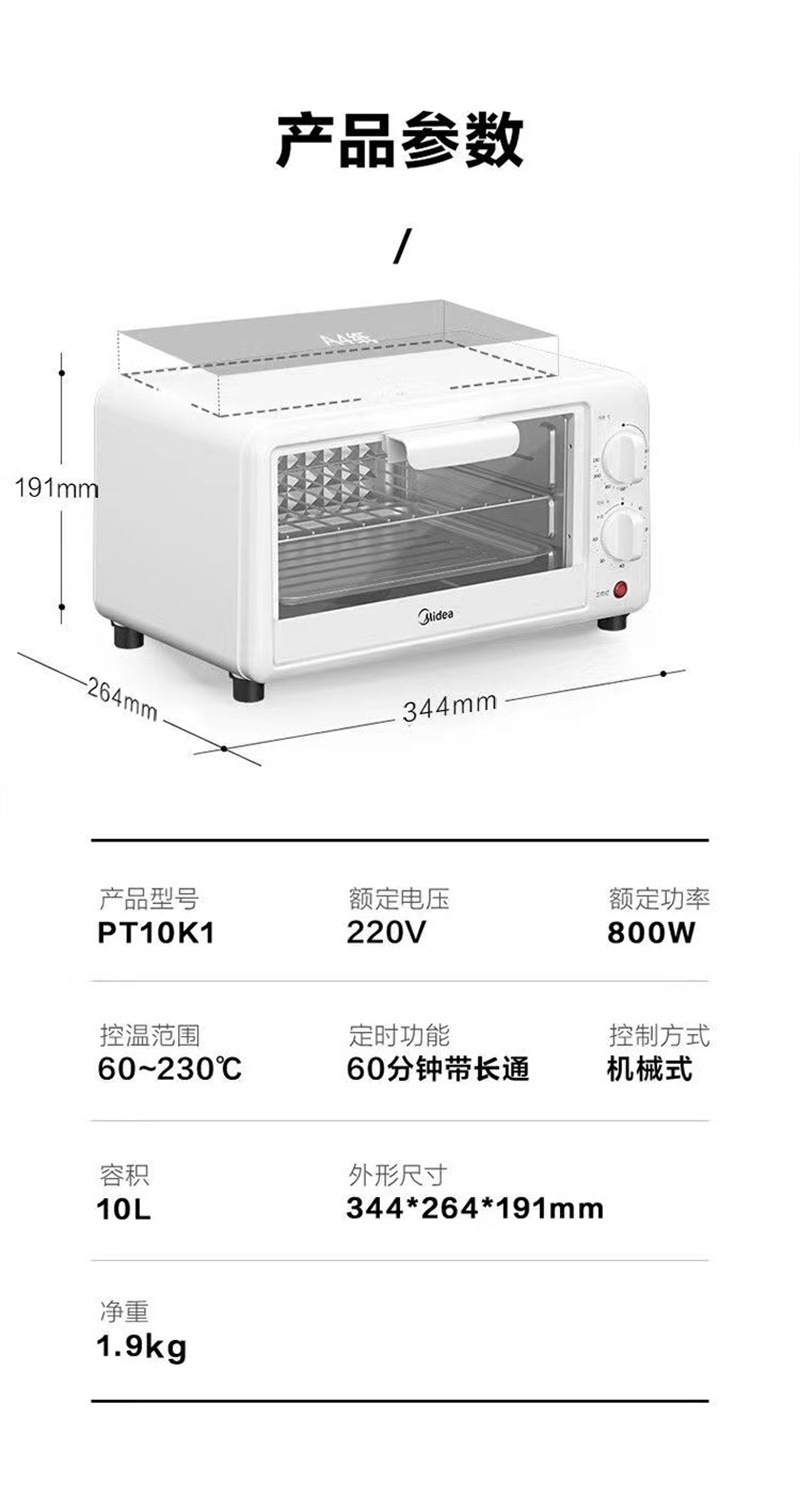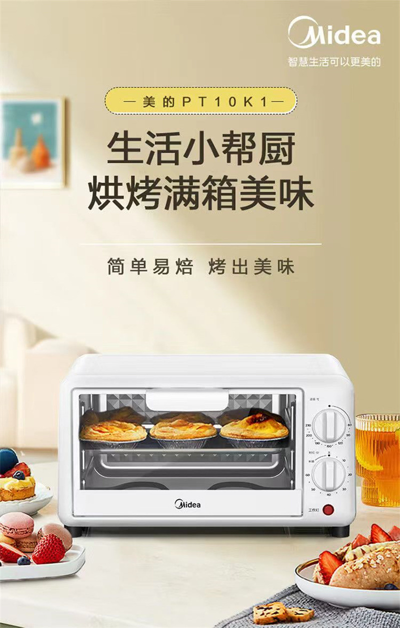 Midea PT10K1 전기 오븐 가정용 10L 용량 다기능 베이킹 케이크 자동 온도 제어 타이밍