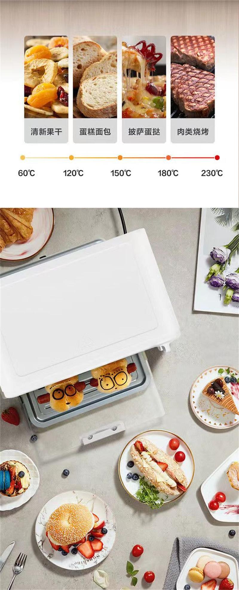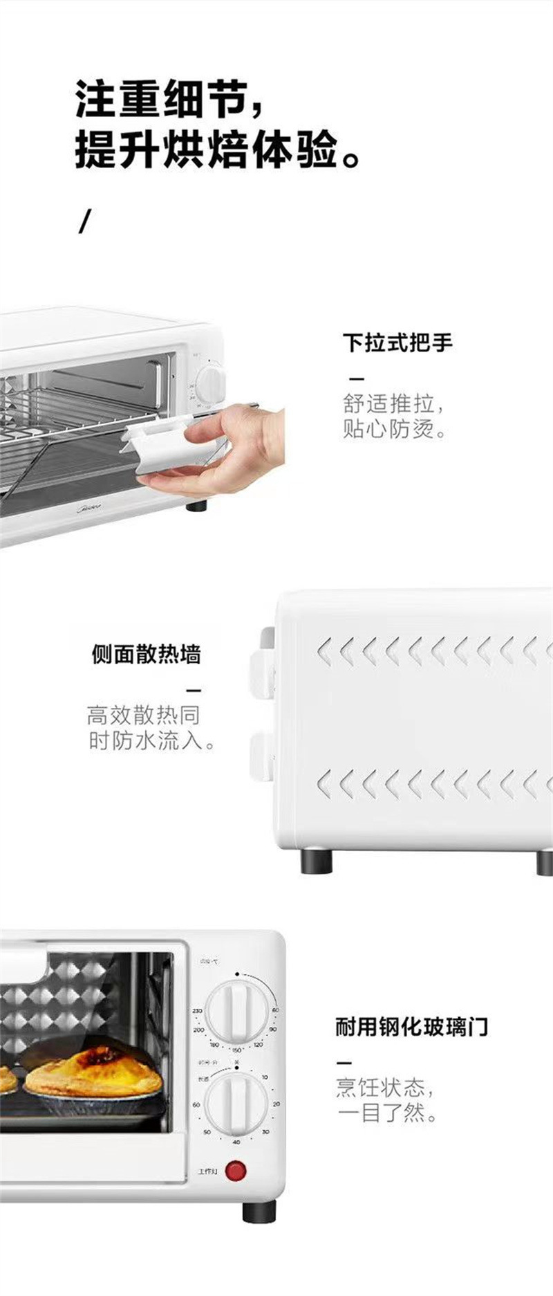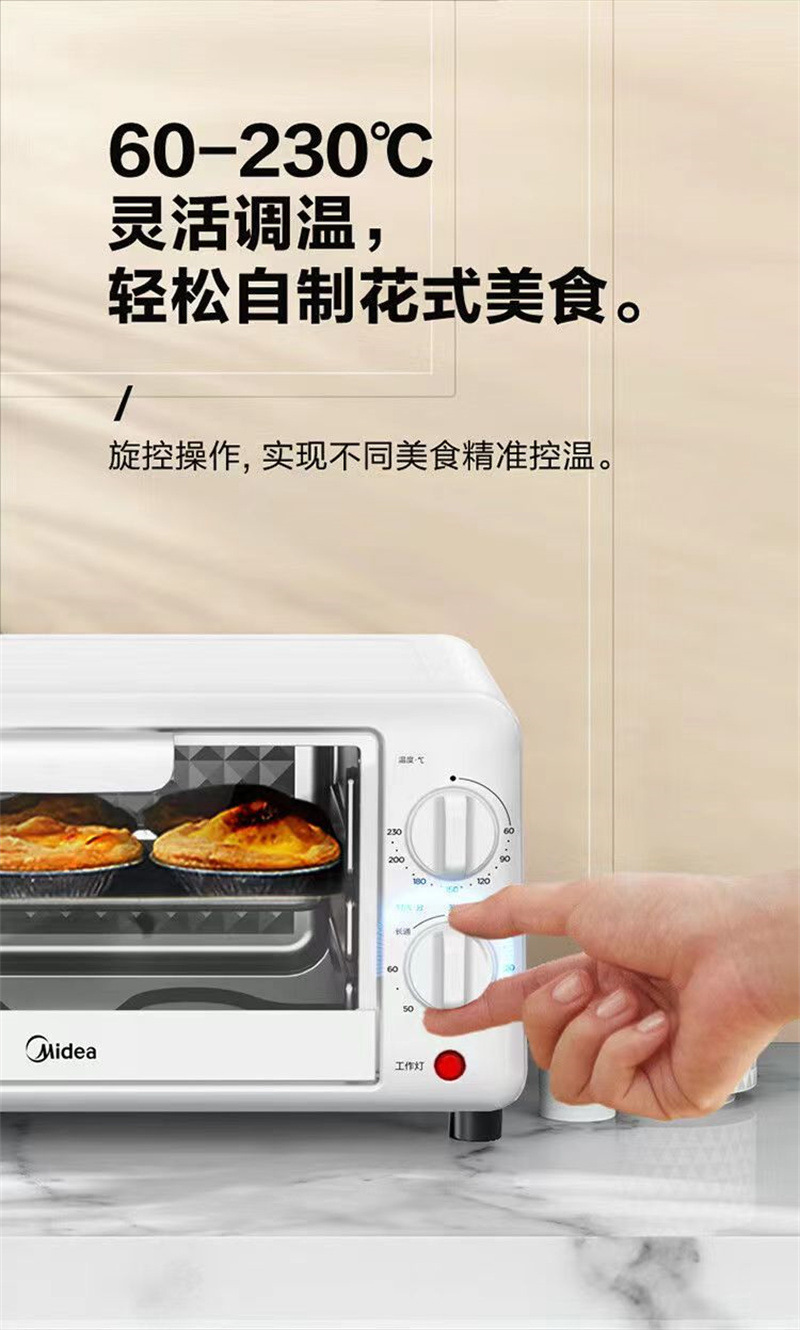 Midea PT10K1 전기 오븐 가정용 10L 용량 다기능 베이킹 케이크 자동 온도 제어 타이밍