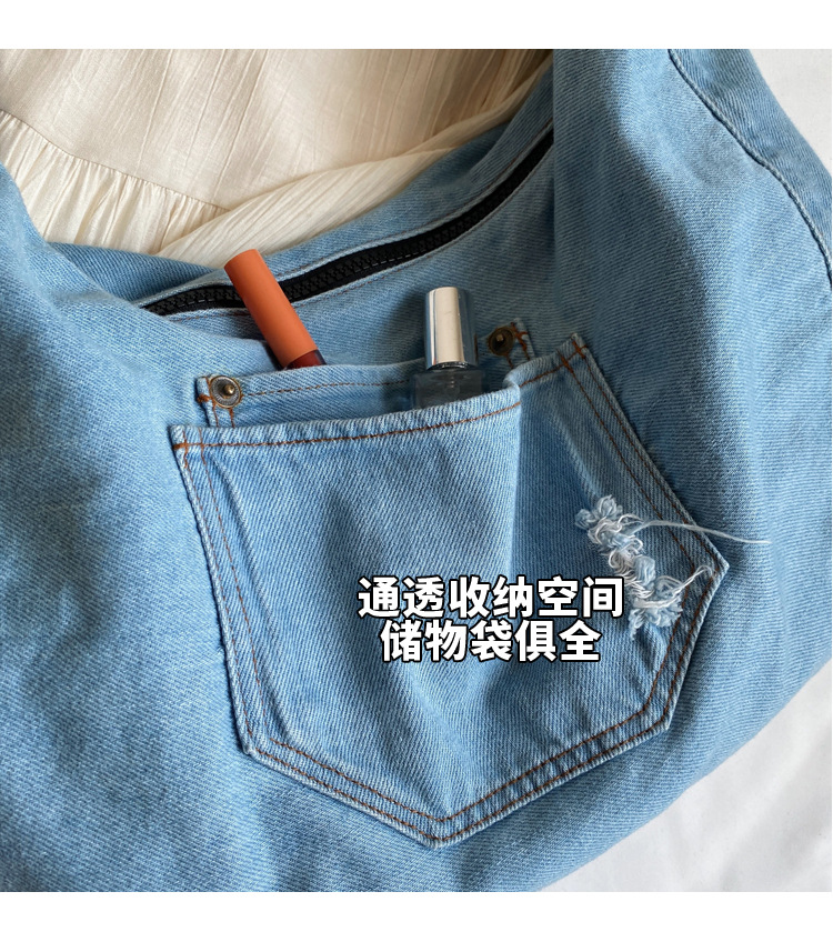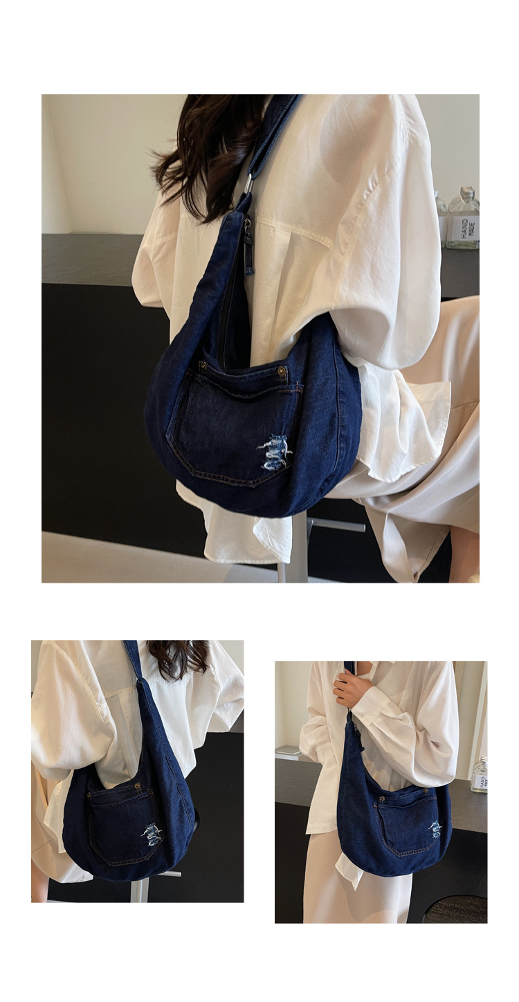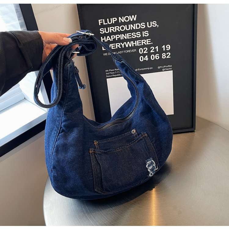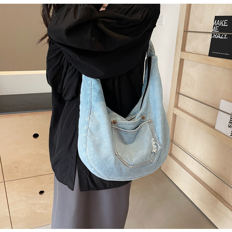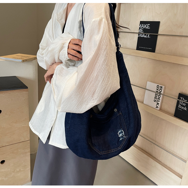 일본식 데님 크로스 바디 백 여성 예술적 대용량 어깨 가방 학생 클래스 통근 올 매치 만두 백스토어 가기