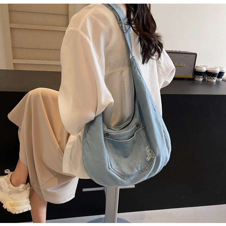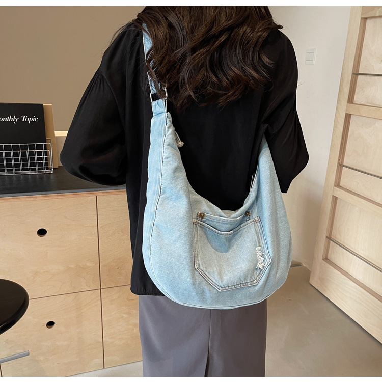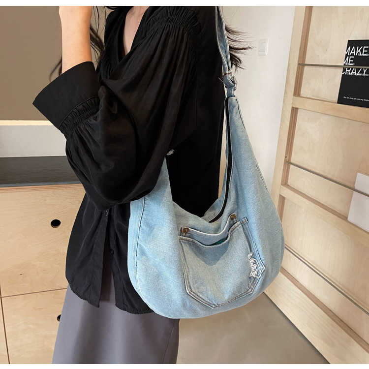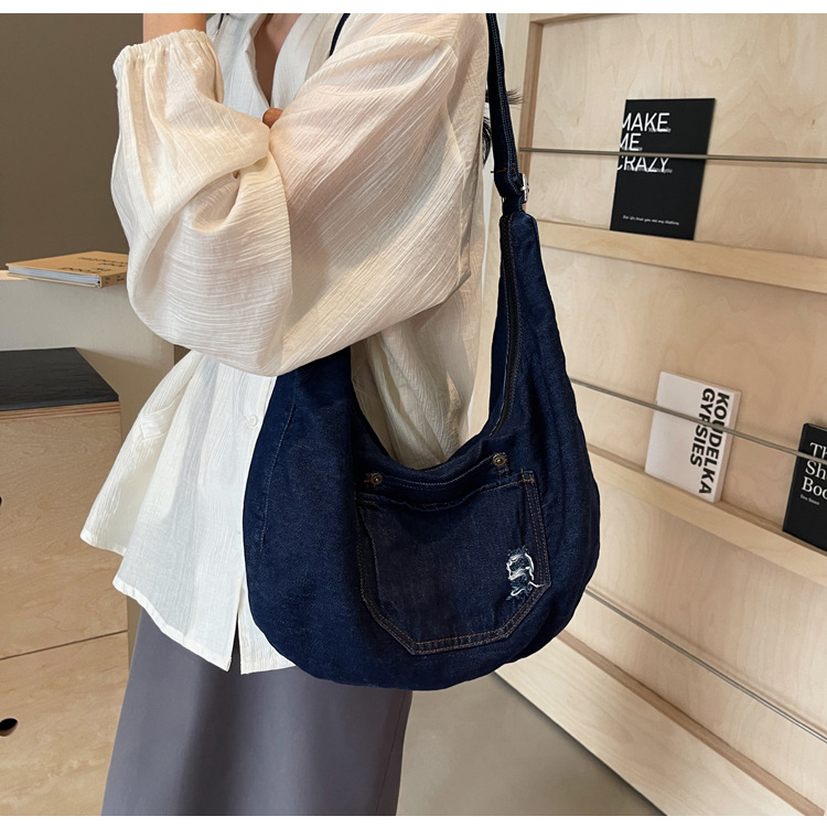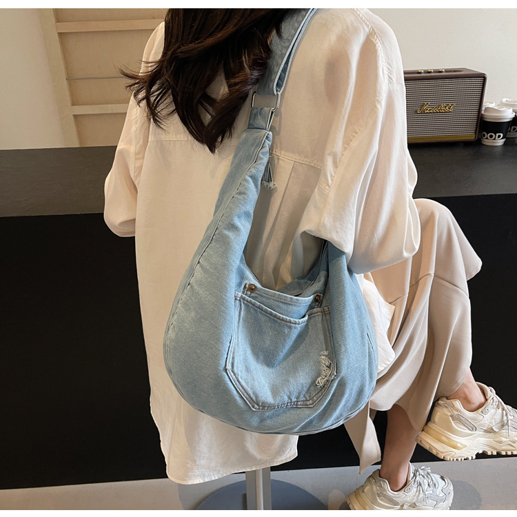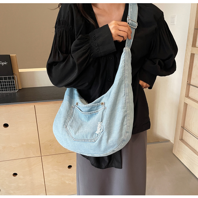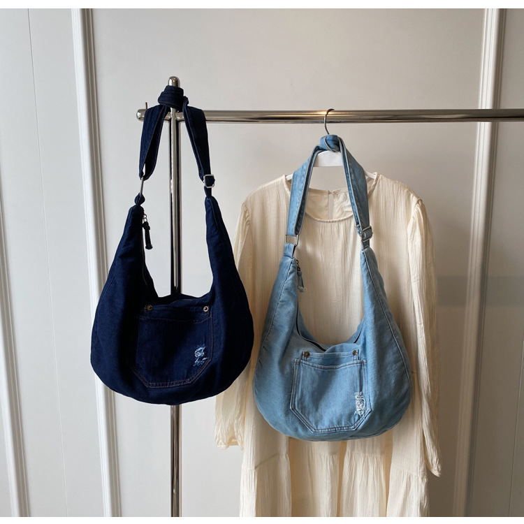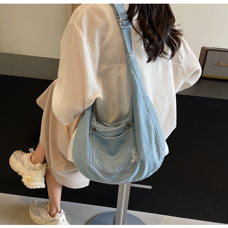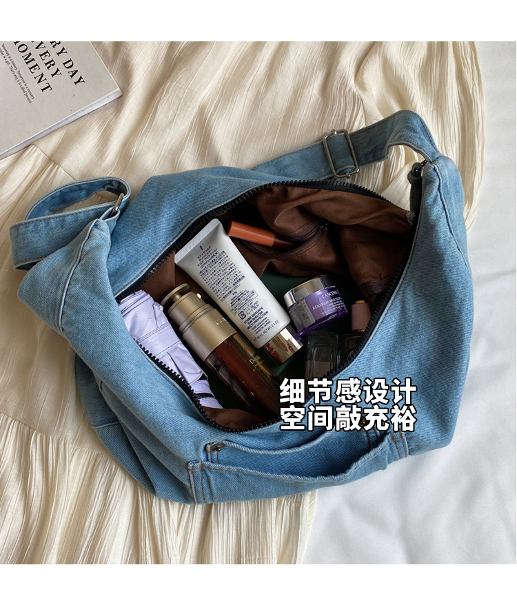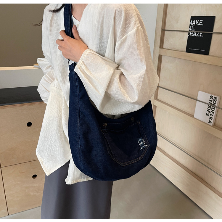 일본식 데님 크로스 바디 백 여성 예술적 대용량 어깨 가방 학생 클래스 통근 올 매치 만두 백