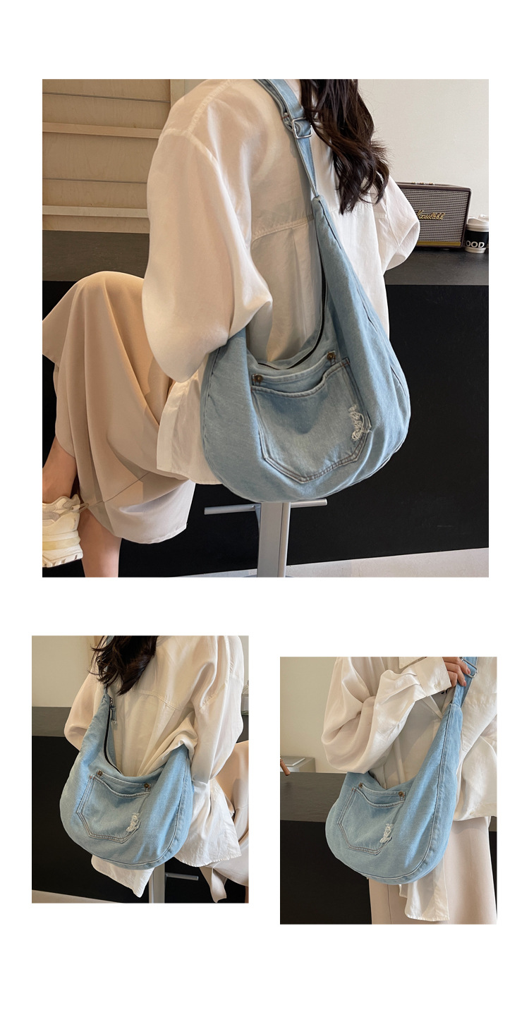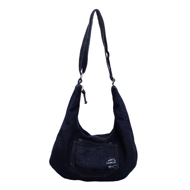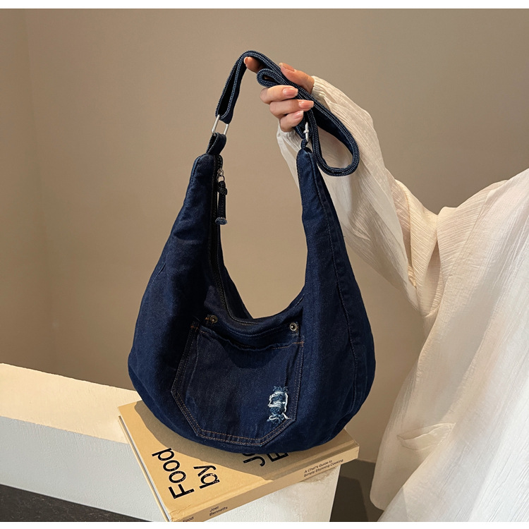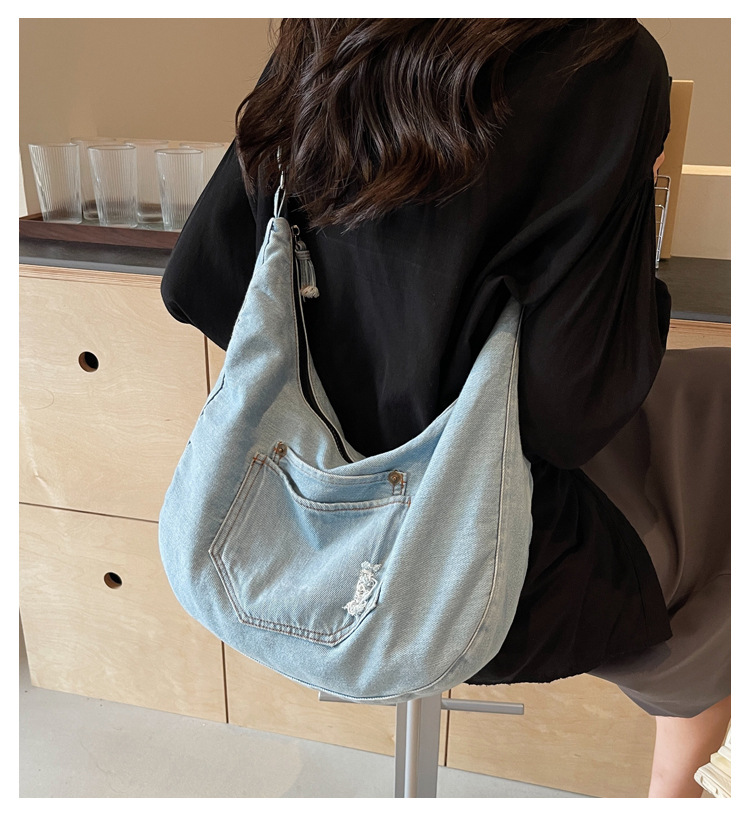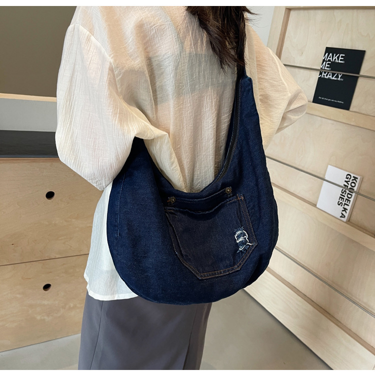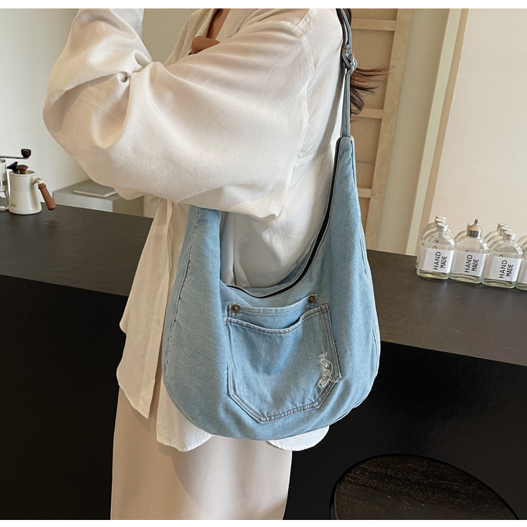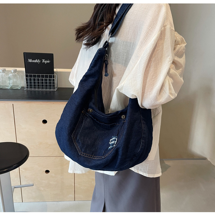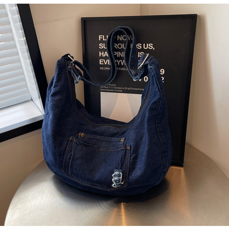 일본식 데님 크로스 바디 백 여성 예술적 대용량 어깨 가방 학생 클래스 통근 올 매치 만두 백