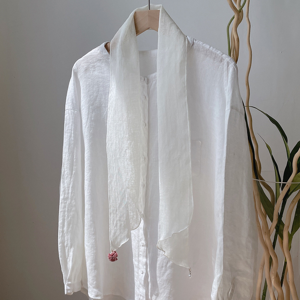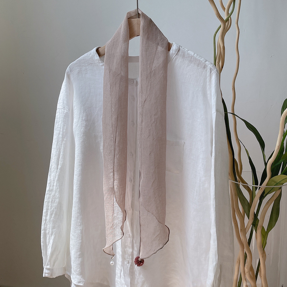 예술 하이 퀄리티 100% 순수 리넨 긴 좁은 스카프 여성 여름 경량 통기성 스트랩 스카프스토어 가기