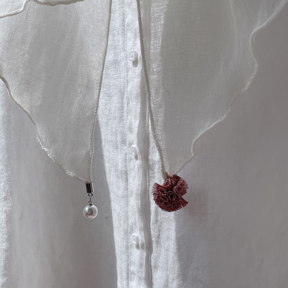 长条款,纯色日系文艺风,两端是花朵和珍珠流苏设计,高级随性~