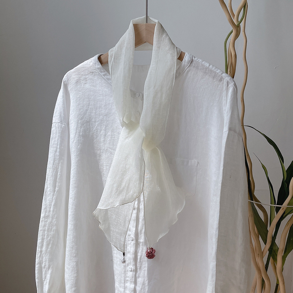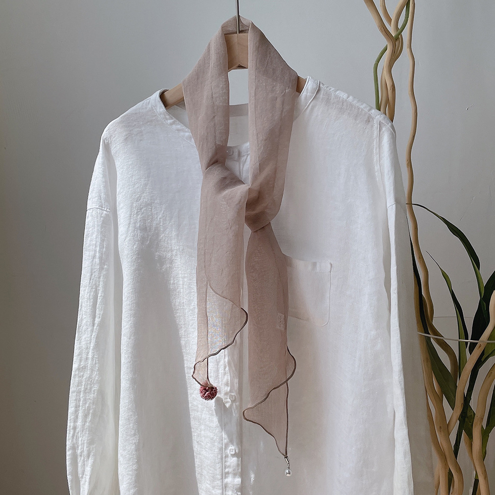 예술 하이 퀄리티 100% 순수 리넨 긴 좁은 스카프 여성 여름 경량 통기성 스트랩 스카프