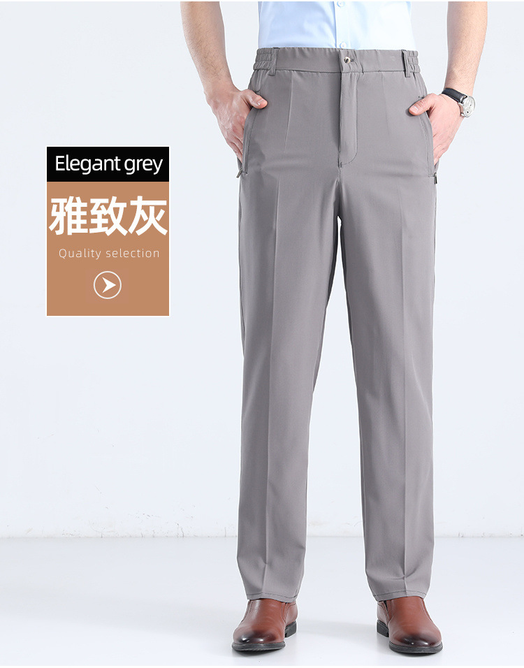 아이스 실크 중년 남성 캐주얼 바지 느슨한 중년 남성 바지 높은 허리 빠른 건조 스트레이트 바지 아빠 여름 얇은스토어 가기