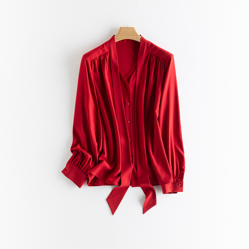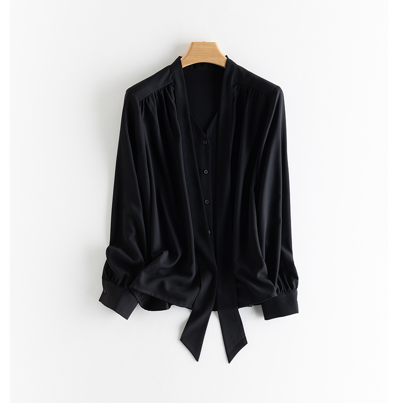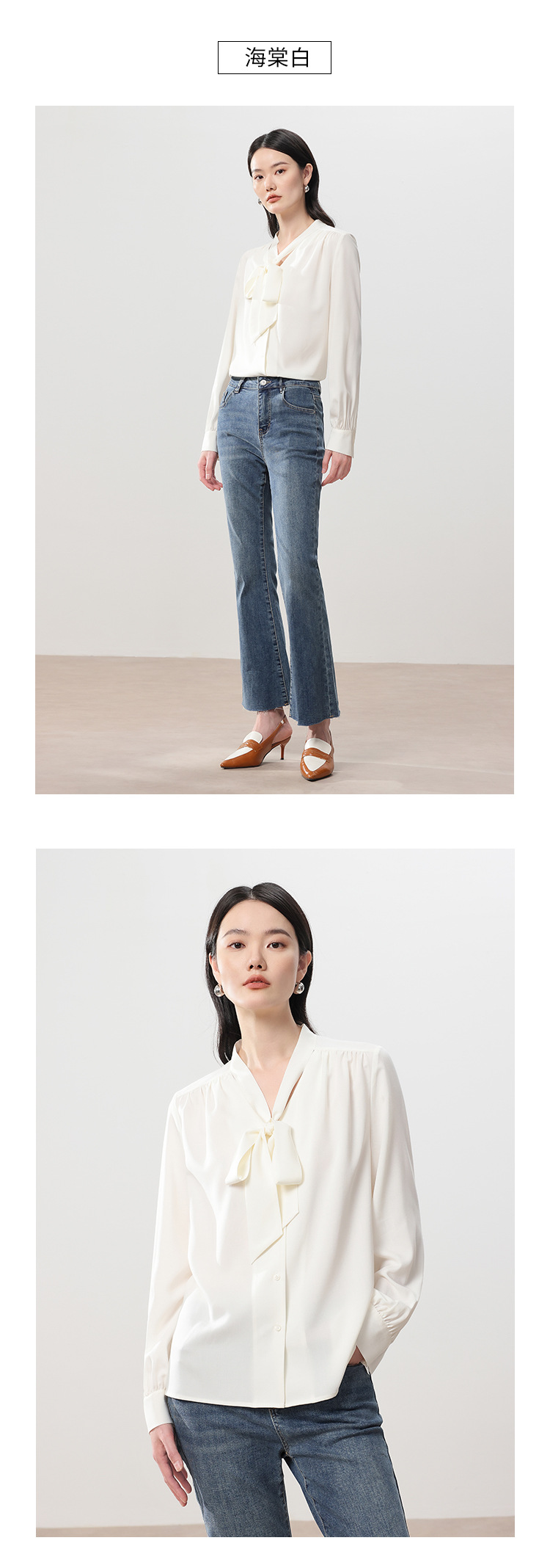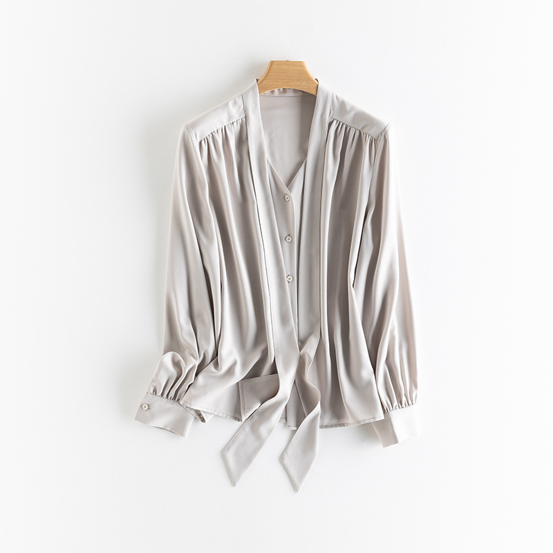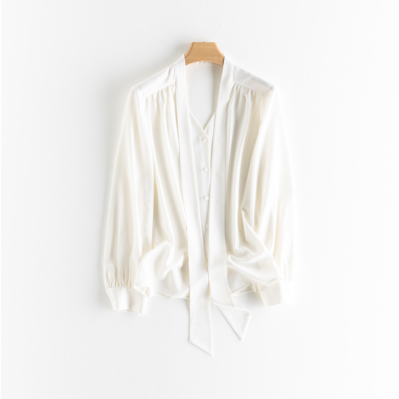 24 여름과 가을 새로운 여성 스트리머 재킷 슬림 클래식 셔츠 통기성 소프트 케어 주름 구름 느낌 셔츠