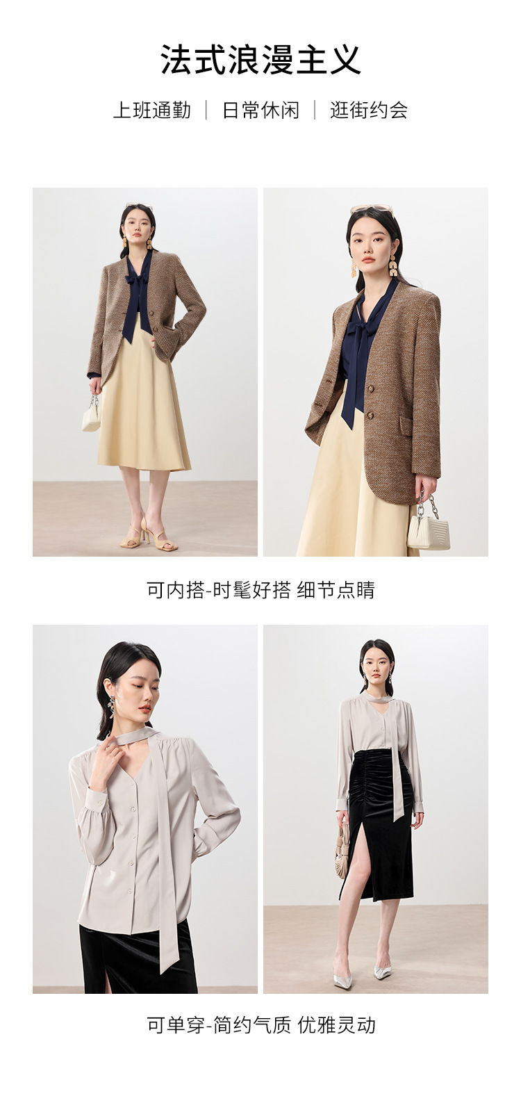 24 여름과 가을 새로운 여성 스트리머 재킷 슬림 클래식 셔츠 통기성 소프트 케어 주름 구름 느낌 셔츠스토어 가기