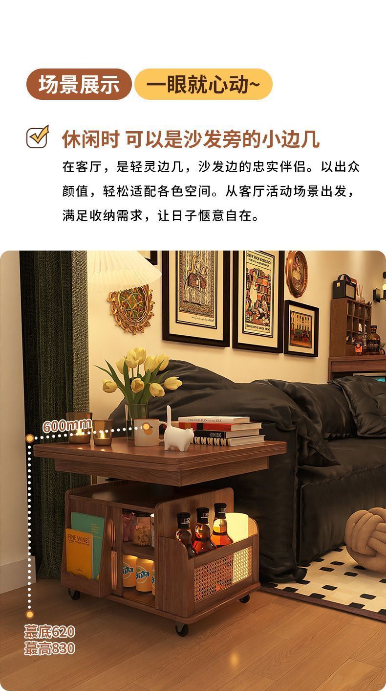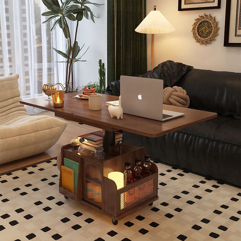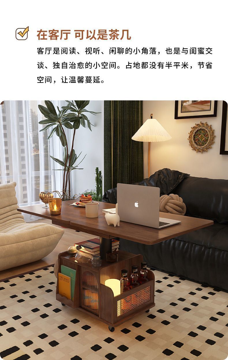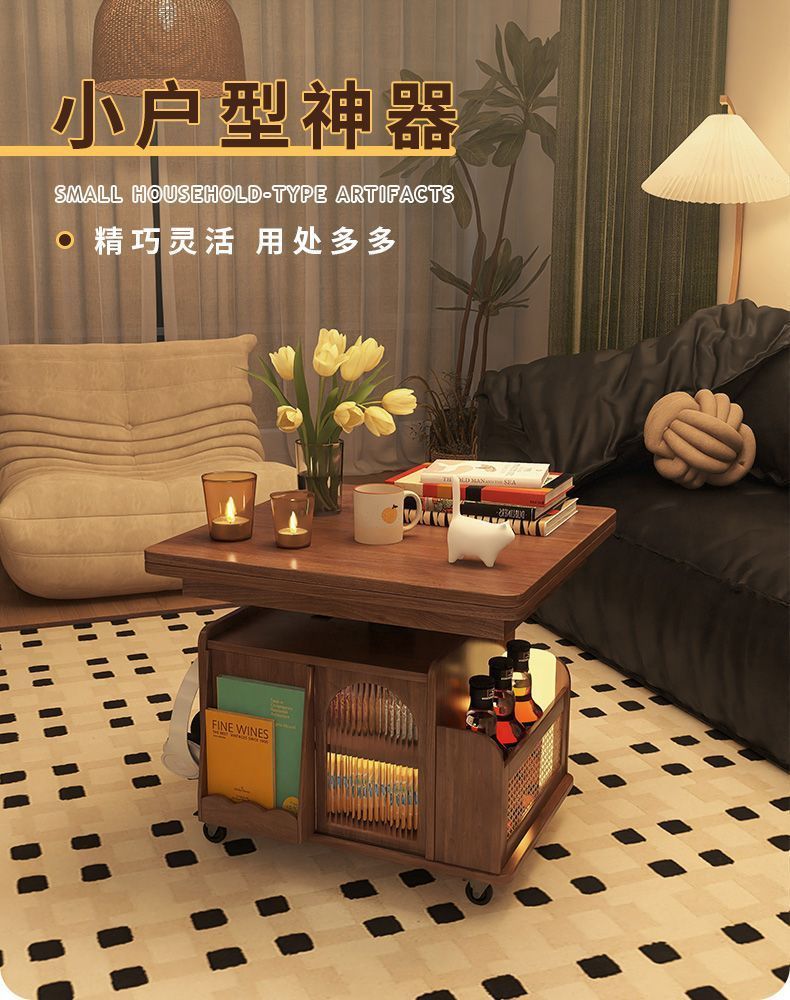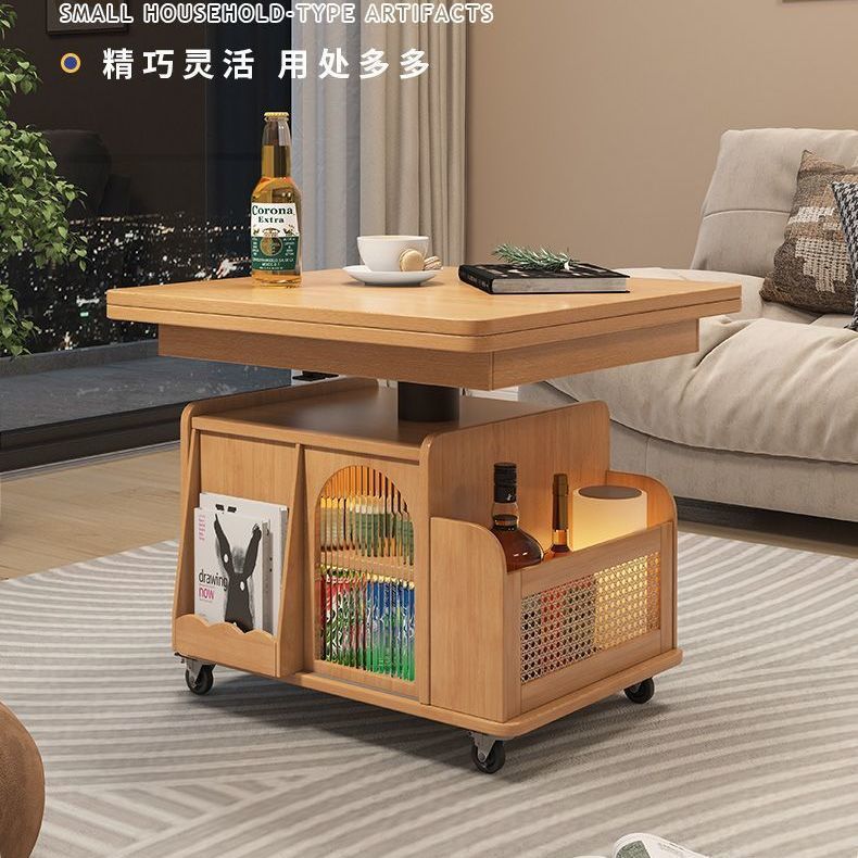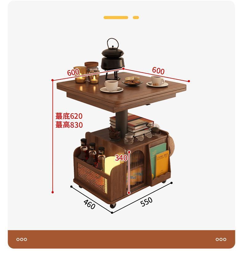 단단한 나무 나이 리프팅 커피 테이블 모바일 카트 차 테이블 접히는 식탁 이중 목적 차 테이블 다기능 거실 소파스토어 가기