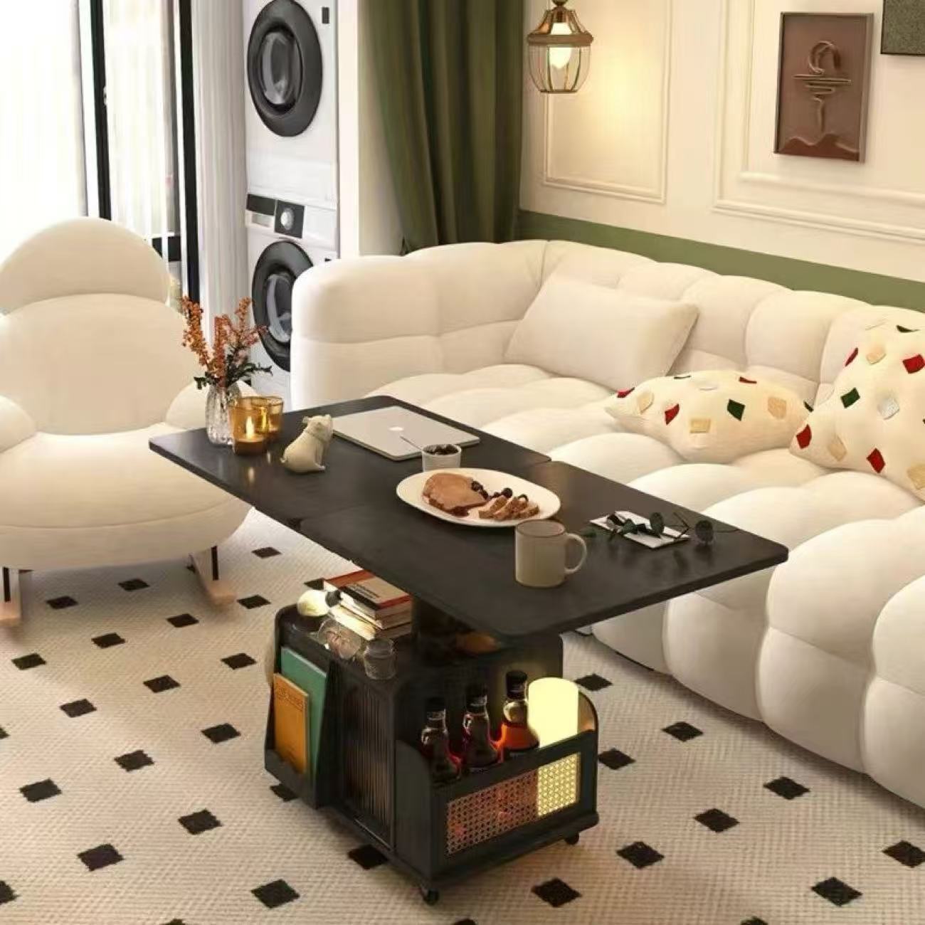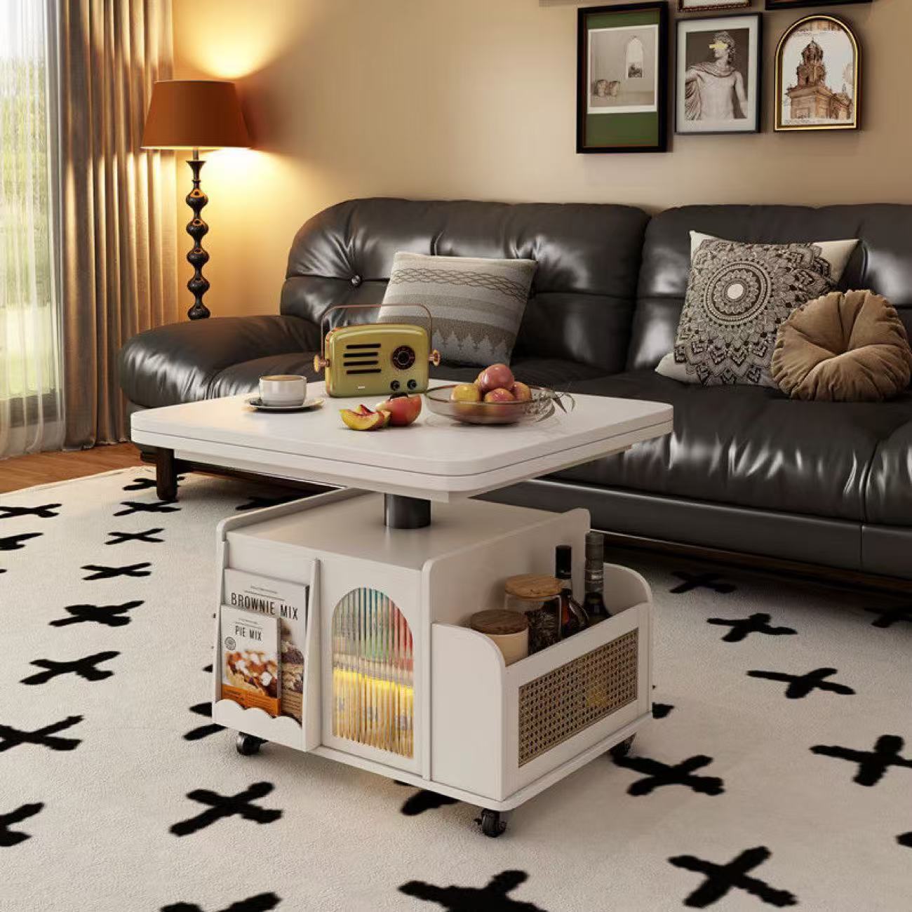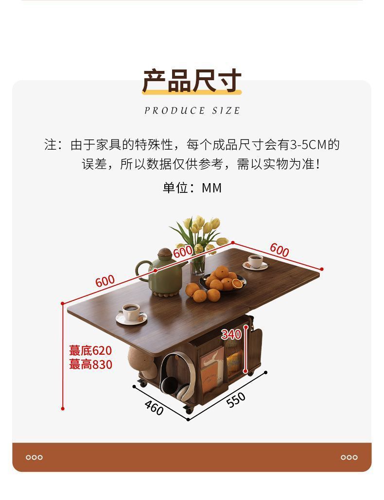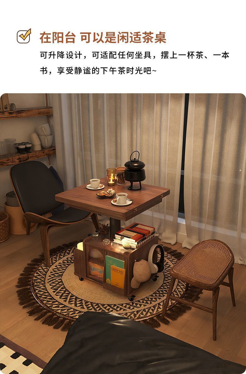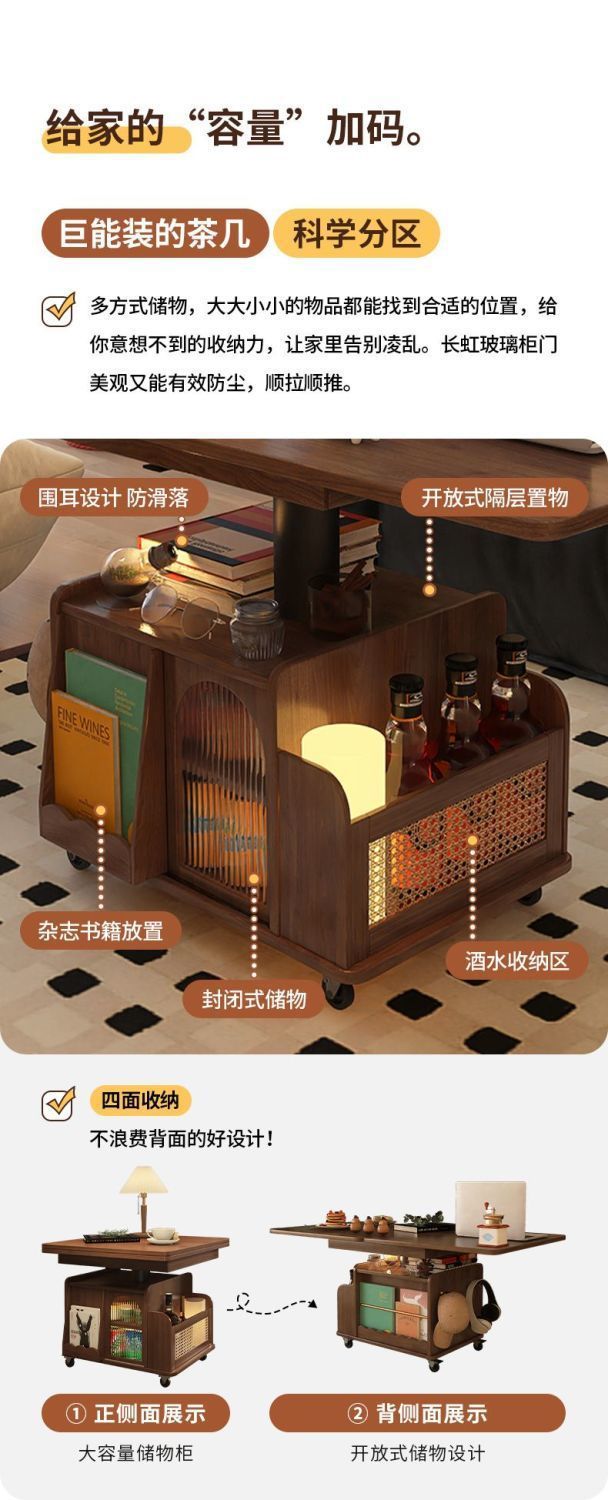 단단한 나무 나이 리프팅 커피 테이블 모바일 카트 차 테이블 접히는 식탁 이중 목적 차 테이블 다기능 거실 소파스토어 가기
