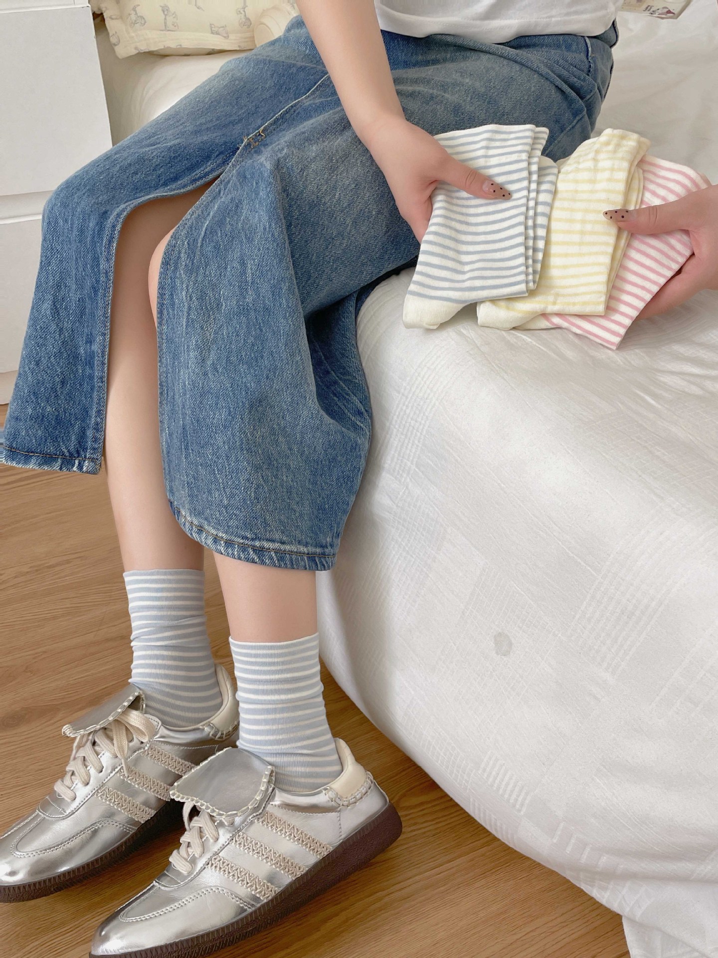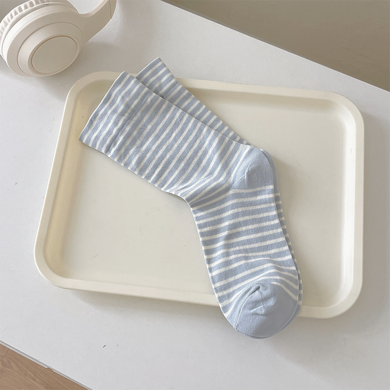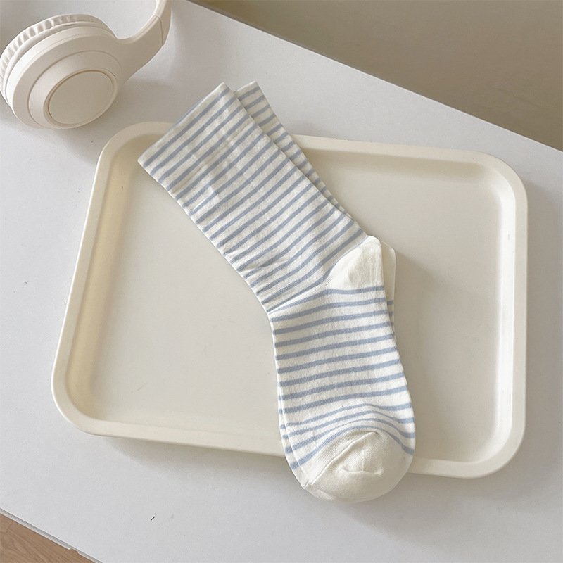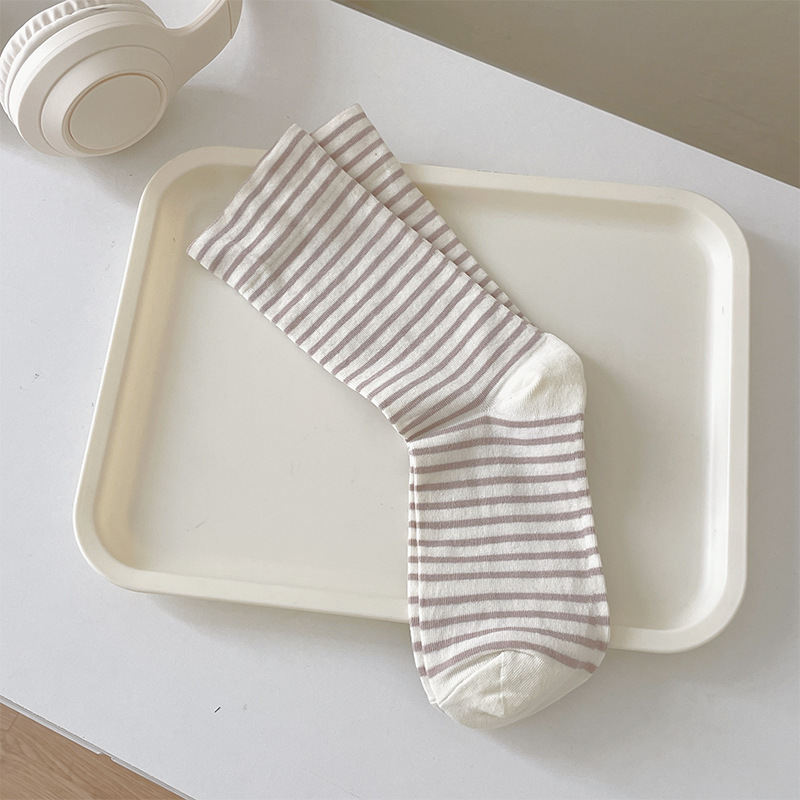 크림 스트라이프 양말 여자 중간 길이 양말 봄과 여름 얇은 코튼 양말 스포츠 인 트렌디 한 한국 스타일 일본식 여름 스타킹