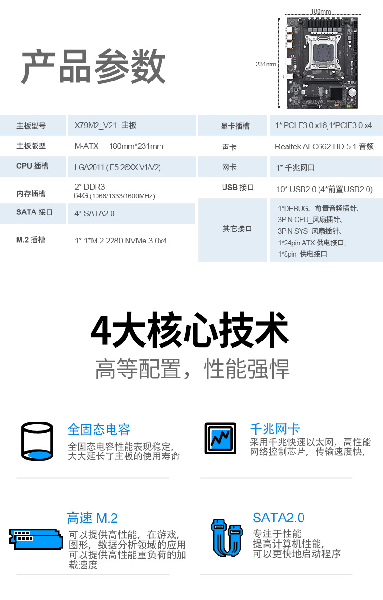 X79M2_V21 컴퓨터 데스크톱 보드 LGA-2011 핀 프로세서 DDR3 메모리 지원 M.2