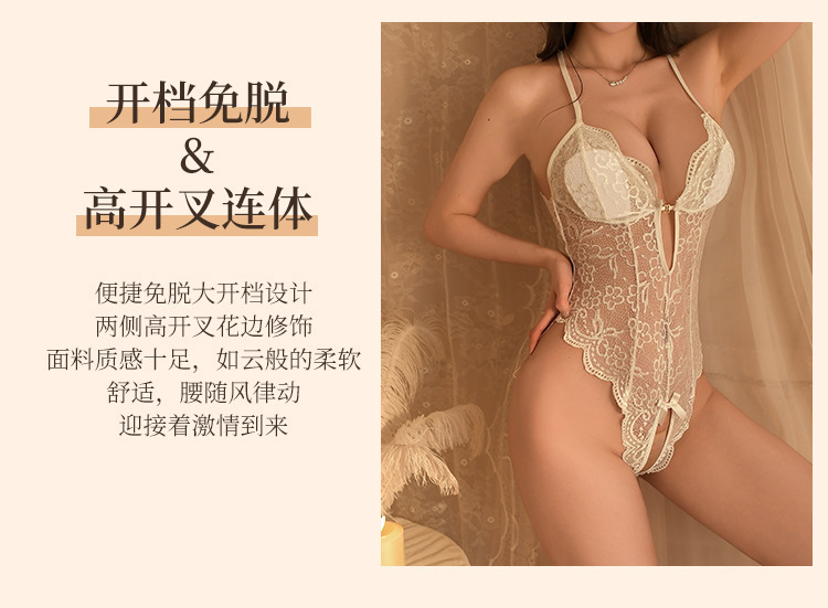 섹시한 속옷 섹시 레이스 할로우 아웃 크로츠프리 제트 수트 관점 유혹 슬링 파자마 8002