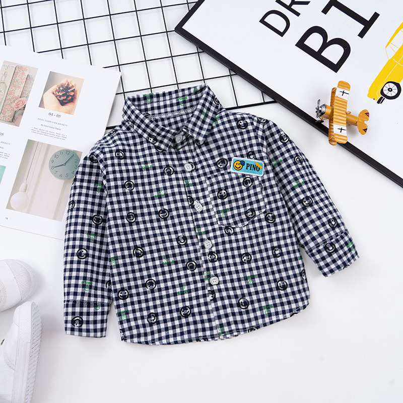 어린이 봄과 가을 옷 2024 새로운 소년 아기 봄 탑 세련된 격자 무늬 스마일리 긴 소매 셔츠