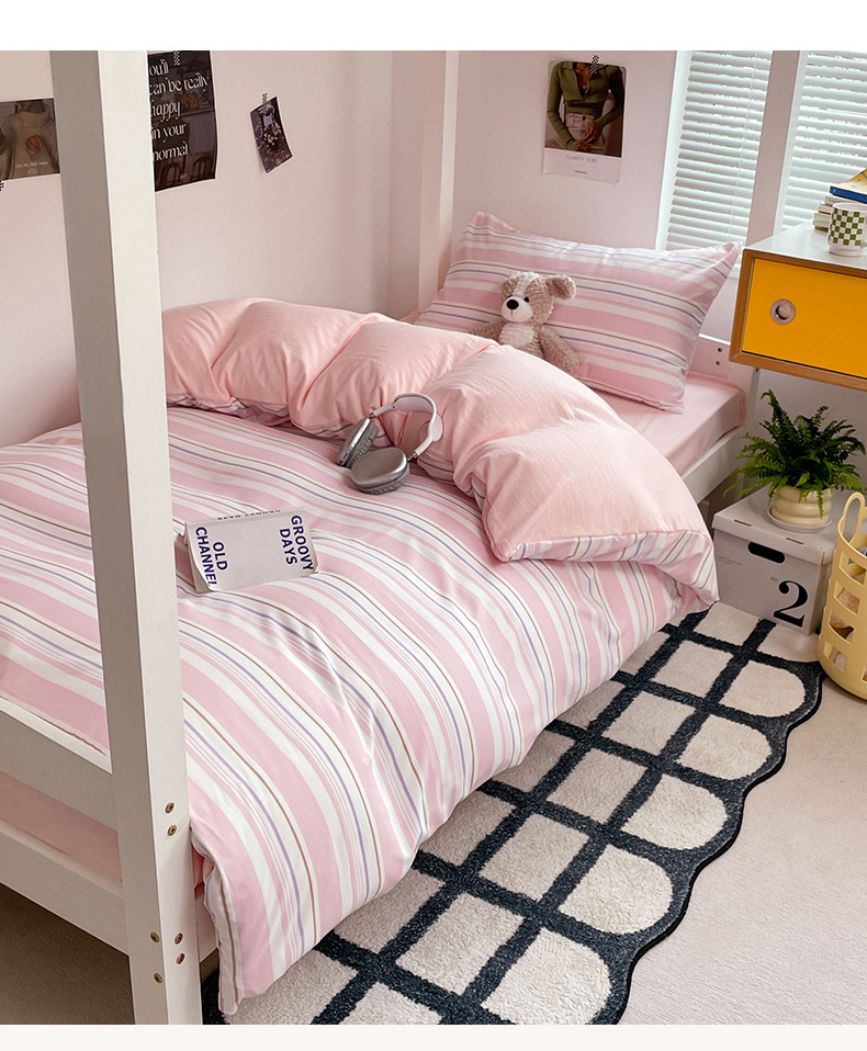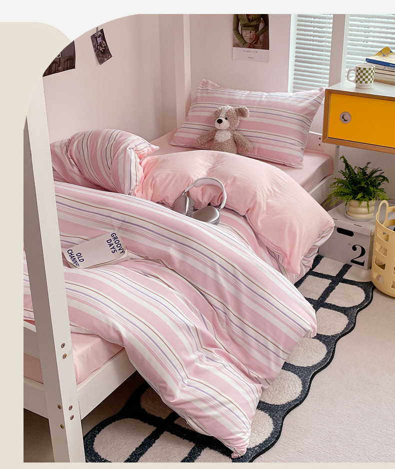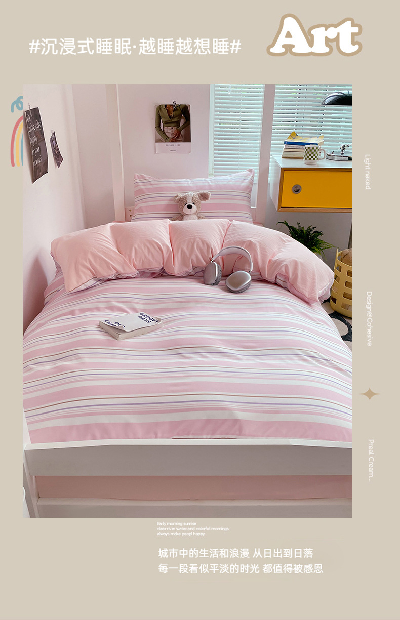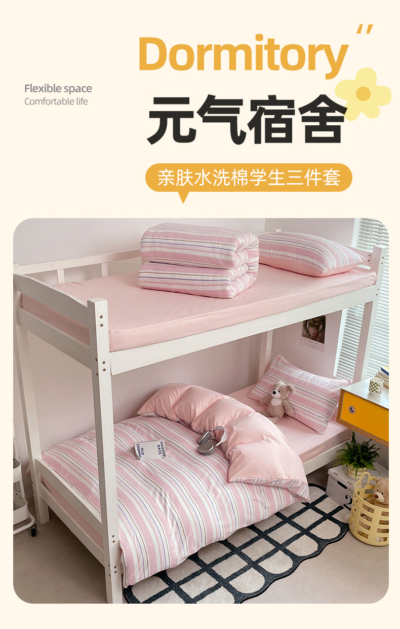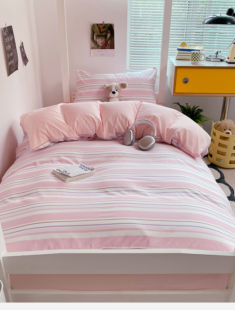 학생 기숙사 3 피스 솔리드 컬러 스트라이프 침대 시트 퀼트 커버 여름 싱글 더블 스킨 친화적 인 4 피스 세트스토어 가기