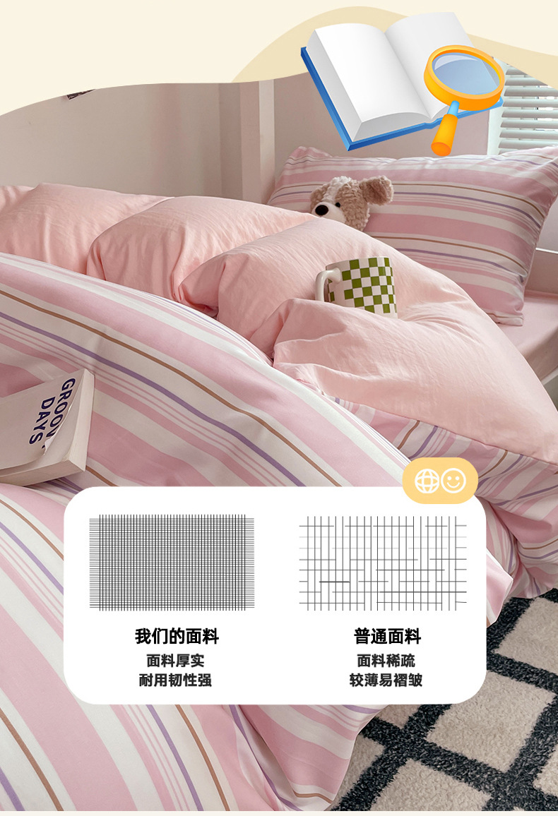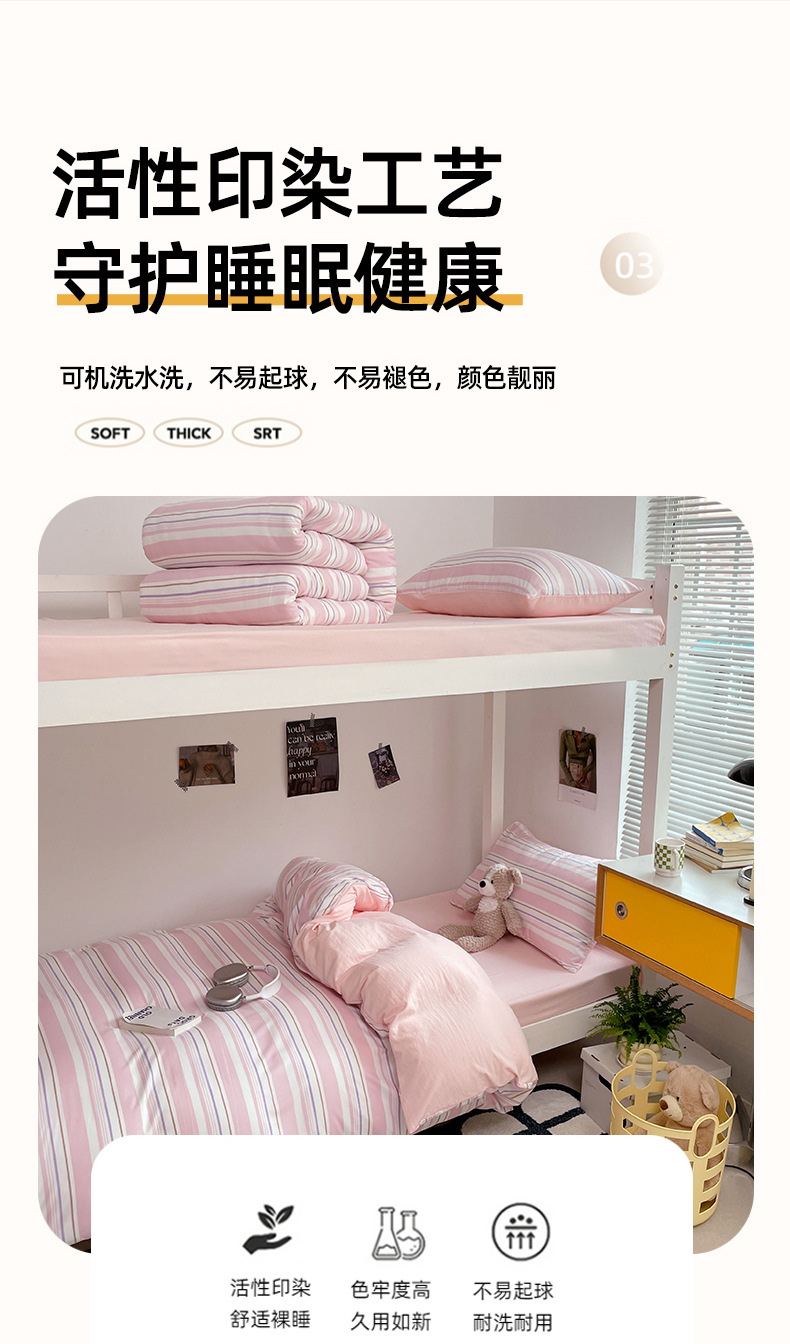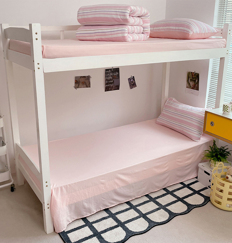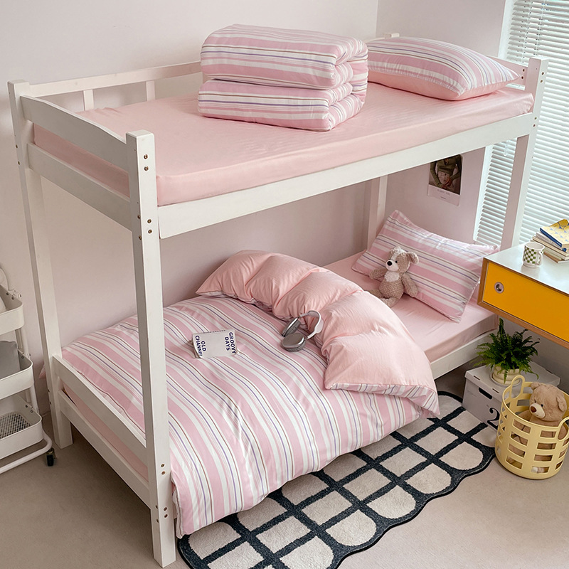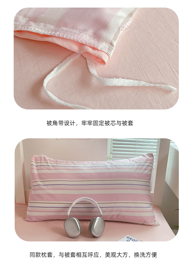 학생 기숙사 3 피스 솔리드 컬러 스트라이프 침대 시트 퀼트 커버 여름 싱글 더블 스킨 친화적 인 4 피스 세트스토어 가기